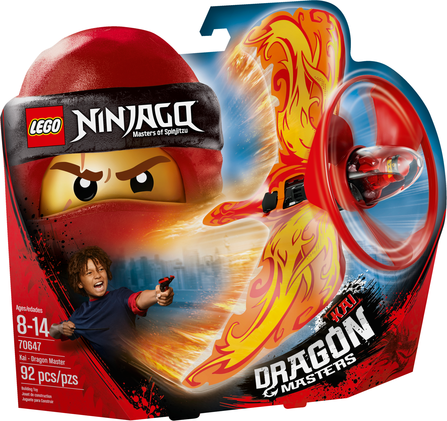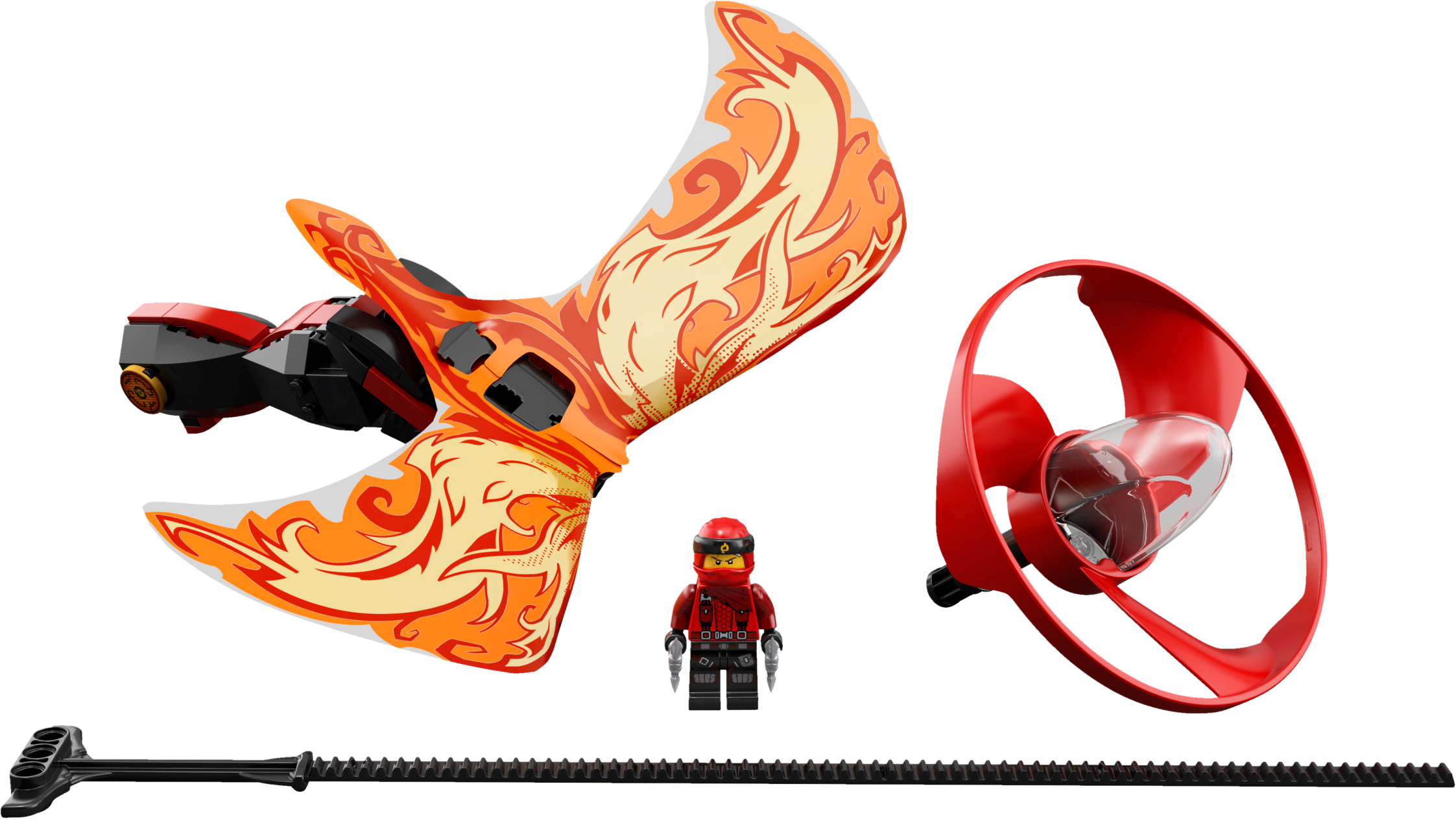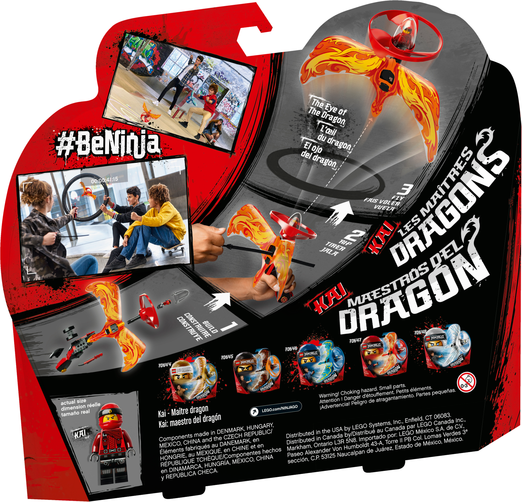 Create magic in midair with the LEGO® NINJAGO® 70647 Kai - Dragon Master flyer, featuring a buildable LEGO brick handle, minifigure capsule, blade element, dragon wings and rip cord. Perform solo tricks, compete against friends, and use your environment to create countless spectacular ninja challenges. This LEGO NINJAGO toy includes a Kai minifigure.