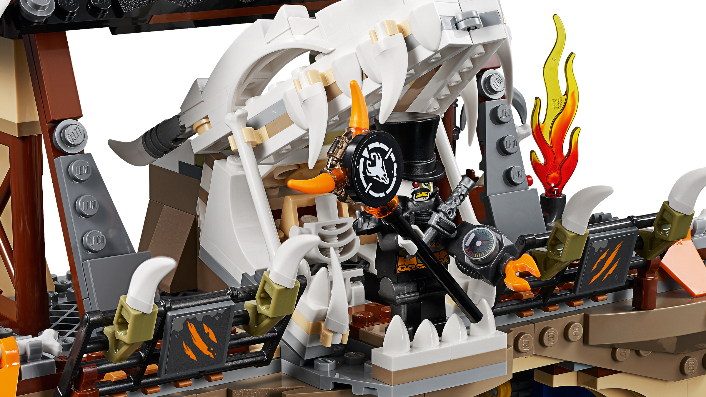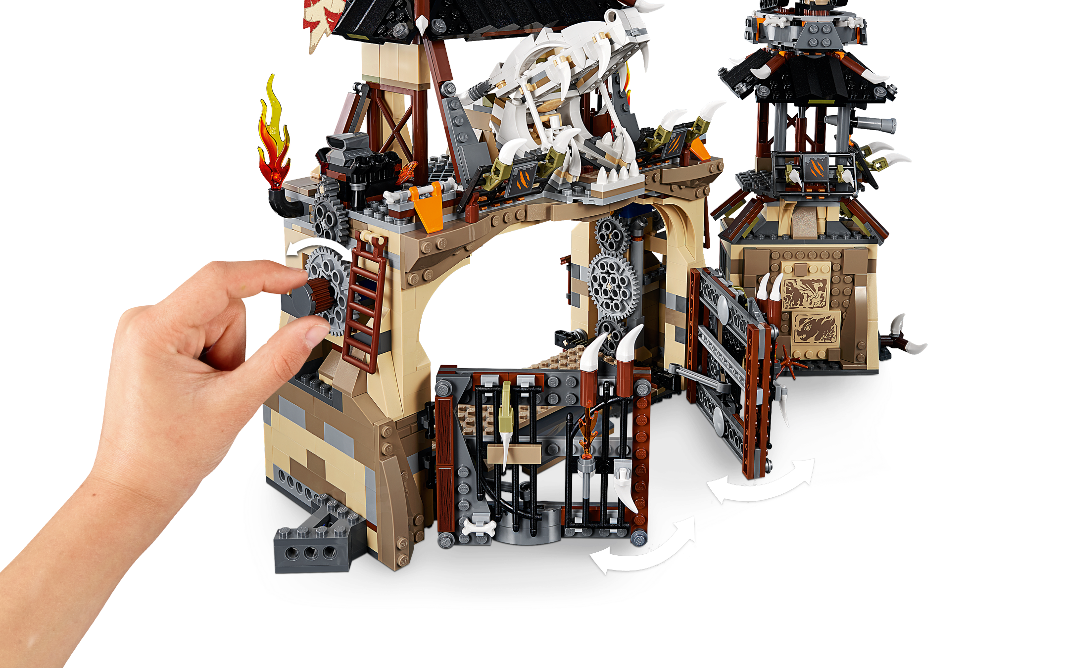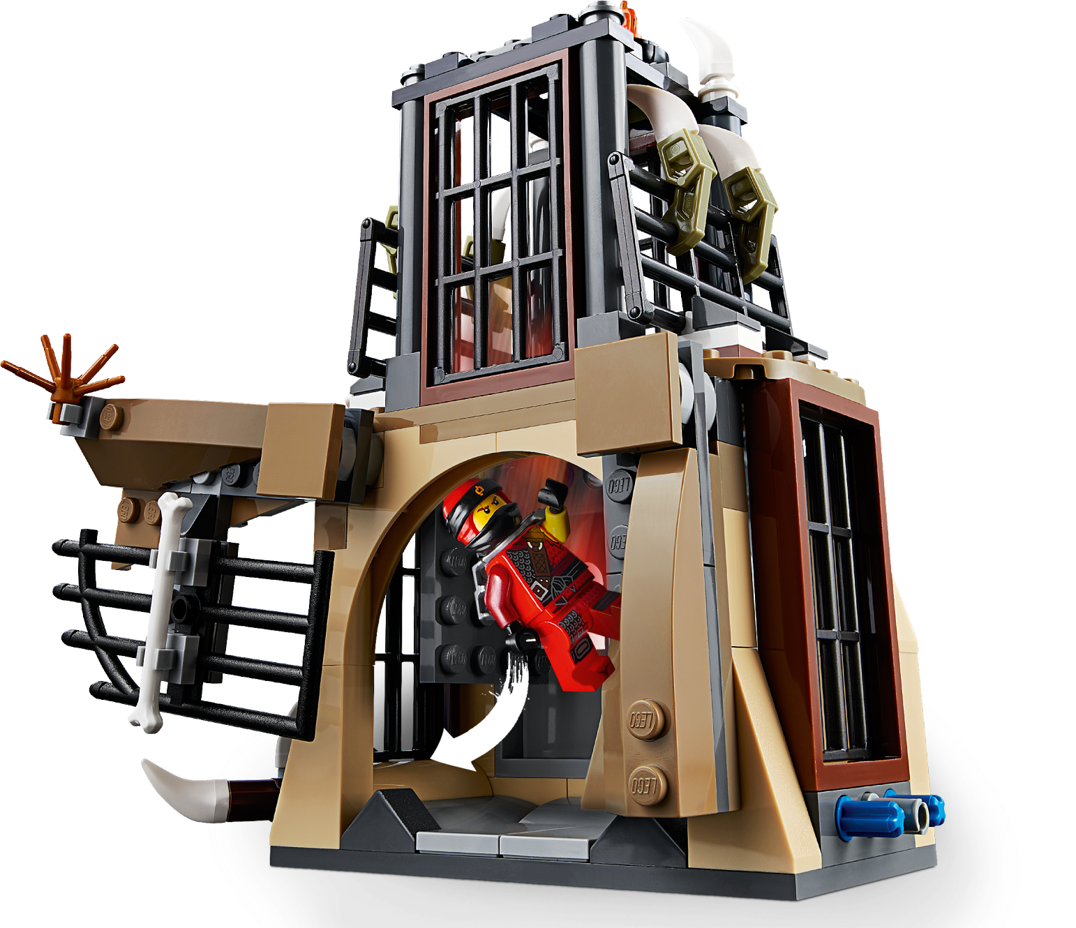 Join the ninja heroes in a battle against Iron Baron and the Dragon Hunters at the LEGO® NINJAGO® 70655 Dragon Pit, with 3 detachable sections for easy play. The viewing gallery features a throne for Iron Baron, weapon rack and a gate-opening function to let the posable Earth Dragon into the pit. There's also a watchtower with rooftop dual missile shooter, buildable telescope and a blacksmith's workshop, plus a jail with a trapdoor function to drop a minifigure into the pit. Fight for all 4 of the collectible Dragon Armor elements (worn in this set by Dragon Master) with 9 minifigures and their assorted weapons. Includes 9 LEGO® NINJAGO® minifigures: Dragon Master, Jay, Zane, Cole, Kai, Iron Baron, Arkade, Heavy Metal and Chew Toy. Dragon Pit features 3 detachable sections: a viewing gallery, watchtower and a jail. Viewing gallery features an arch with wheel-operated opening entrance gate, dragon-head-shaped throne for Iron Baron, weapon rack with a scythe and moon blade, plus decorative dragonbone and translucent flame-style elements. Watchtower has a rooftop dual missile shooter, buildable telescope on the second level, and a blacksmith’s workshop with a hammer and 2 swords. Jail features a cell with an opening dragonbone door and a trapdoor function to drop a minifigure into the dragon pit. Earth Dragon features posable jaws, neck, blade wings, legs, feet and hammer tail. Dragon Master comes with all 4 collectible Dragon Armor elements: the Dragon Helmet, Dragon Chestplate, Dragonbone Blade and Dragon Shield. Weapons include Jay's kusarigama and katana; Zane's bow & arrow; Cole’s hammer; Kai’s katana and buildable katana; Iron Baron’s staff, tanto and cyborg arm; Arkade’s wrench and saw blade; and Heavy Metal’s Vengestone Chain Rifle. Accessory elements include Zane’s quiver and Chew Toy’s shield. Recreate and role-play epic scenes from the NINJAGO® Masters of Spinjitzu TV show. Find more collectible Dragon Armor in 70650 Destiny's Wing, 70652 Stormbringer, 70653 Firstbourne and 70654 Dieselnaut. Dragon Pit measures over 10” (27cm) high, 20” (51cm) wide and 7” (20cm) deep. Dragon measures over 3” (9cm) high, 9” (25cm) long and 11” (28cm) wide.