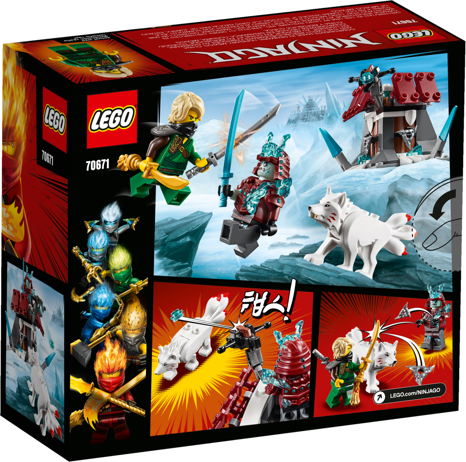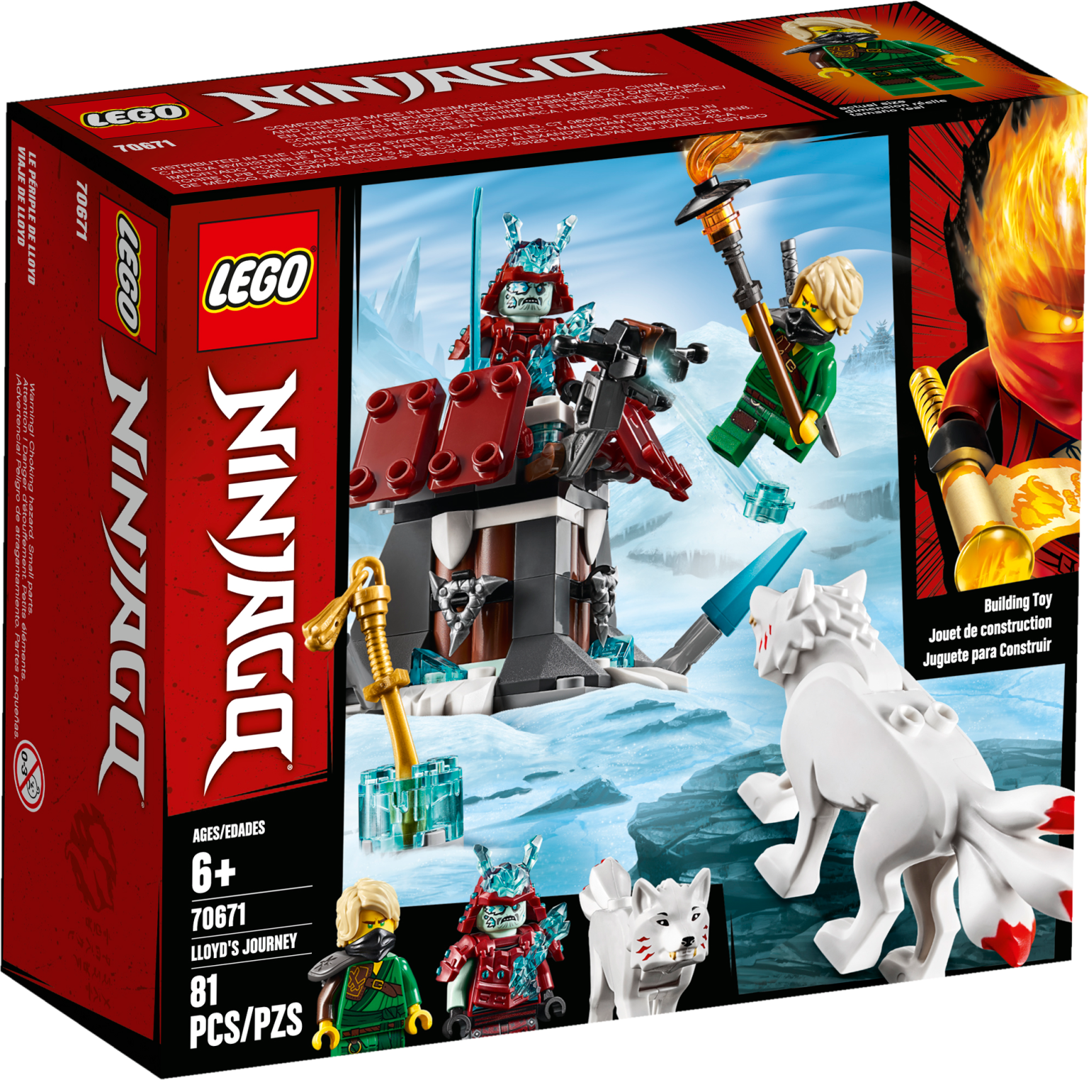 Stage an epic ice battle matching Lloyd and his wolf against Blizzard Warrior with this action-packed ninja toy for boys and girls. This 70671 Lloyd’s Journey LEGO® NINJAGO® set features Blizzard Warrior's fortress with a shooting crossbow and buildable ice holder for Lloyd's golden sword. Fans of the NINJAGO TV show will love role-playing scenes and creating their own adventures with the 2 LEGO NINJAGO minifigures, a wolf figure and cool ninja weapons in this toy building set. This LEGO® NINJAGO® set includes 2 new-for-June-2019 minifigures: Lloyd and Blizzard Warrior, plus a new-for-June-2019 Lloyd’s wolf figure. Cool toy for kids who can create Blizzard Warrior’s fortress with LEGO® building bricks, featuring space for a minifigure, a shooting toy crossbow and ice elements. This battle toy building set also includes a buildable ice holder with Lloyd's golden sword. Weapons include ninja minifigure Lloyd's flaming torch and silver-colored toy katana, and Blizzard Warrior’s ice katana. Playset also includes Lloyd’s katana holder and Blizzard Warrior’s ice armor accessory elements. Cool toy for kids to recreate exciting action from the NINJAGO® TV show. Add 70676 Lloyd’s Titan Mech and 70678 Castle of the Forsaken Emperor LEGO® sets to play out more adventures with Lloyd in the Never-Realm. Fortress measures over 1” (5cm) high, 2” (7cm) wide and 2” (7cm) deep.