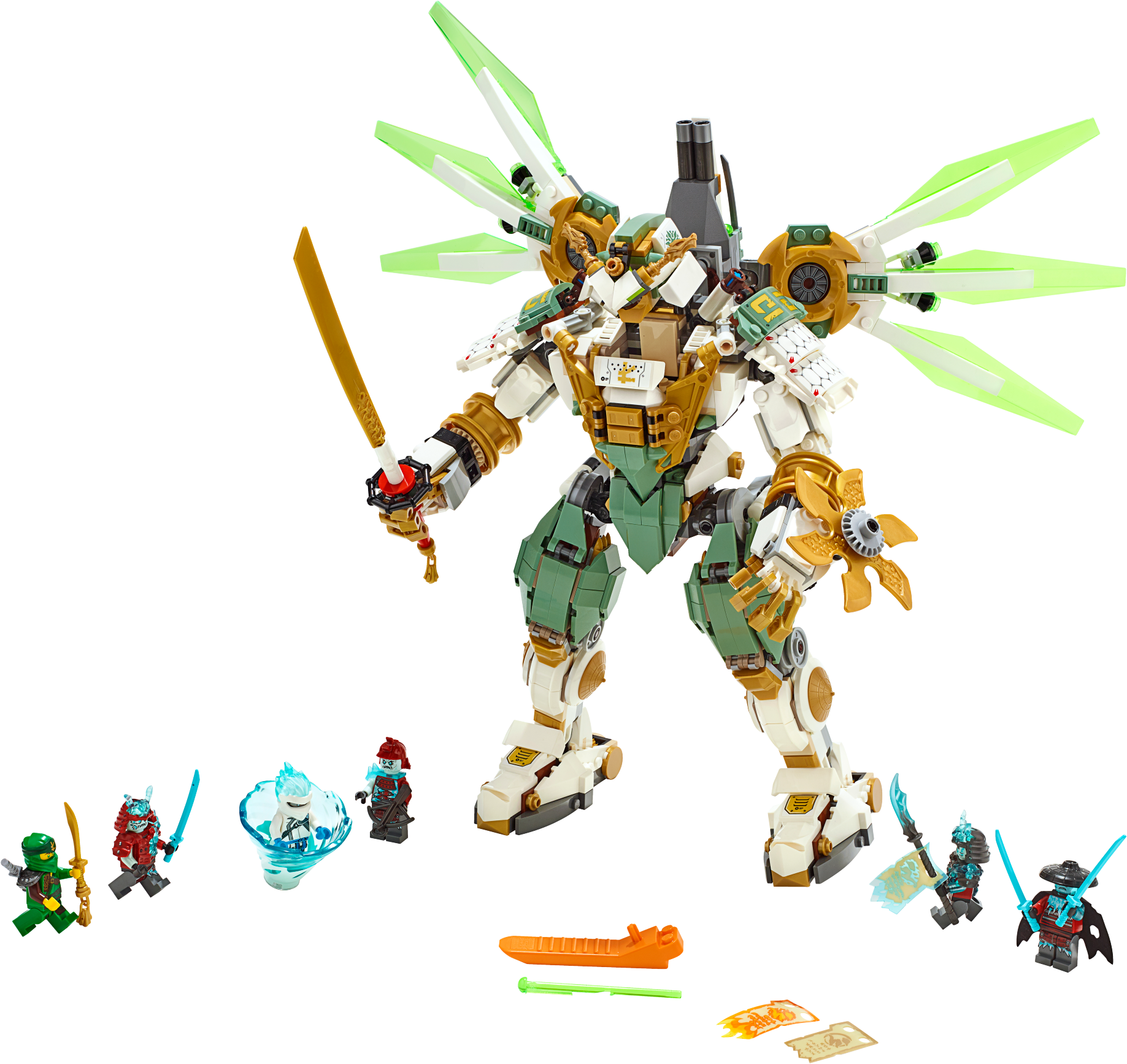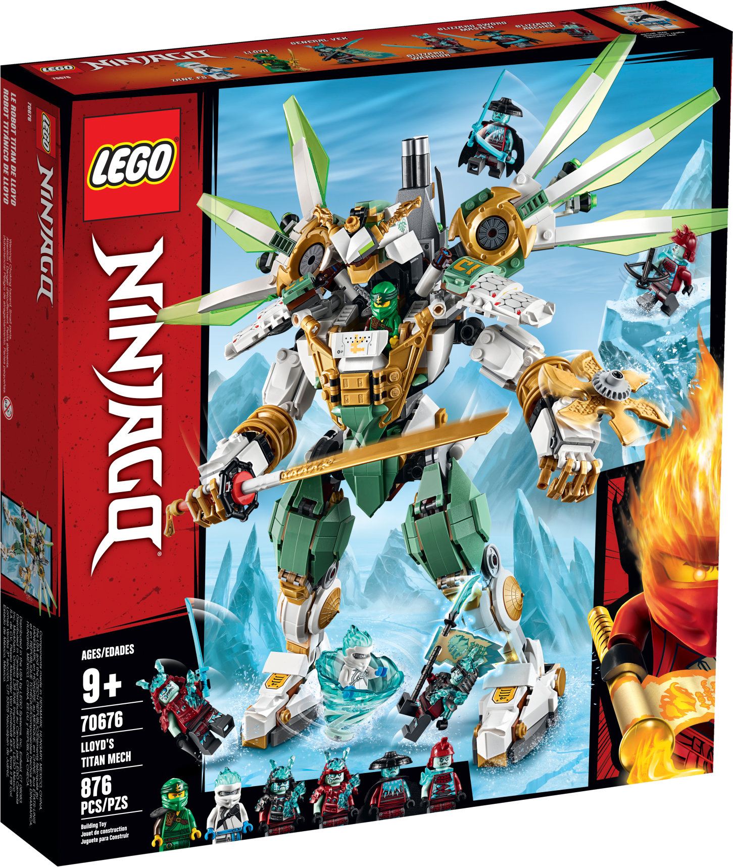 Role-play an epic battle between Blizzard Samurai and ninja action figures with LEGO® NINJAGO® 70676 Lloyd's Titan Mech. This highly posable robot ninja mech toy for kids features a minifigure cockpit, gripping hand to hold a giant katana, spinning shuriken slicer/shield and a detachable flyer with minifigure driver's seat, adjustable wings and 2 spring-loaded shooters. Children will love recreating scenes from the NINJAGO TV show and dreaming up their own ninja fighting games with 6 minifigures and lots of cool weapons and accessory elements, including the Scroll of Forbidden Spinjitzu weapon and the new-for-June-2019 tornado spinner toy of Zane FS. Give any LEGO builder an amazing building experience with Instructions PLUS, available in the LEGO Life app for smartphones and tablets. The easy-to-use, intuitive building instructions let them zoom, rotate and visualize their creation using the special ghost mode as they go. Instructions PLUS is also great for younger builders, guiding them through the building process for a greater sense of independence and achievement. Includes 6 new-for-June-2019 LEGO® NINJAGO® minifigures: Lloyd and Zane FS (Forbidden Spinjitzu) ninja action figures, plus General Vex, Blizzard Sword Master, Blizzard Archer and Blizzard Warrior. Lloyd’s Titan Mech features a minifigure cockpit, posable arms and legs, gripping hands, spinning shuriken slicer/shield, giant katana and a detachable flyer with minifigure driver's seat, adjustable wings and 2 spring-loaded shooters. Weapons include Lloyd's silver- and gold-colored katanas, General Vex’s Scroll of Forbidden Spinjitzu, Blizzard Sword Master’s 2 ice katanas, Blizzard Archer’s crossbow and Blizzard Warrior’s ice katana. Accessory elements include Lloyd’s katana holder, Zane FS’s ‘powered-up’ hood element and new-for-June-2019 tornado spinner, and General Vex and Blizzard Warrior's ice armor. Hot toy building kit for kids to recreate exciting action from the NINJAGO® TV show. Add 70671 Lloyd's Journey and 70678 Castle of the Forsaken Emperor LEGO® toy ninja sets to play out more adventures with Lloyd in the Never-Realm. Use the LEGO® Life app to access intuitive Instructions PLUS building instructions for this LEGO NINJAGO® set. Help even younger builders through the building process, with easy-to-use zoom, rotate and ghost-mode functions to visualize their creations as they go. Titan Mech toy measures over 14” (37cm) high, 5” (15cm) long and 13” (35cm) wide.