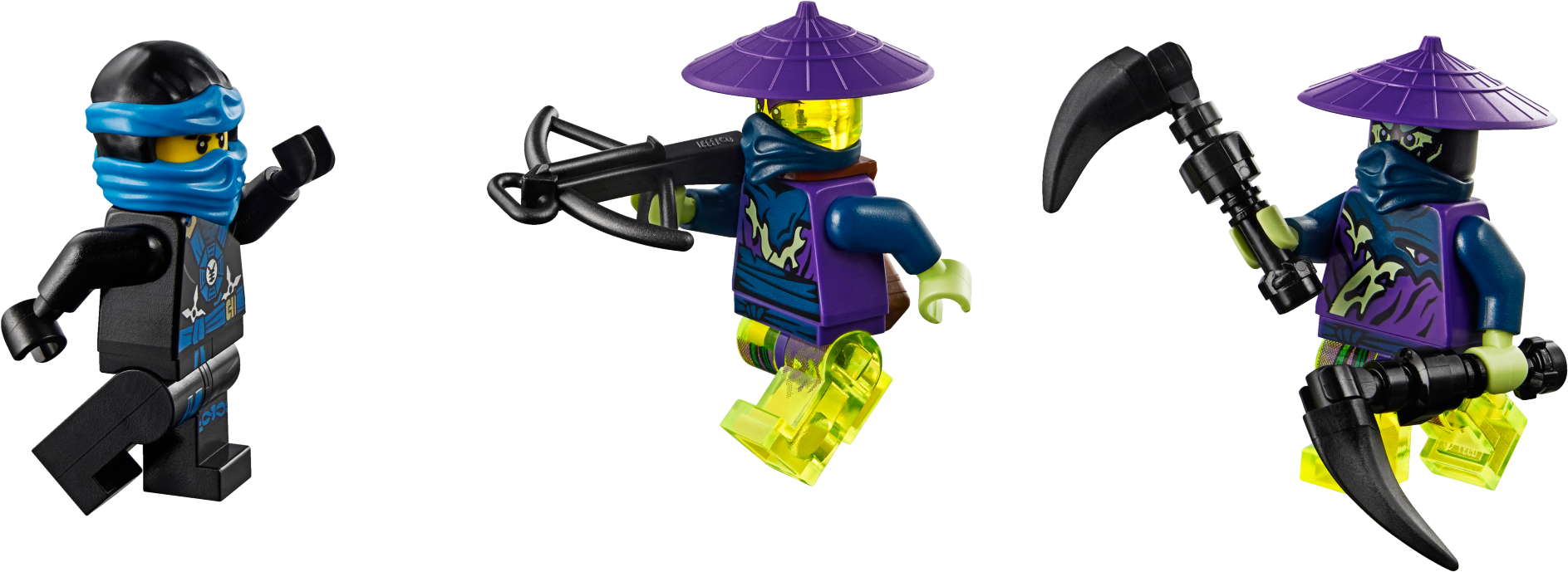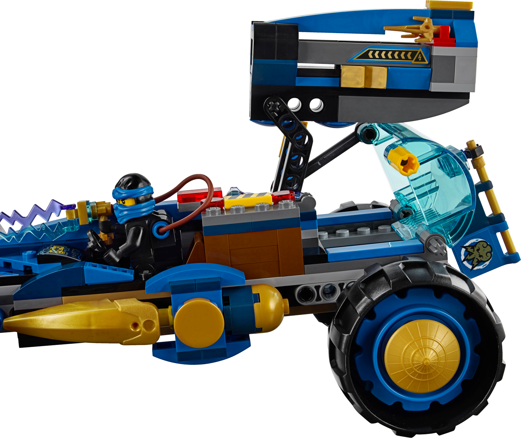 Beat the Ghost Ninja to the Aeroblade in Jay Walker One! Accelerate to the haunted gateway in the Jay Walker One and seize the Aeroblade! Fold out the lightning cannon to open up the ghost prison. Capture ghost discs fired from the haunted gateway and shoot them back at Blade Master Bansha and his Ghost Warriors. Capture the ghosts in the prison and fight off the Skreemer who is trying to turn Jay into a ghost. You must get that Aeroblade and conquer the evil Ghost Ninja! Includes 4 minifigures with assorted weapon elements and an accessory element: Jay, Blade Master Bansha, Ghost Warrior Ghurka and Ghost Warrior Wail. Includes 4 minifigures with assorted weapon elements and an accessory element: Jay, Blade Master Bansha, Ghost Warrior Ghurka and Ghost Warrior Wail Jay Walker One features big wheels, foldout disc-shooting lightning cannon, ghostly green discs, disc storage chest and an opening ghost prison Haunted gateway features a ghost disc shooter, ghost disc storage and the detachable Aeroblade Also includes a Skreemer (attachable to minifigures) Weapon elements include Bansha’s double-endedGhost Master blade, Ghurkha’s crossbow with arrows and Wail’s Ghost Ninja Kamas Includes the Ghurka’s quiver element Ghurka and Wail minifigures feature transparent ghost legs and ghost armor Blade Master minifigure features a ghost tail (new for fall 2015) Fold out the Jay Walker One’s hidden lightning cannon to open the ghost prison Fire discs at Bansha and the Ghost Warriors Dodge ghost discs fired from the haunted gateway Grab the Aeroblade and defeat the Ghost NinjaRecreate your favorite scenes from the NINJAGO™: Masters of Spinjitzu TV show Jay Walker One measures over 5” (13cm) high, 9” (25cm) long and 5” (13cm) wide Haunted gateway measures over 3” (10cm) high, 5” (13cm) wide and 1” (3cm) deep
