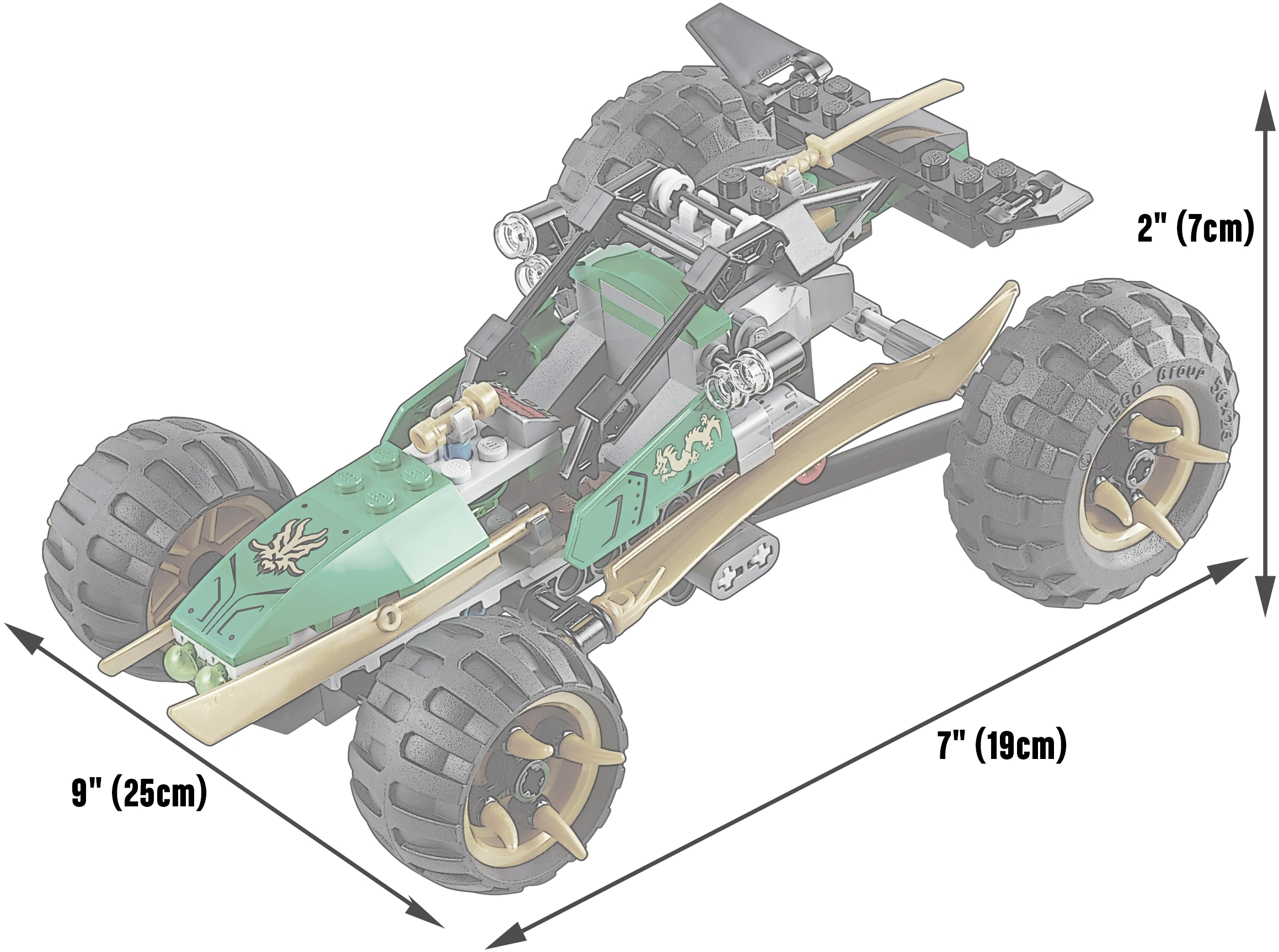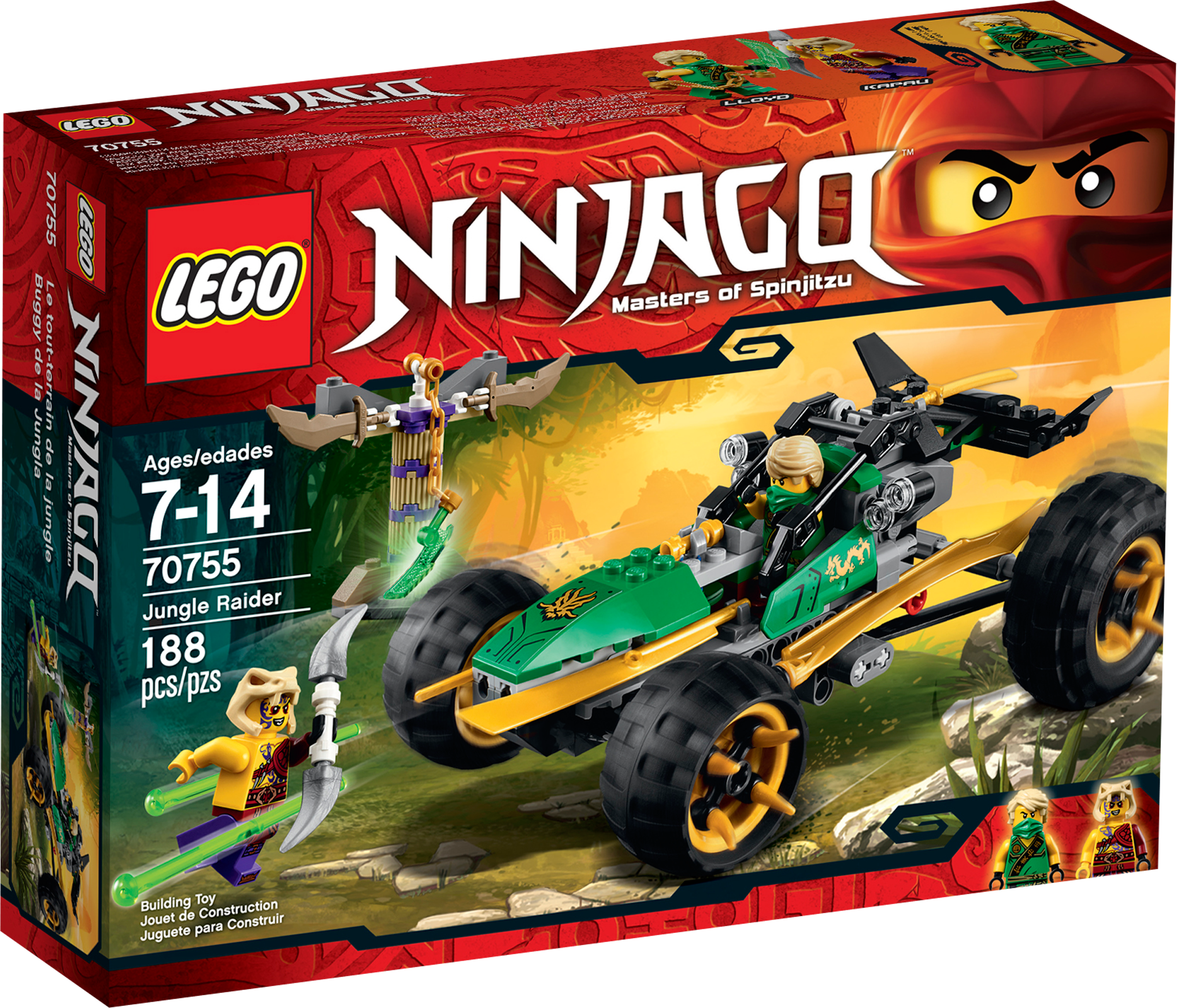 Overpower the Anacondrai with the awesome Jungle Raider! Kapau has chained the Jade Blade to a stone pillar deep in the jungle and is standing guard with his double-bladed dagger. Place Lloyd in the cockpit of the Jungle Raider and begin a mission to claim the precious blade. The built-in suspension and big rubber tires makes driving over rough jungle terrain a breeze. Aim the powerful spring-loaded dual shooter at Kapau and the stone pillar. Overcome the Ancondrai warrior and unchain the Jade Blade! Includes 2 minifigures with assorted weapons: Lloydand Kapau. Includes 2 minifigures with assorted weapons: Lloyd and Kapau Jungle Raider features an opening cockpit with roll bar, big wheels with rubber tires and gold spikes, built-in suspension, spring-loaded dual shooter, Ninja details and huge gold blade details Also includes Anacondrai stone pillar with 2 Anacondrai swords, gold chain and the Jade Blade Weapons include Lloyd’s sword and Kapau’s double-bladed dagger Lloyd is wearing his unique tournament outfit Secure Lloyd in the cockpit with the roll bar Power over rough jungle terrain with the big rubber tires and built-in suspension Target Kapau with the dual shooter Unchain the Jade Blade from the stone pillar Recreate your favorite scenes from the NINJAGO Masters of Spinjitzu™ TV show Jungle Raider measures over 2” (7cm) high, 7” (19cm) long and 5” (14cm) wide Anacondrai stone pillar measures 2” (6cm) high, 3” (10cm) wide and under 1” (2cm) deep