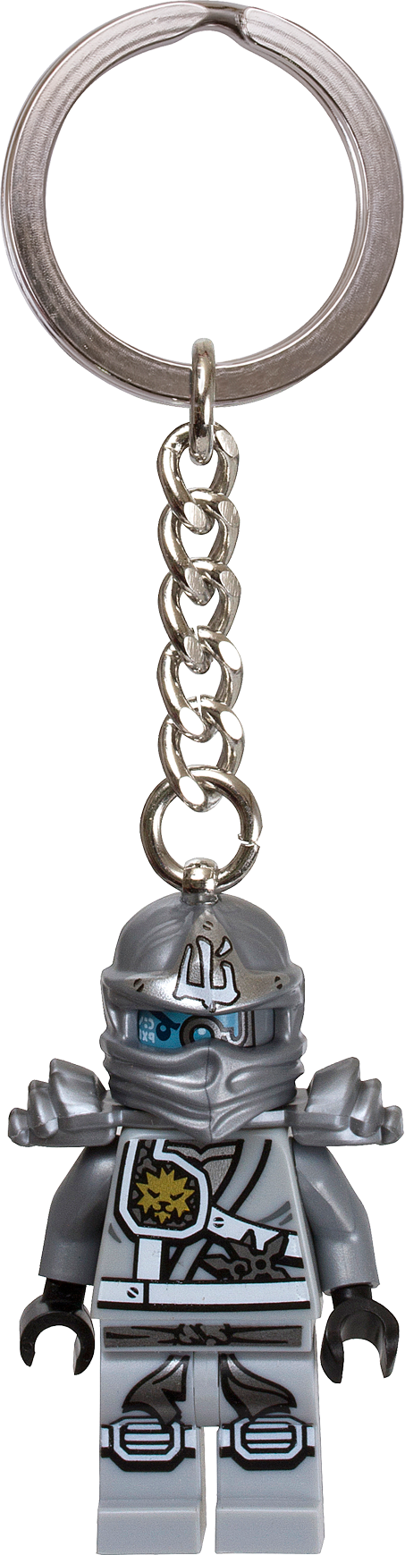 Keep your very own Ninja warrior by your side! Let Ninja hero Zane keep watch over you wherever you go! Featuring an authentic Titanium Ninja Zane minifigure, this handy key chain attaches easily to your keys or backpack. Features an authentic Titanium Ninja Zane minifigure attached to a durable metal ring and chain Use as a keychain or backpack charm Minifigure is not detachable from metal chain Makes a great gift for fans of LEGO® NINJAGO™ play sets