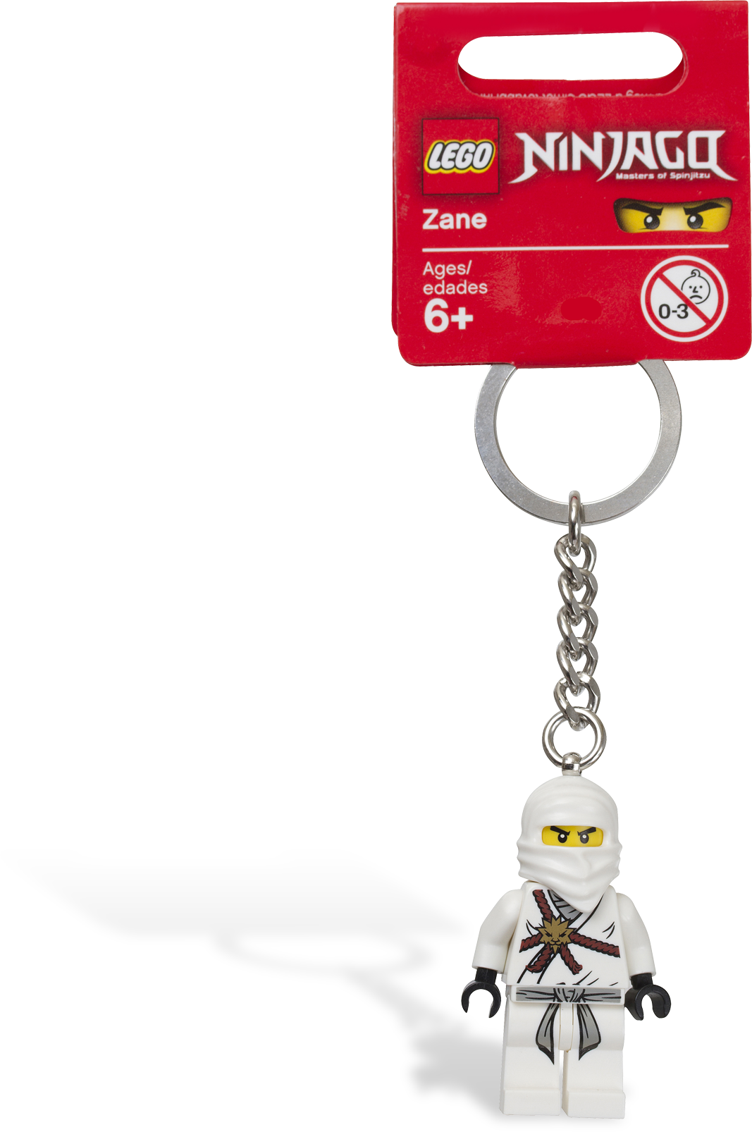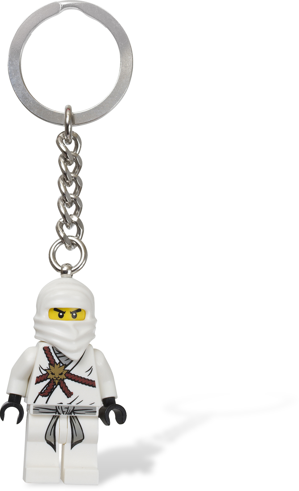 Ninja Zane guards your keys with the power of ice! Guard your keys with the stealth of a spinjitzu master! Zane is on guard with his stealthy sixth sense and the power of the ice element. Protect your keys or backpack with the force of this fierce ninja! Sturdy metal key chain includes authentic LEGO® Ninjago minifigure and plenty of fun! Use as a backpack charm! Makes a great gift!