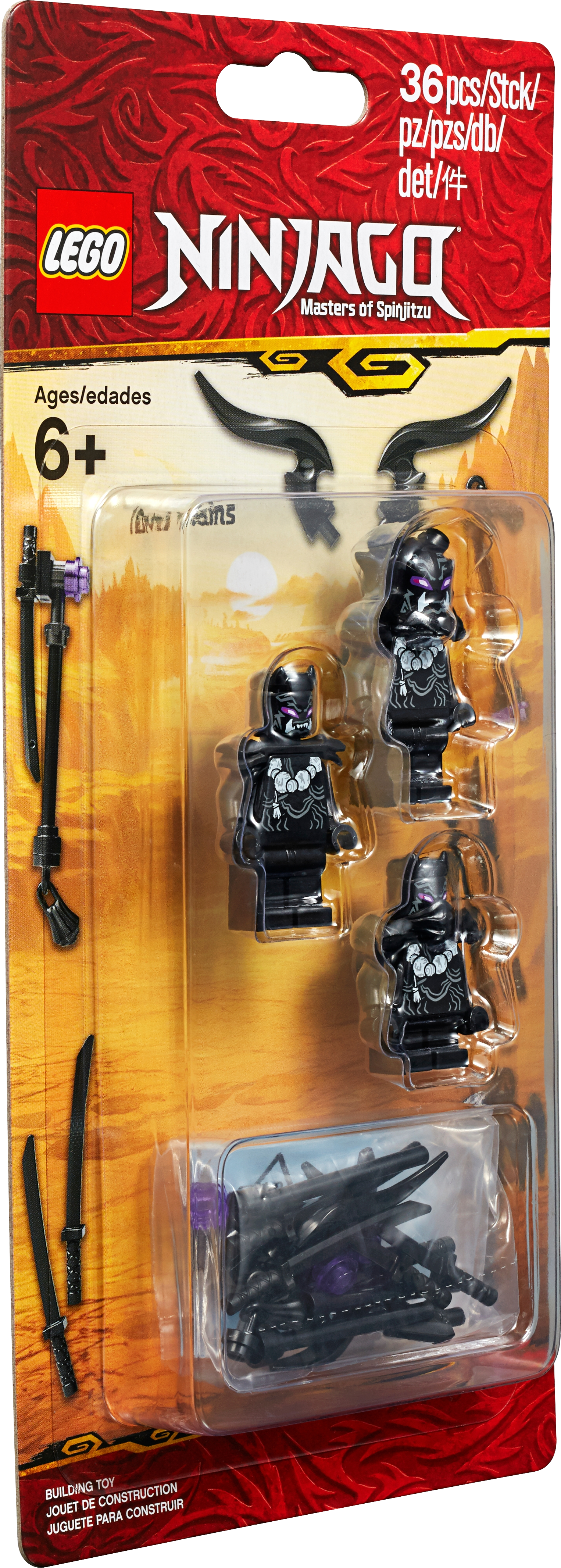 Gear up for battle with the LEGO® NINJAGO® 853866 Accessory Set 2019, featuring the Oni villains from Series 10 of the NINJAGO Masters of Spinjitzu TV series. This action-packed little set has 3 new-for-January-2019 Oni minifigures, including one with iconic horn elements, and assorted weapons. Features 3 Oni demon minifigures—one with horn elements—with 4 swords and other assorted weapons.