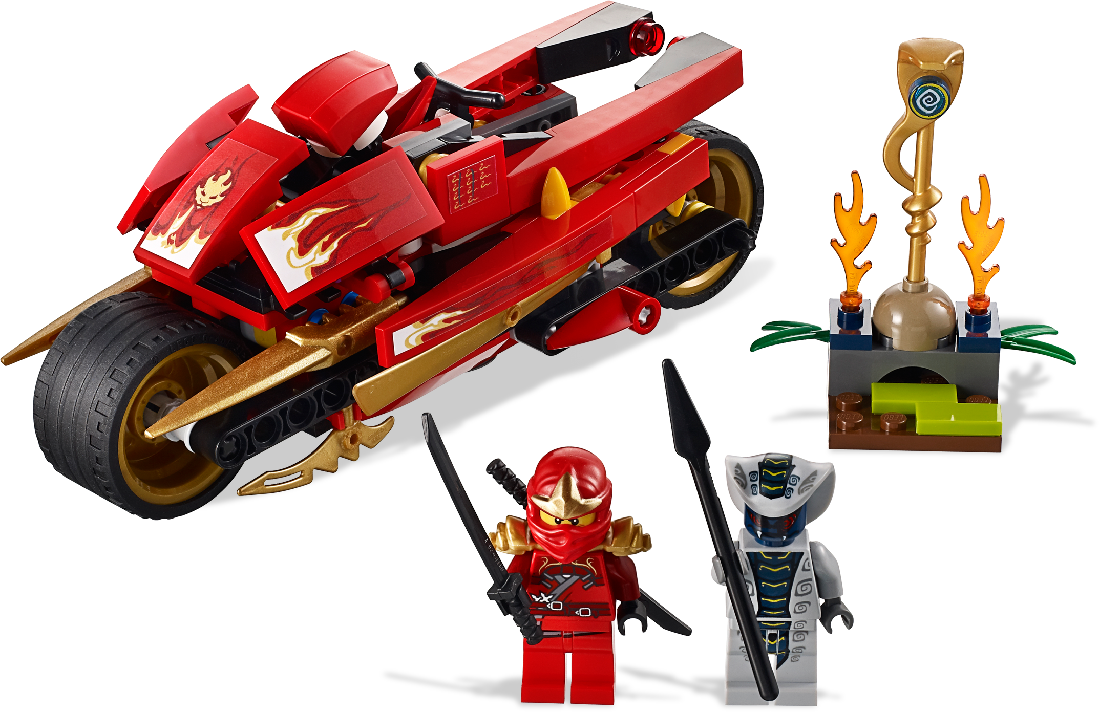 Battle for the golden Hypnobrai staff with Kai’s Blade Cycle! Race after Rattla on Kai’s Blade Cycle! Don’t let him get away with the golden Hypnobrai staff and the anti-venom hidden inside! Can Kai defeat his mind-controlling menace with the Blade Cycle’s big blade attack? You decide! Watch out for Rattla’s hypnotic stare and tail as you battle for the prize! Includes Kai ZX and Rattla minifigures, golden Hyponobrai staff and 2 ninja swords.Includes 2 minifigures: Kai ZX and RattlaFeatures golden Hypnobrai staff and 2 ninja swordsKai’s Blade Cycle features big blade attack functionRace after Rattla to seize the staff and the anti-venom inside!Launch the big blade attack function to stop Rattla in his tracks!Kai’s Blade Cycle measures over 5” (15cm) long