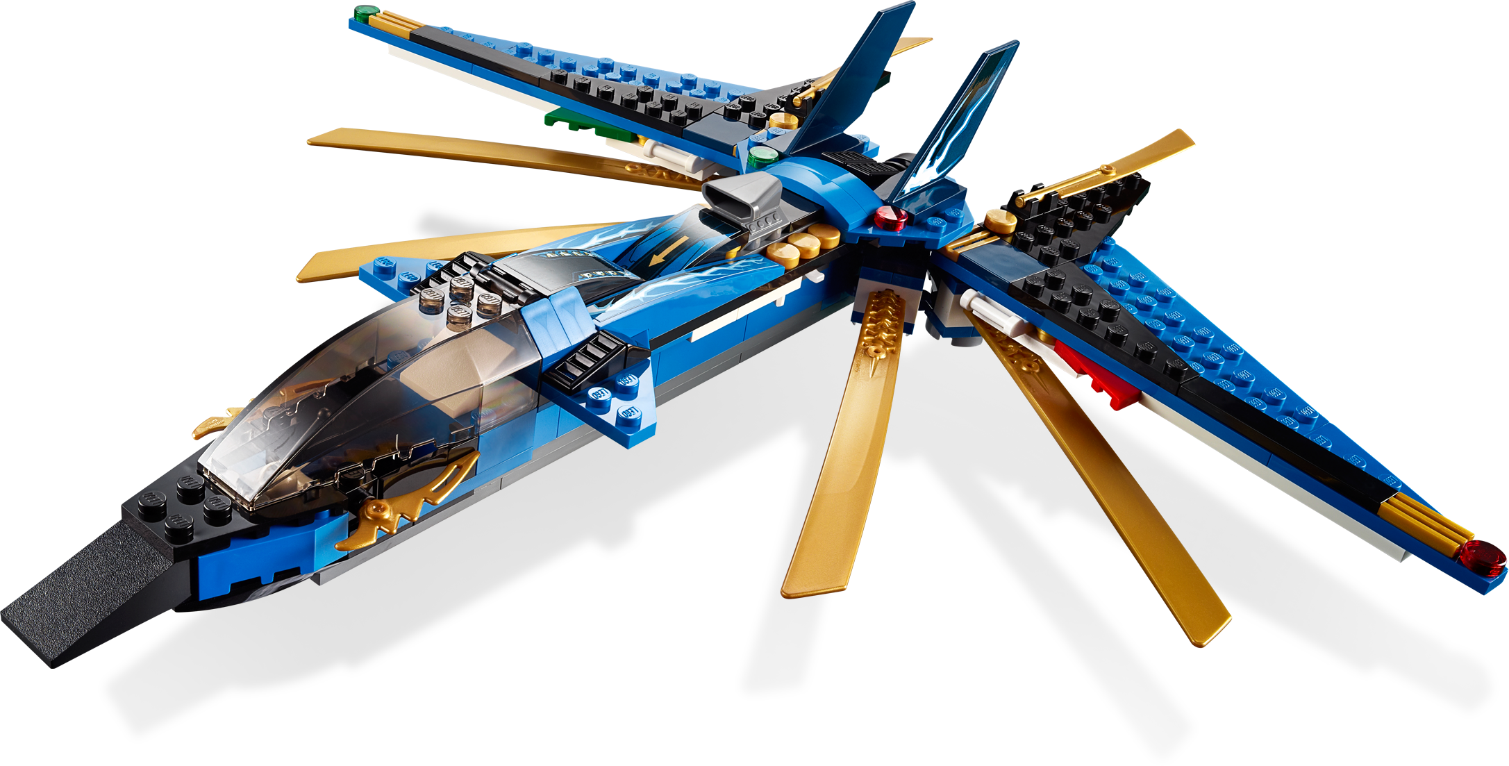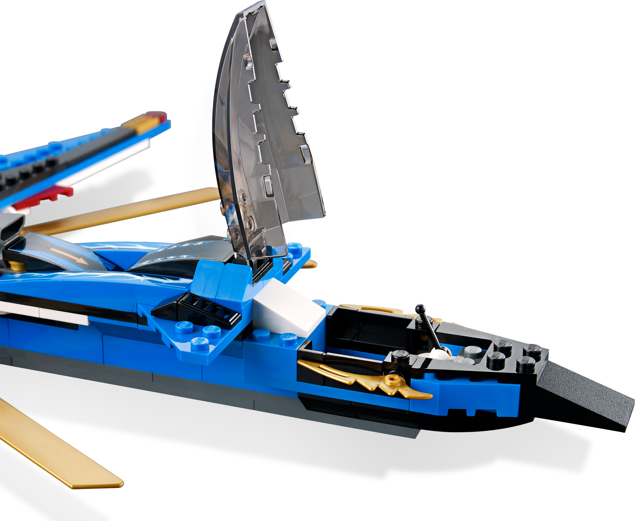 Unleash a ninja assault in the sky with Jay’s Storm Fighter! Jay streaks through the sky in his super-speed storm fighter on a mission to recover the golden Fangpyre staff and its powerful anti-venom. As he nears the cliff-top shrine, Fangpyre scout Snappa is already waiting for him. Deploy the Storm Fighter’s awesome wing attack! Set includes Jay ZX and Snappa minifigures, snake staff shrine, golden Fangpyre staff, 3 weapons and 2 torches.Includes 2 minifigures: Jay ZX and SnappaFeatures wing attack function, opening cockpit, snake staff shrine, golden Fangpyre staffWeapons include 2 golden ninja serrated blades, snake sword and 2 torchesLaunch the wing attack function to blast and battle through the skies!Battle for the prize and defeat Fangpyre scout Snappa!Jay’s Storm Fighter measures over 12” (31cm) long and 13” (34cm) wide