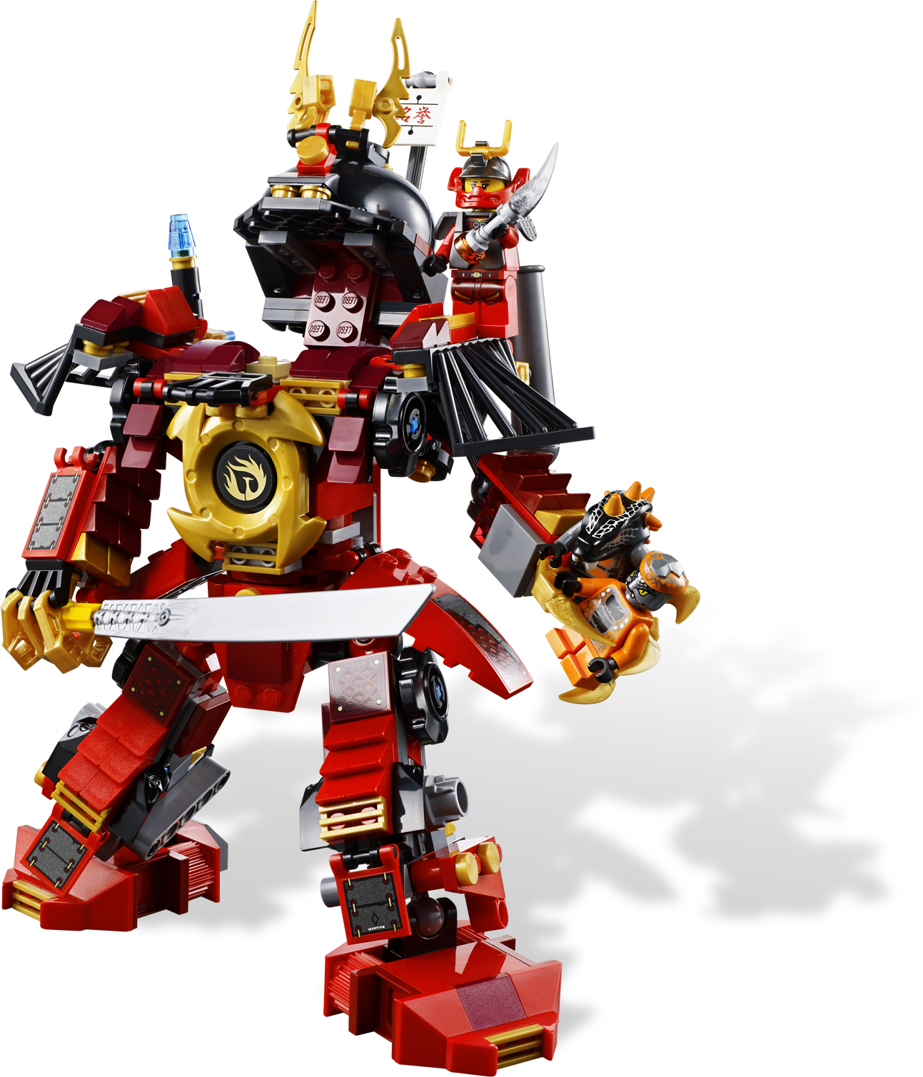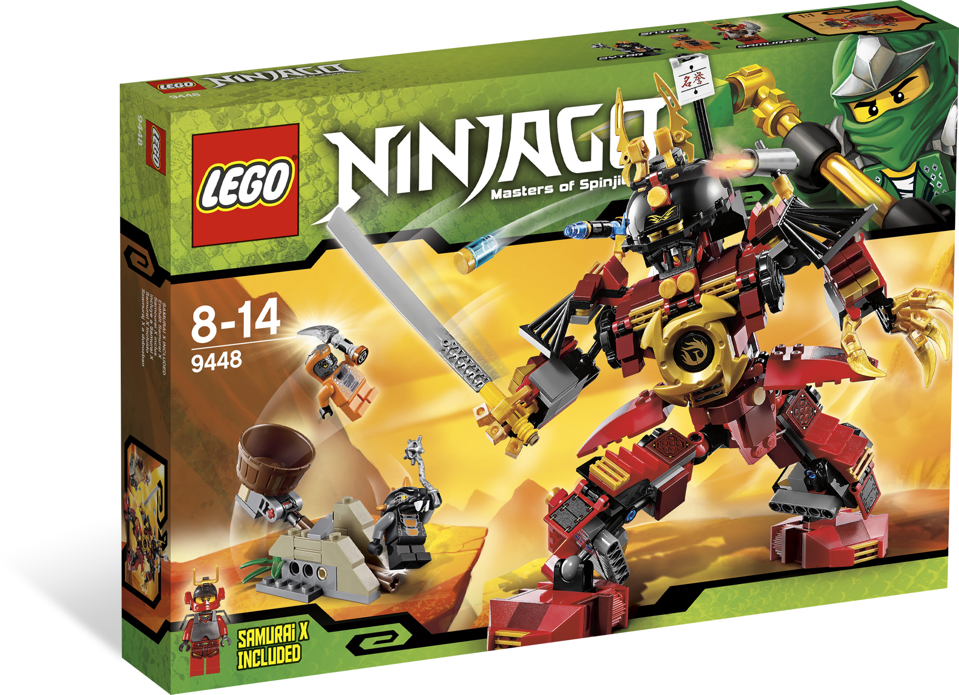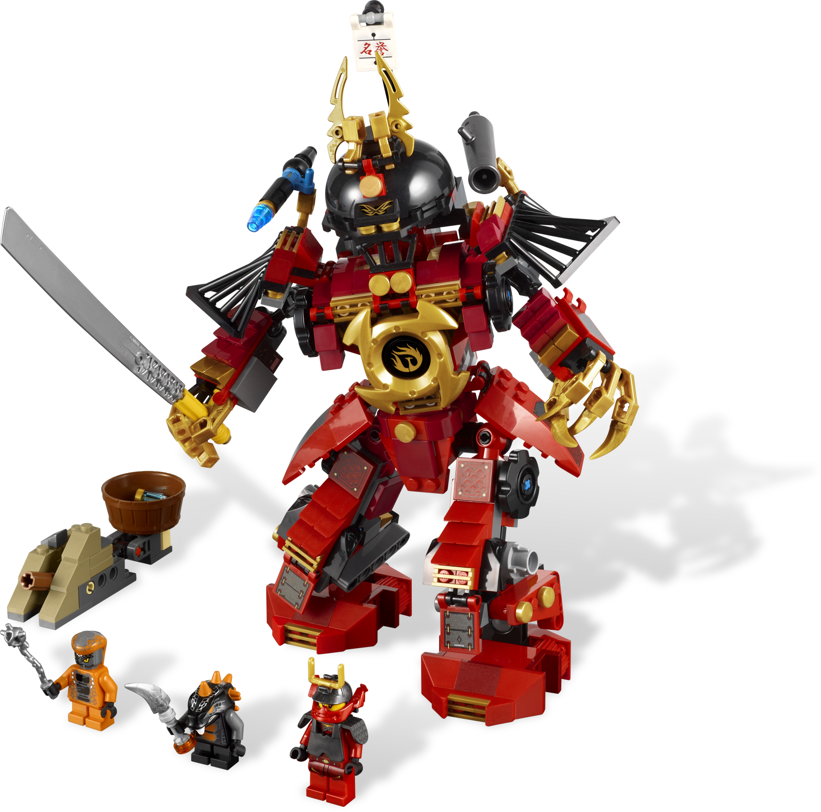 Send the Constrictai snakes flying with the awesome Samurai Mech! Samurai X is on board the mighty Samurai Mech when she locates the Constrictai fang blade and closes in to claim it! Can scout Snike and warrior Bytar stop it with a catapult ambush? Or will the Samurai Mech's massive blade, shoulder cannon shooter and bladed grabbers overcome the Constrictai snakes? Includes 3 minifigures: Samurai X, Snike and Bytar, Samurai Mech, catapult, Constrictai fang blade with orange anti-venom capsule and weapon.• Includes 3 minifigures: Samurai X, Snike and Bytar• Features massive blade, shoulder cannon shooter, bladed grabbers, opening cockpit, poseable joints and golden spinner crown mounted on chest• Also includes working snake catapult• Weapons include fang blade with orange anti-venom capsule and weapon• Fire the shoulder cannon!• Launch the catapult!• Pose the Samurai Mech with poseable joints!• Measures over 9" (24cm) tall• Catapult measures over 3" (9cm) long and 1" (3cm) tall