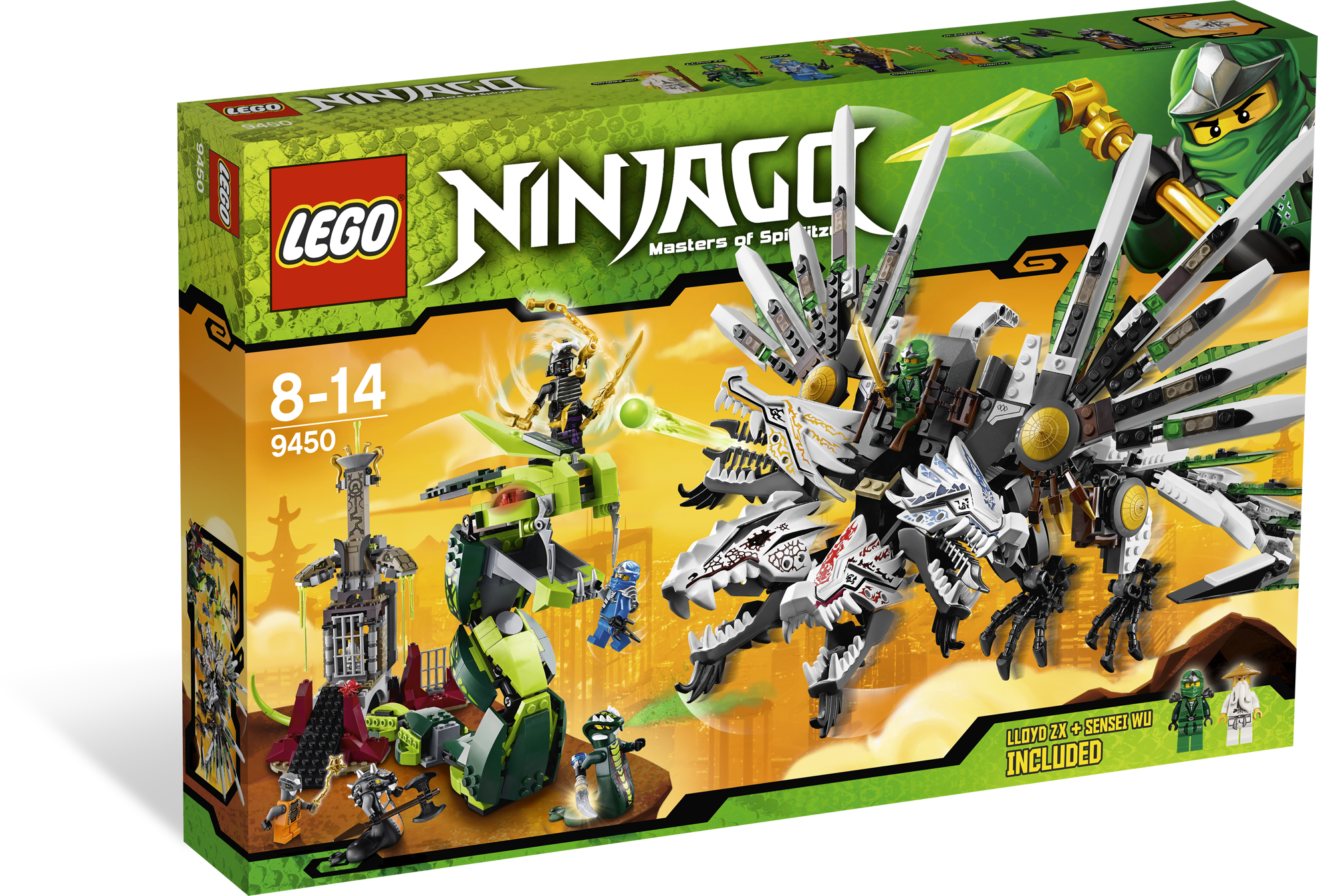 Defeat the Great Devourer in the epic battle between good versus evil! The epic battle of good versus evil has begun! The Great Devourer has been awakened and threatens to devour the world of Ninjago. Can the legendary green ninja, riding the awesome 4-headed Ultra Dragon, overpower this evil adversary? Can Lord Garmadon harness the power of the 4 golden weapons of Spinjitzu to destroy the mighty snake and what about Sensei Wu? Can Jay defeat the evil snake Generals Acidicus, Skalidor and snake soldier Chokun to release his master from the impenetrable snake prison? Only you can decide the outcome of the final battle between good and evil! Includes 7 minifigures: Lloyd ZX, Jay ZX, Sensei Wu, Lord Garmadon, Acidicus, Skalidor and Chokun. Set features 4-headed Ultra Dragon, The Great Devourer, snake prison, Hypnobrai fang blade with blue anti-venom capsule, 4 golden weapons and 7 regular weapons.• Includes 7 minifigures: Lloyd ZX, Jay ZX, Sensei Wu, Lord Garmadon, Acidicus, Skalidor and Chokun• Features 4-headed Ultra Dragon with extendable wings, flame sphere shooter, flexible body and tail• Also includes The Great Devourer and snake prison• Weapons include Hypnobrai fang blade with blue anti-venom capsule, all 4 golden Spinjitzu weapons and 7 regular weapons• The Great Devourer features flexible body and opening mouth with space for minifigure• Snake prison features opening gate and space for minifigure with snake venom trap!• Shoot the fire sphere!• Easy-to-carry handle!• Release Sensei Wu from the prison!• Ultra Dragon measures over 20" (50cm) long, 14" (35cm) wide and 9" (22cm) tall• The Great Devourer measures over 13" (34cm) long• Snake prison measures 10" (25cm) tall and 8" (20cm) wide