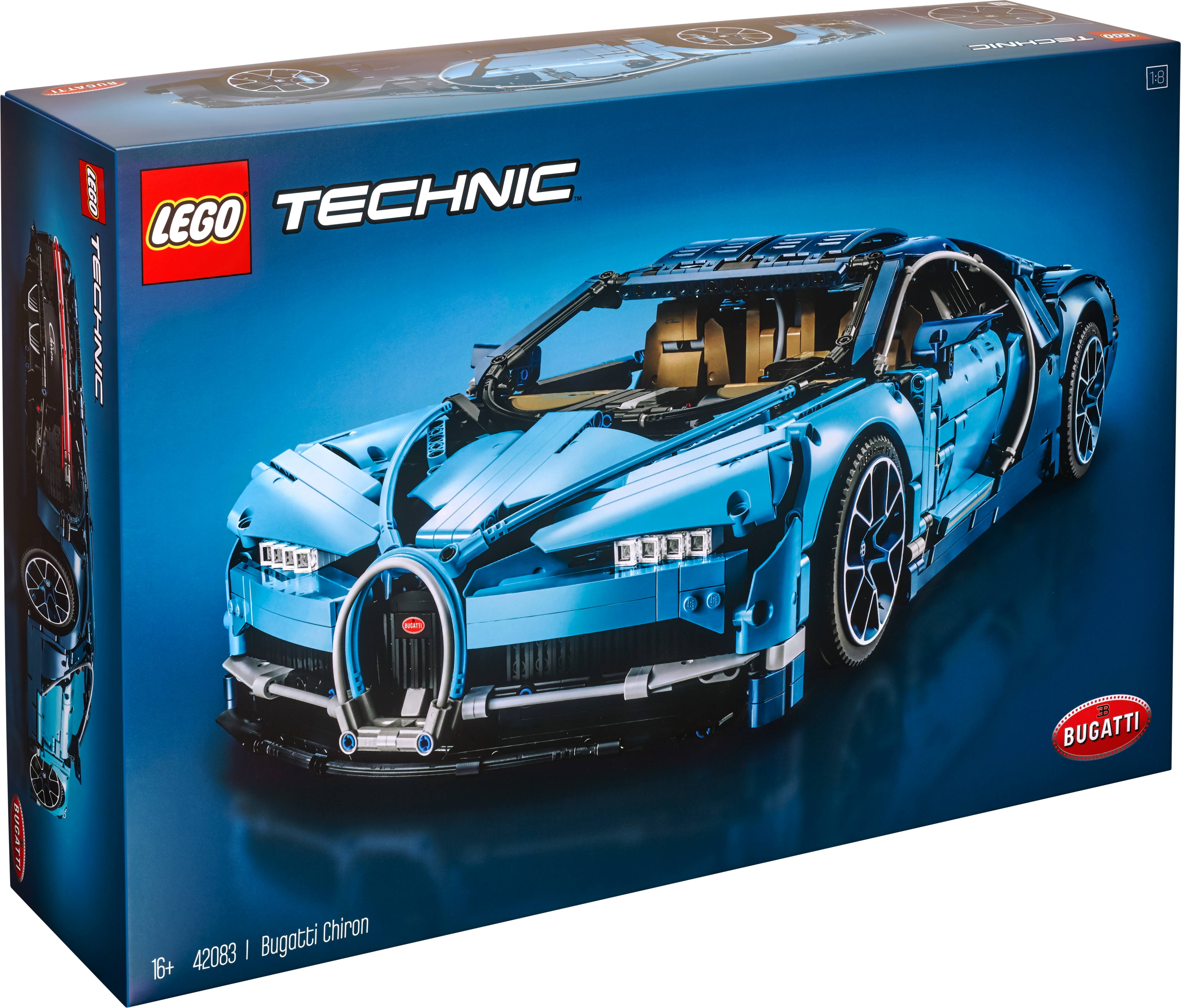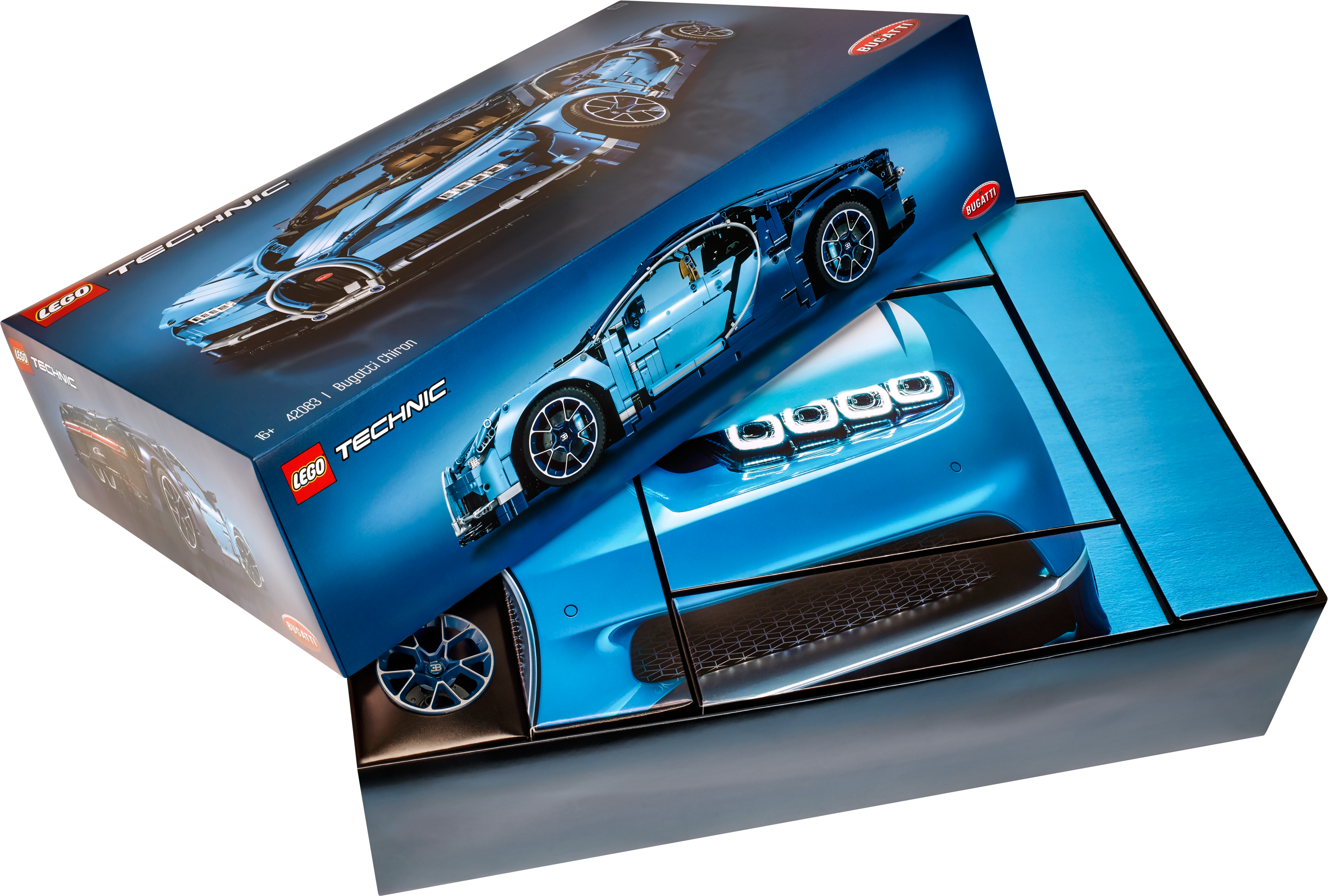 Explore engineering excellence with the LEGO® Technic™ 42083 Bugatti Chiron advanced building set. This exclusive model has been developed in partnership with Bugatti Automobiles S.A.S to capture the essence of the quintessential super sports car, and comes with gleaming aerodynamic bodywork, logoed spoked rims with low-profile tires, and detailed brake discs. The accessible cockpit features a Technic 8-speed gearbox with movable paddle gearshift and a steering wheel bearing the Bugatti emblem. Insert the top speed key and you can switch the active rear wing from handling to top speed position. The rear lid affords a glimpse of the detailed W16 engine with moving pistons, while beneath the hood you’ll discover a unique serial number and a compact storage compartment containing a stylish Bugatti overnight bag. This 1:8 scale model comes with a classic Bugatti duo-tone blue color scheme that reflects the brand's signature color, and a set of stickers for additional detailing. The set is delivered in luxurious box packaging and includes a color collector’s booklet with comprehensive building instructions. Exclusive 1:8 scale LEGO® Bugatti Chiron replica model with a wealth of luxurious features, including aerodynamic bodywork with an active rear wing, logoed spoked rims with low-profile tires, detailed brake discs and a W16 engine with moving pistons. Open the doors to access the detailed cockpit featuring a LEGO® Technic™ 8-speed gearbox with movable paddle gearshift and a steering wheel bearing the Bugatti emblem. Insert the top speed key to switch the active rear wing from handling to top speed position. Lift the hood to access a compact storage compartment containing a stylish Bugatti overnight bag. Check out the detailed W16 engine with moving pistons. Includes a unique serial number located beneath the hood. Comes with a classic Bugatti duo-tone blue color scheme that reflects the brand's signature color, plus a set of cool stickers for additional detailing. Delivered in luxurious box packaging. Includes a color collector's booklet with comprehensive building instructions. This LEGO® Technic™ model is designed to provide an immersive and rewarding building experience. This set includes 3,599 pieces. Suitable for ages 16+. Bugatti Chiron measures over 5” (14cm) high, 22” (56cm) long and 9” (25cm) wide.