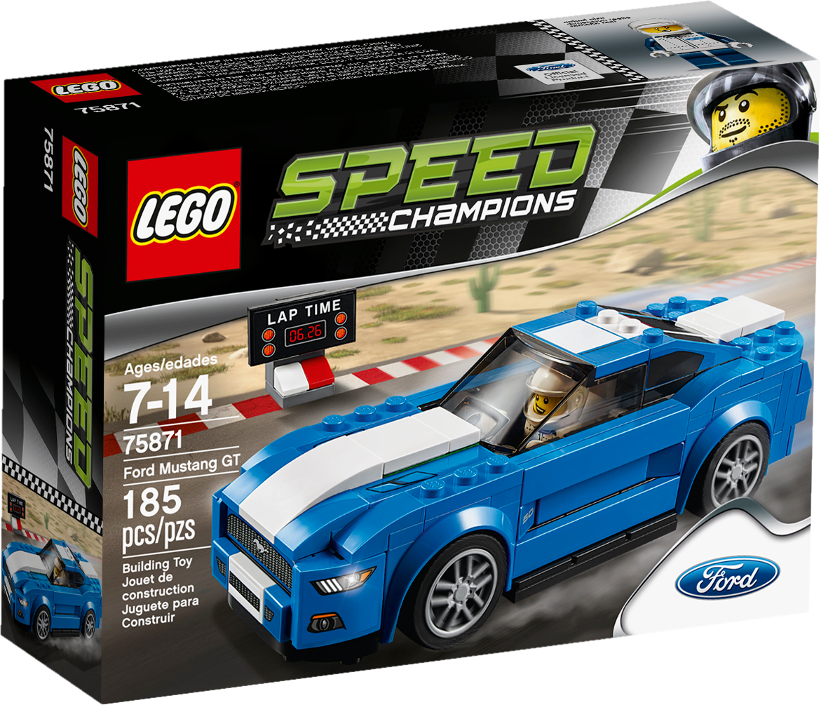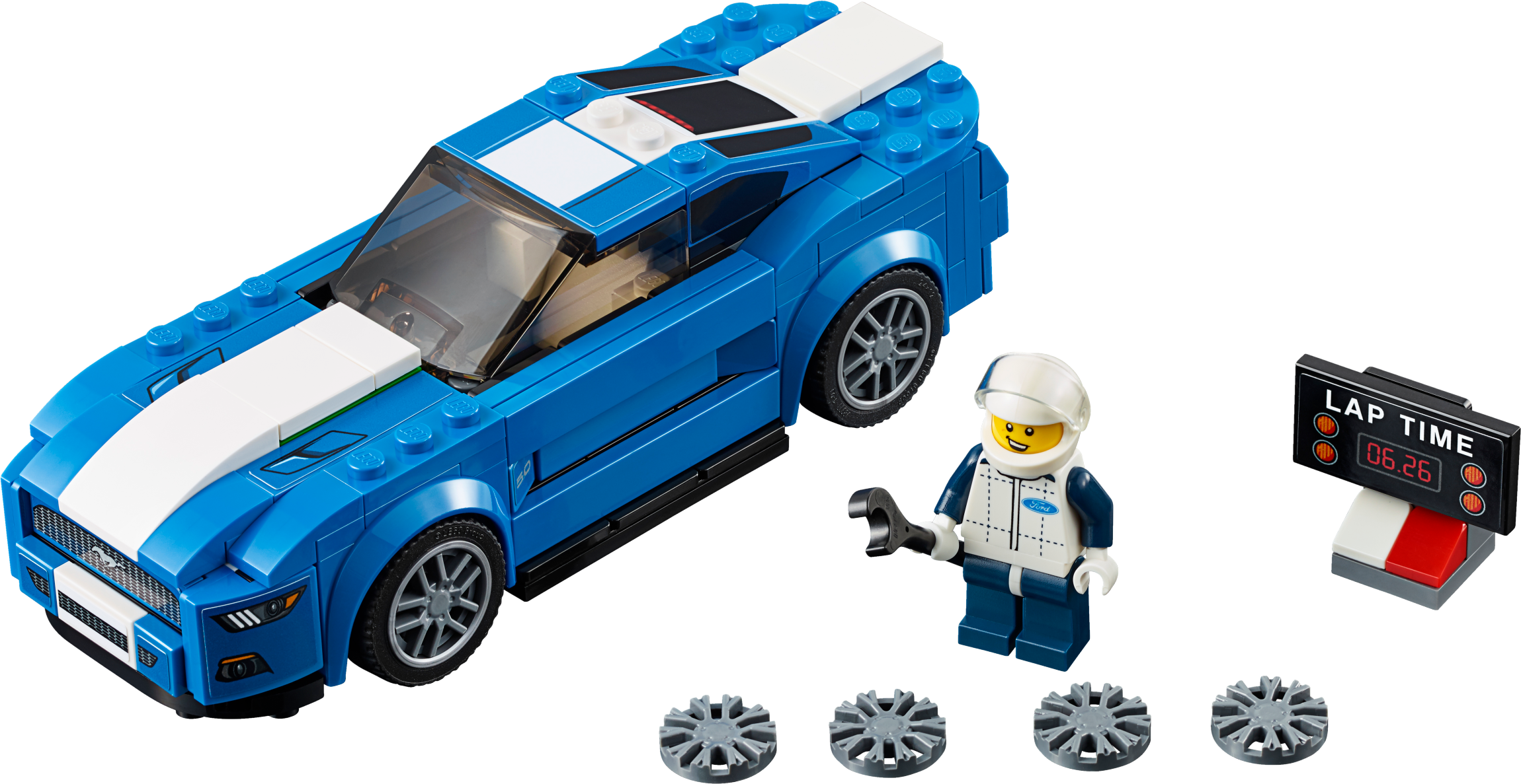 Break records in this American dream car! Prepare the mighty LEGO® Speed Champions Ford Mustang GT for a desert race. Choose your wheel trims, set up the timing board and power away. Display all your driving strengths and muscle your way to a new record! Includes a Ford racing driver minifigure. The race-ready, buildable Ford Mustang GT can fit a minifigure inside and has a removable windshield, 2 sets of interchangeable wheel trims, plus authentic Ford Mustang pony logo and headlight stickers. Accessory elements include the Ford Mustang GT driver's helmet, a wrench and a timing board displaying the quarter-mile time. Match up against the 75870 Chevrolet Corvette Z06 for a desert-racing duel! Measures over 1” (4cm) high, 5” (14cm)longand 1” (5cm) wide.