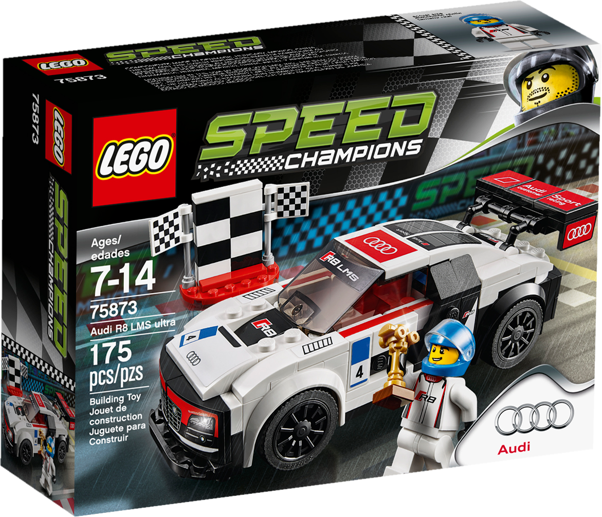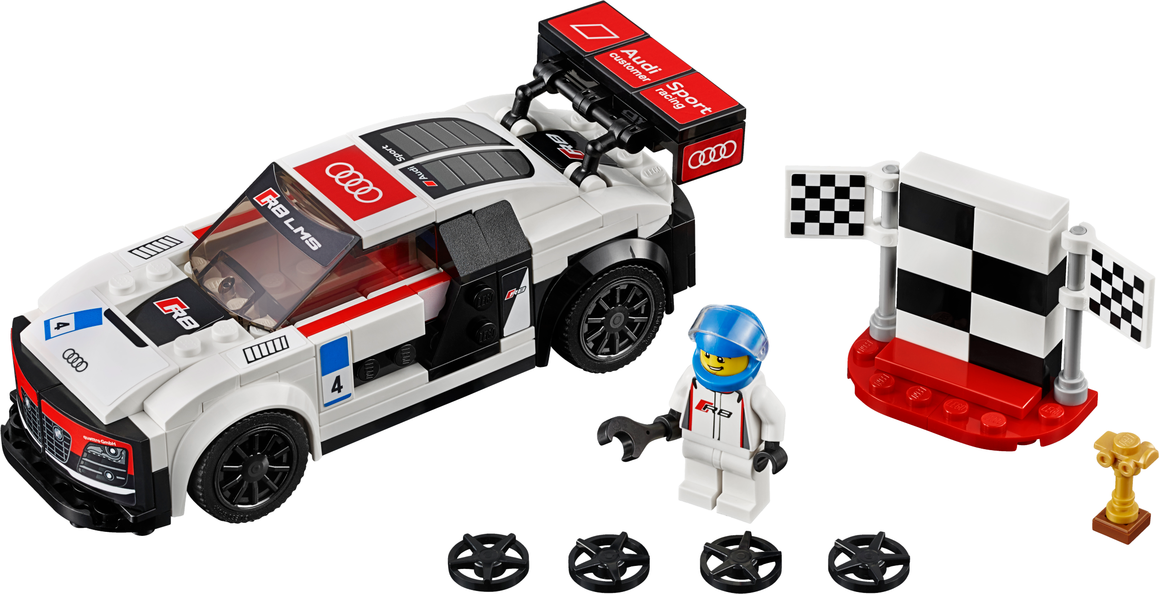 Get set for high-speed GT-class race action! Burn up the track with the LEGO® Speed Champions Audi R8 LMS. If the weather changes, stop for a wheel change and get back into the race as fast as you can. Show all your driving skills then lift the trophy on the victory podium! Includes an Audi racing driver minifigure. The race-ready, buildable Audi R8 LMS can fit a minifigure inside and has a removable windshield, 2 sets of interchangeable wheel trims, plus authentic Audi logo and headlight stickers. Also includes a victory podium with checkered flags. Accessory elements include the Audi racing driver's helmet, a wrench and a trophy. Match up against the 75872 Audi R18 e-tron quattro for a Le Mans-style race! Audi R8 LMS measures over 1” (4cm) high,5” (14cm) long and 1” (5cm) wide. Victory podium measures over 1” (4cm) wide and 1” (4cm) deep, and under 1” (2cm) high.