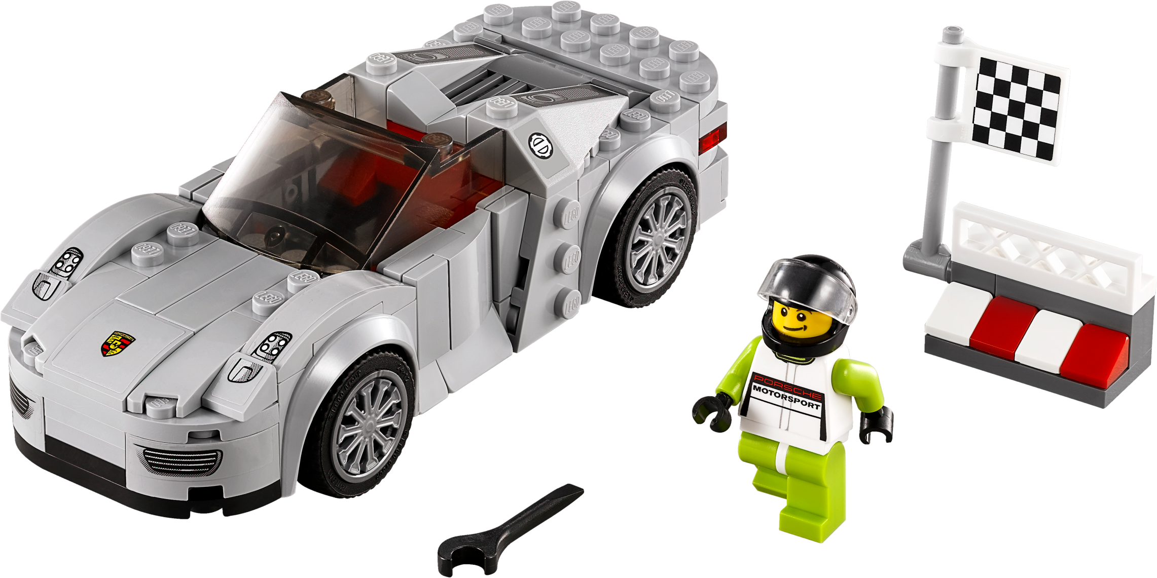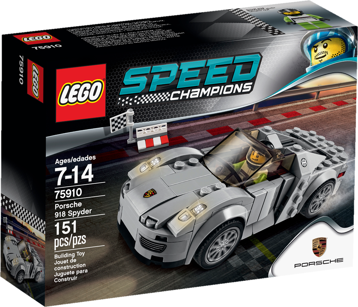 Take the checkered flag with the Porsche 918 Spyder! Go for a thrilling drive with the LEGO® Speed Champions version of the Porsche 918 Spyder! This race-ready, buildable vehicle boasts all the real-life details of Porsche’s awesome hybrid sports car. Select from 2 sets of cool wheel trims and use the wrench to make adjustments. Then place the driver at the steering wheel and accelerate away. Take on your friends’ LEGO® Speed Champions cars in a race to be first past the checkered flag! Includes a driver minifigure with assorted accessories Includes a driver minifigure with assorted accessories Porsche 918 Spyder features a removable windscreen, driver’s cockpit, 2 sets of interchangeable wheel trims (8 wheel trims in total) and authentic Porsche details Also includes a curb with checkered flag Driver’s racing suit features Porsche decoration Accessories include a helmet and a wrench Choose from 2 sets of wheel trims Change the wheel trims with the wrench Remove the windscreen to place the minifigure in the cockpit Race against your friends’ LEGO® Speed Champions cars Be first past the checkered flag! Porsche 918 Spyder measures over 1” (4cm) high, 5” (13cm) long and 1” (5cm) wide Curb with checkered flag measures over 1” (5cm) high, 1” (4cm) wide and under 1” (2cm) deep