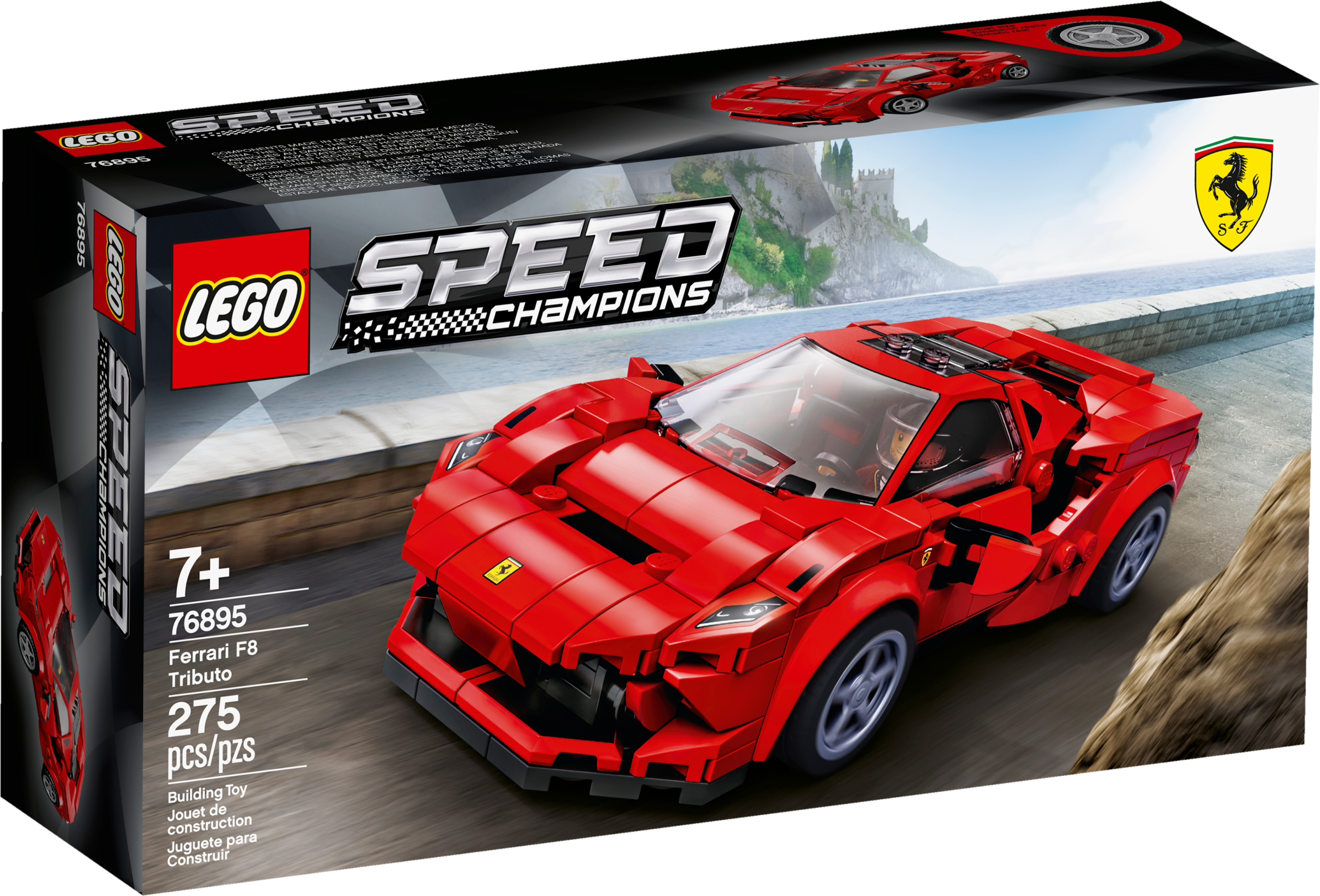This LEGO® Speed Champions Ferrari F8 Tributo (76895) is perfect for fans of toy cars and Ferrari! Racing enthusiasts of all ages will love to build this mini replica from LEGO bricks. They can create their very own super-fast F8 Tributo model car before displaying the sleek mini replica or challenging other cars to thrilling races. The most realistic Ferrari everLEGO Speed Champions cars are now 25% bigger than ever before, meaning even more authentic details. This F8 Tributo toy model car has the same beautiful design as the original, which boasts the fastest V8 engine in Ferrari’s history. This red toy model car kit also comes with a Ferrari racing minifigure. Place him behind the wheel and away you go! Recreate all the drama of the racetrack!LEGO Speed Champions building kits for kids let car fans construct mini versions of some of the world’s most famous cars. They can then display the models, enjoy some independent play, or stage thrilling races against their friends. A spectacular toy playset featuring a brilliantly detailed Ferrari F8 Tributo. The ideal birthday gift for those with a passion for building LEGO® replicas and then using their Ferrari model car to stage their own races. Includes a building kit of a Ferrari F8 Tributo model and 1 collectible Ferrari racing driver minifigure. This build your own toy car playset will fire up kids’ imaginations as they recreate the drama of the racetrack. The first ever opportunity to build a car toy replica of the super-fast Ferrari F8 Tributo. Kids can display it at home or use it to stage exciting races with their friends. This 275-piece model car kit for boys and girls aged 8+ makes a great birthday gift for those who love to build and play with Ferrari replicas, and fans of the glamour of the Italian car maker. The Ferrari F8 Tributo measures over 1” (4cm) high, 5” (15cm) long and 3” (8cm) wide. All 2020 LEGO® Speed Champions are 25% bigger, meaning the toy model cars reflect the real-life versions better than ever before! Buying this set for someone new to LEGO® building kits? No problem. Easy-to-follow, step-by-step instructions are included to help create this stunning toy model car.