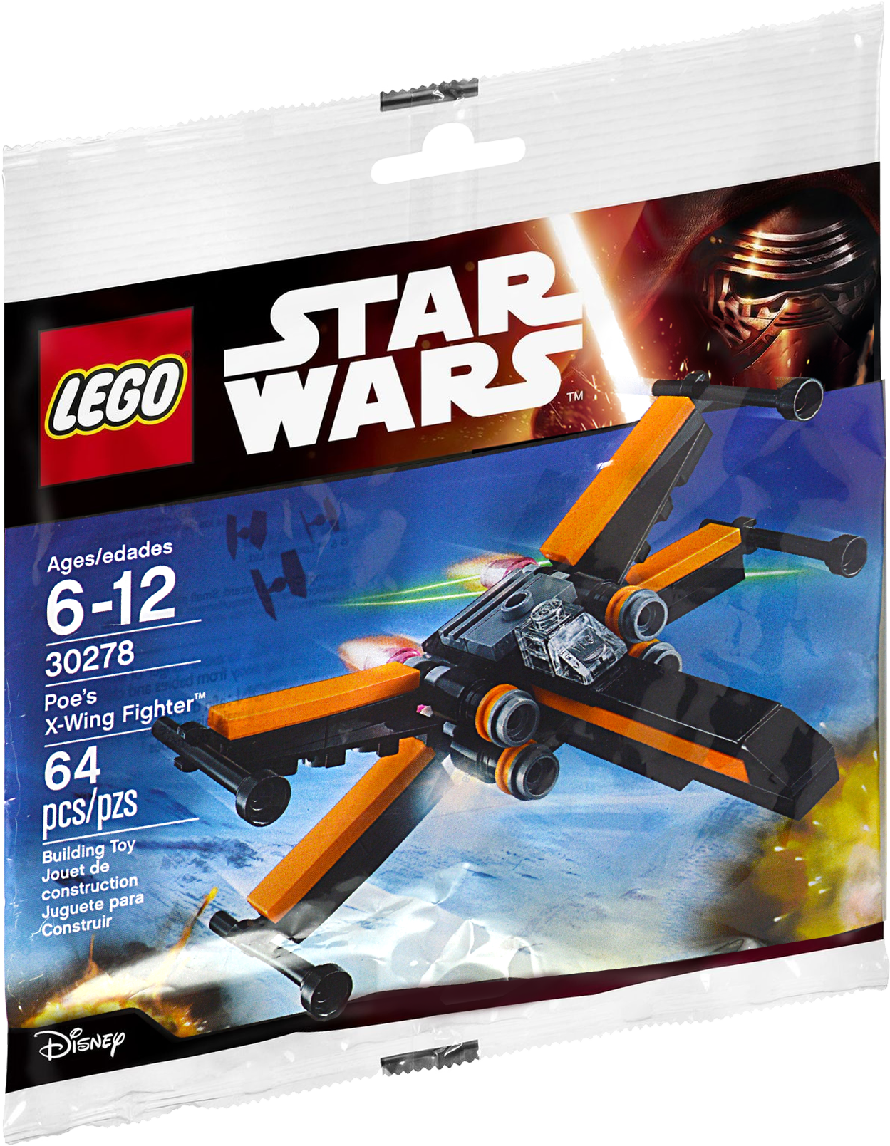 LEGO® Poe's X-wing Fighter Polybag. Enter the heat of battle aboard Poe's iconic X-Wing Fighter with folding wings, as seen in the blockbuster movie Star Wars: The Force Awakens.