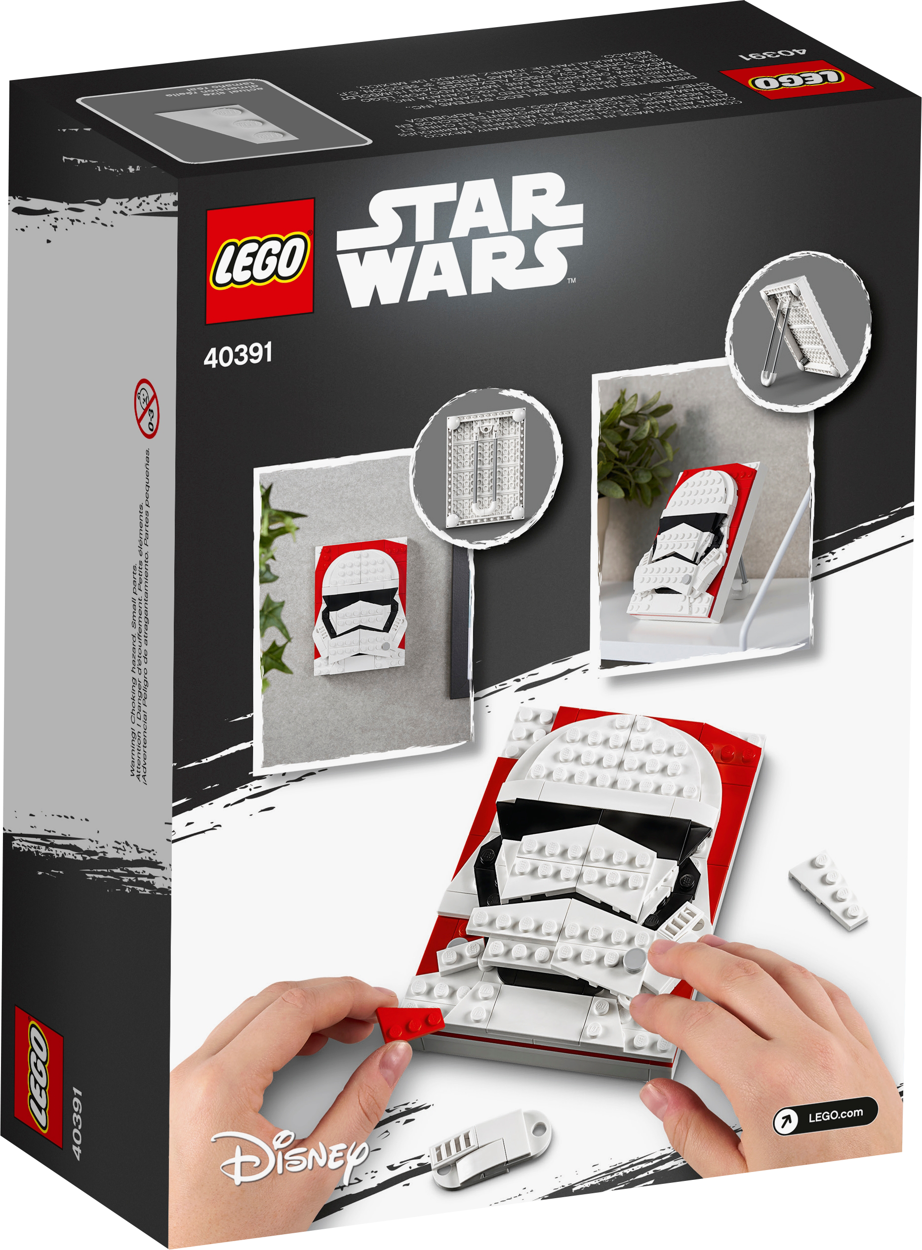 The LEGO® Brick Sketches™ First Order Stormtrooper measures over 5” (13cm) high, 3” (9cm) wide and 1” (3cm) deep. It will grab people’s attention whether hung by the built-in hook on a wall or displayed freestanding.