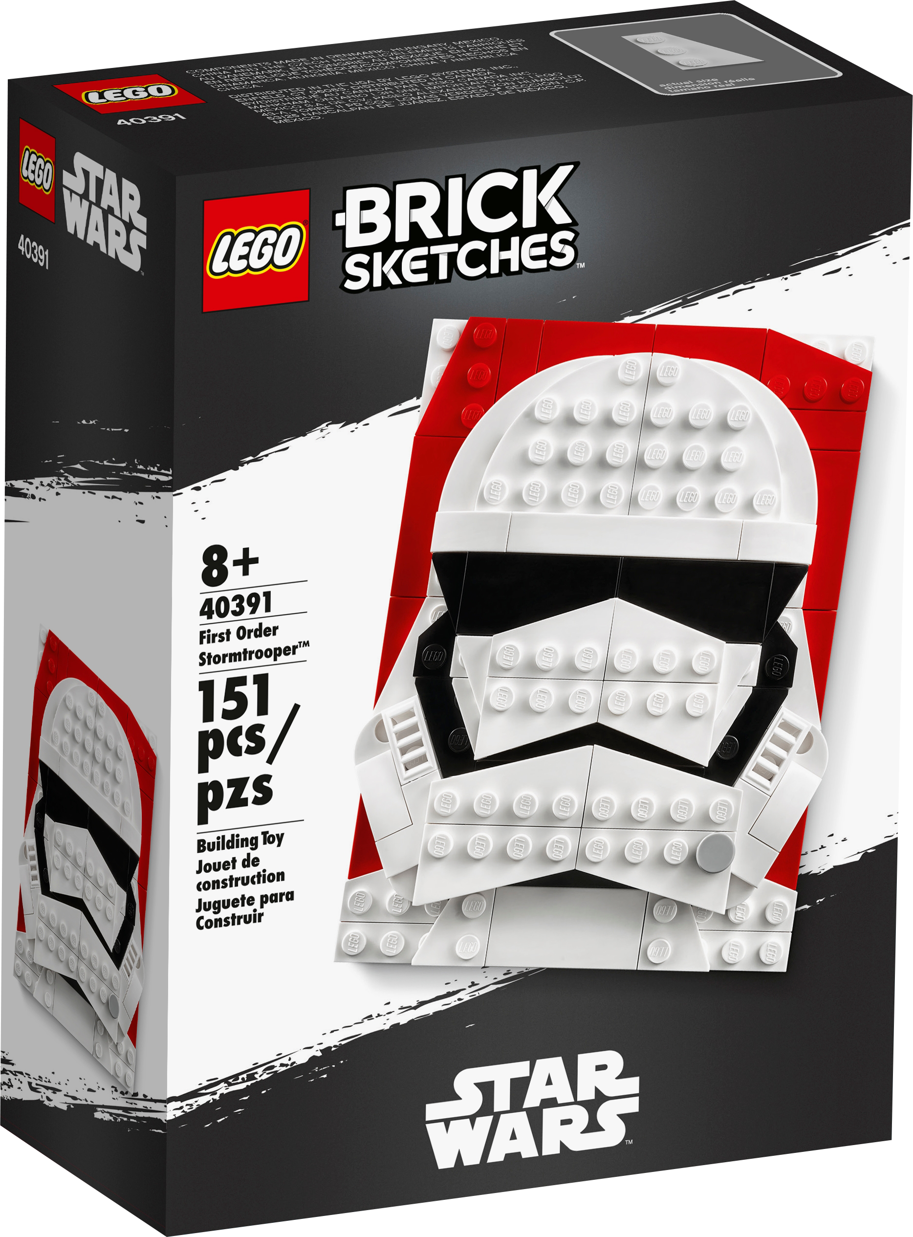 Show off the strength of the First Order with this LEGO® Brick Sketches™ First Order Stormtrooper (40391) construction set. This collectible, brick-built illustration of an iconic Star Wars character is created on a 12x16 baseplate and can be displayed standing up or hung by its built-in hook on a wall. An awesome birthday or holiday gift for kids and Star Wars fans, it makes a great addition to any builder's collection of LEGO Brick Sketches character portraits.