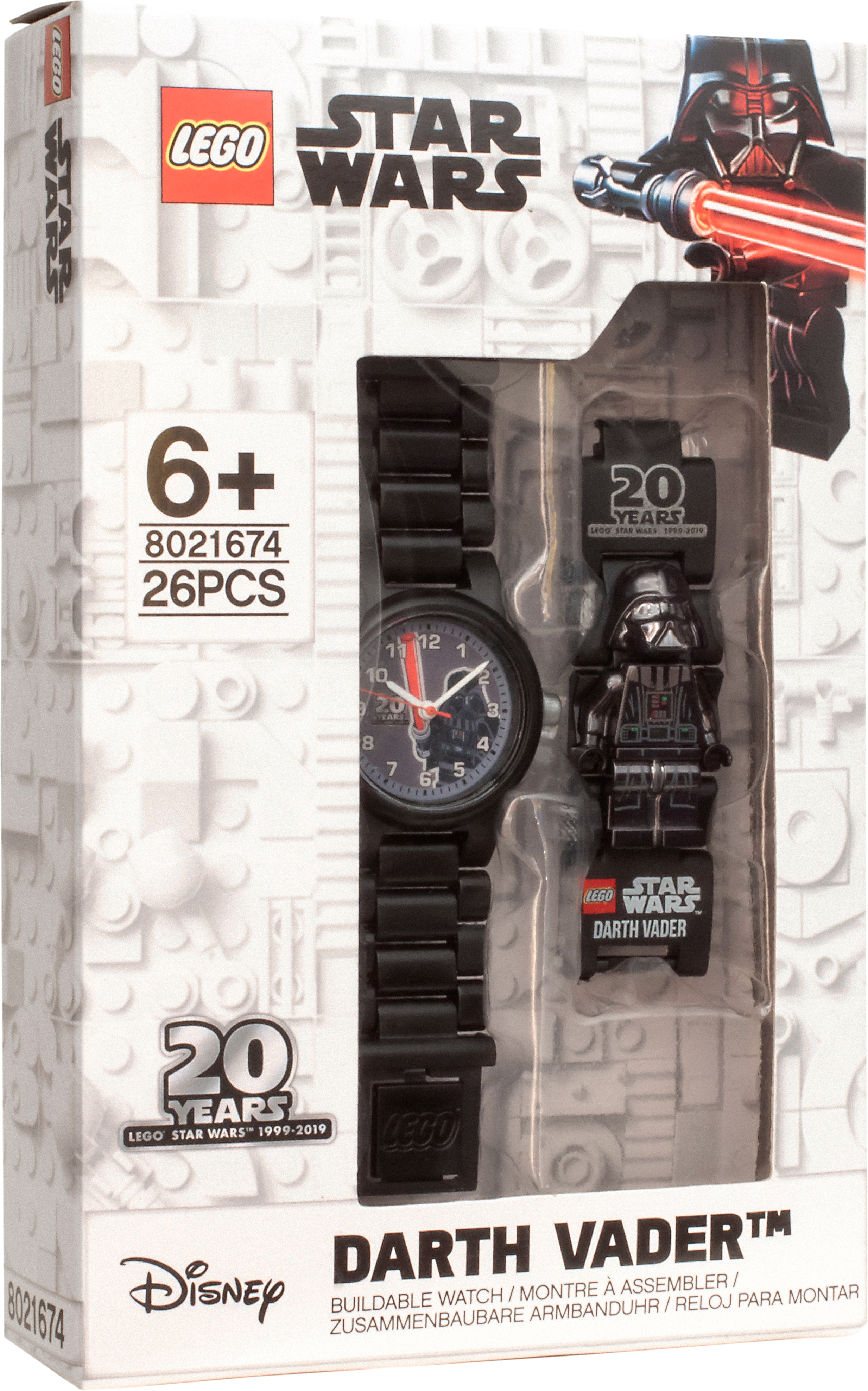 Features a Darth Vader clockface design, quartz movement, scratch-resistant lens, hour, minute and second hands, plus interchangeable multicolored links incorporating a sculpted, non-detachable, non-posable Darth Vader minifigure. Strap links can be easily added and removed to create personalized designs that fit comfortably around the wrist. PVC-free and conforms with relevant EU and US safety standards. LEGO® ClicTime watches are splash-resistant, tested to ISO standard 2281 to a static depth of 50m. This product requires batteries (included). Please refer to the product packaging for type and quantity.