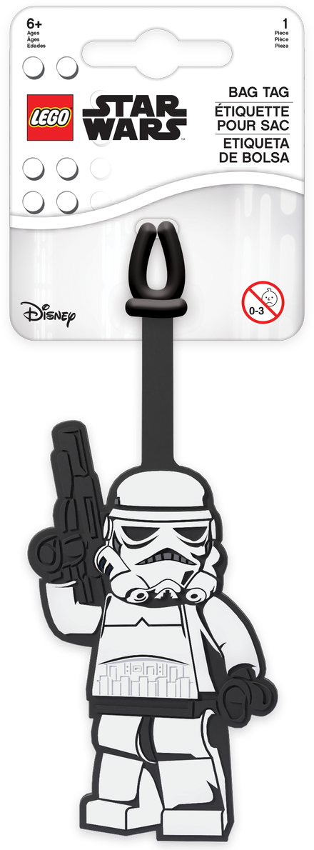 Stormtrooper Bag Tag is made from flexible, durable silicone in the shape of a Stormtrooper LEGO® minifigure with space on the back to write contact information. Measures over 6” (16cm) long and 2” (6cm) wide.