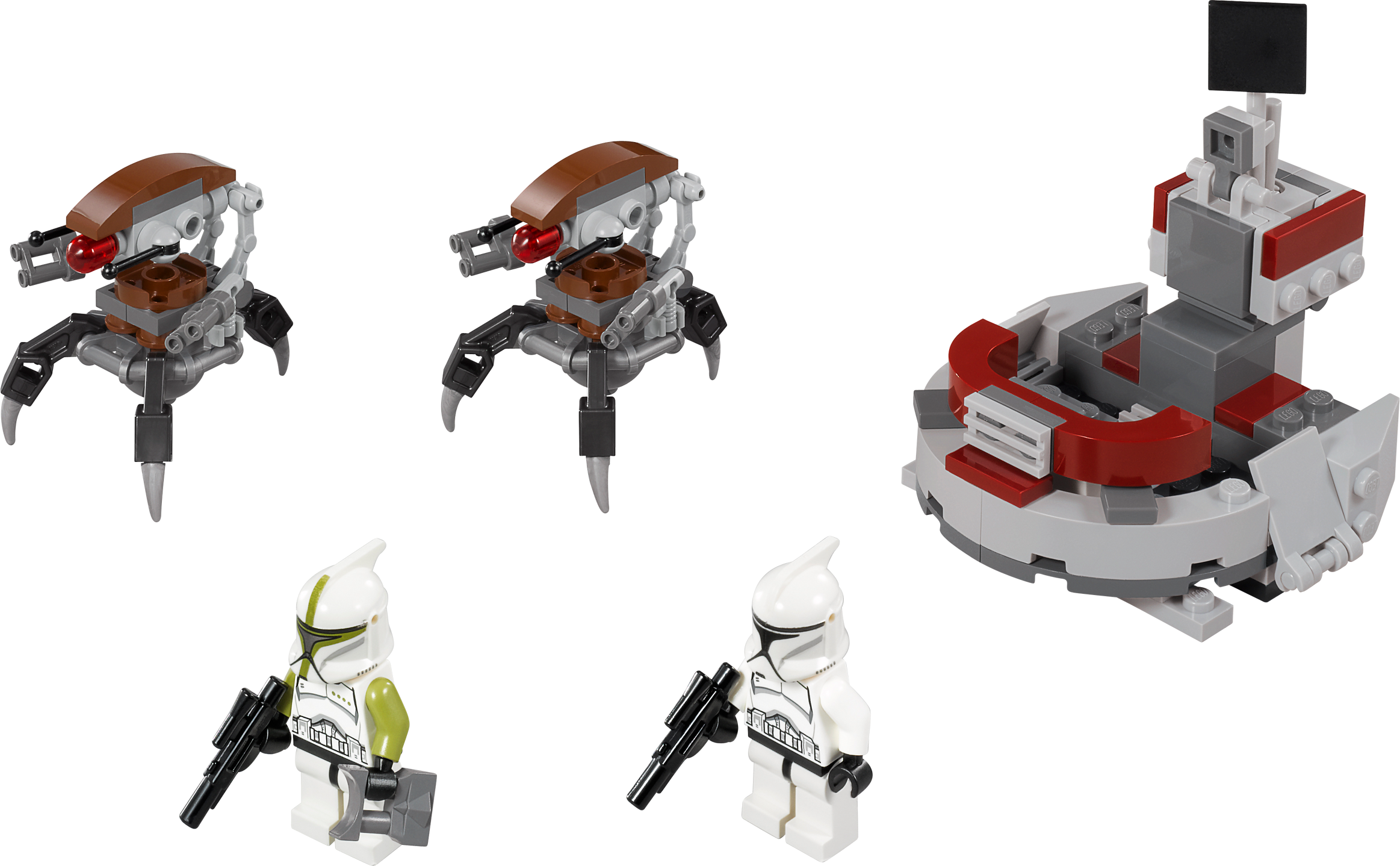 Stop the droideka attack on the command station! Watch the horizon from the Clone Commander’s command station! Use his electrobinoculars to spot 2 droidekas advancing on their position. Help the Clone Trooper repel the rolling Droids with a hidden flick missile before they come within range! Recreate epic battles from Star Wars™: Episode II Attack of the Clones. Includes 2 minifigures with assorted weapons and an accessory: Clone Commander and Clone Trooper.• Includes 2 minifigures with assorted weapons and an accessory: Clone Commander and Clone Trooper• Features 2 droidekas and a command station• Command station features hidden flick missile and opening doors• Weapons include 2 blaster pistols• Also includes electrobinoculars• Collect the never-before-featured Clone Trooper helmet!• Repel the droidekas!• Fire the hidden missile!• Command station measures over 3" (9cm) high, 4" (11cm) wide and 3" (8cm) deep