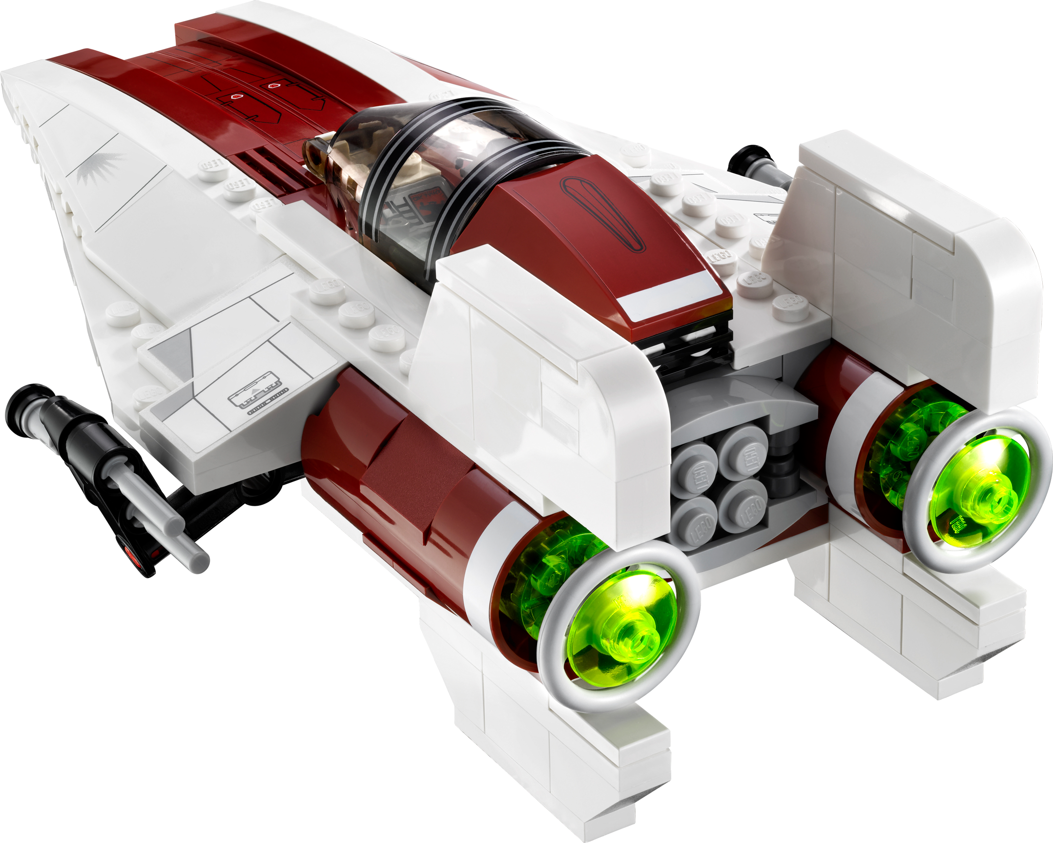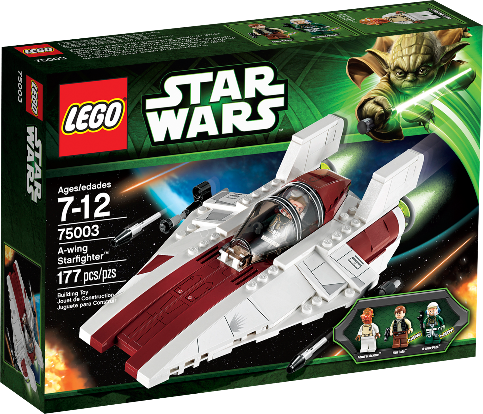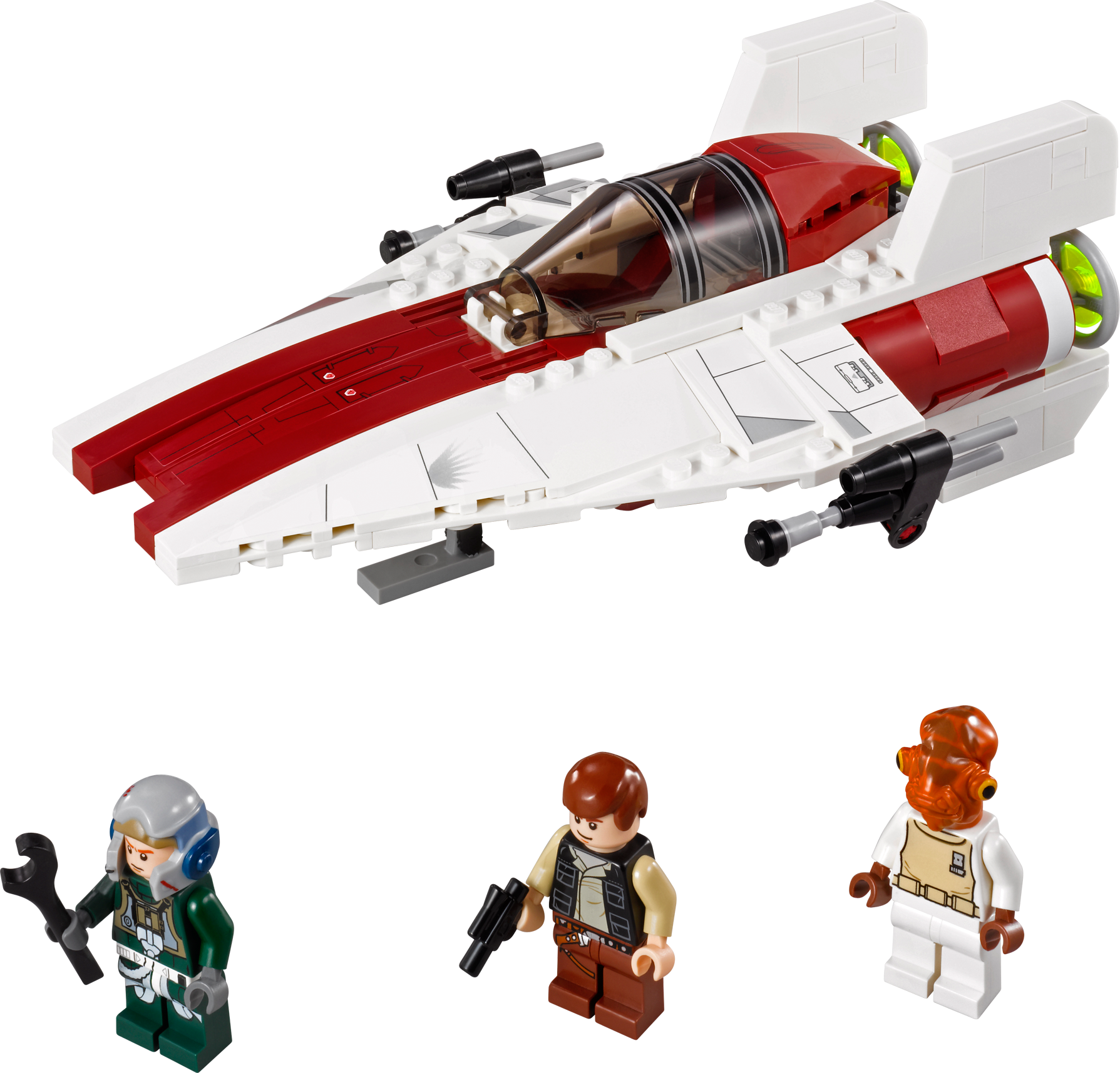 Battle the Imperial Fleet with the super-agile A-Wing Starfighter™! Bring the battle to the evil Empire with the Rebel Alliance's super-fast A-wing Starfighter! As featured in Star Wars™: Episode VI Return of the Jedi™, the agile A-wing, with an opening cockpit, is perfect for attacking the Imperial Fleet! Build the same lightning-fast ship that destroyed Darth Vader’s Executor! Then, take on the Imperial forces with Admiral Ackbar, an A-wing pilot and Han Solo!• Includes 3 minifigures: Admiral Ackbar, A-wing pilot and Han Solo• A-wing Starfighter features 4 flick missiles, opening cockpit and removable engine• Weapons include a blaster pistol• Accessories include mug and a wrench• Collect the A-wing pilot helmet, being featured for the first time ever by LEGO® Star Wars™!• Bring the battle to the Imperial Fleet!• Fire the missiles!• Remove the engine!• A-wing Starfighter measures over 2" (7cm) high, 7" (19cm) long and 5" (14cm) wide