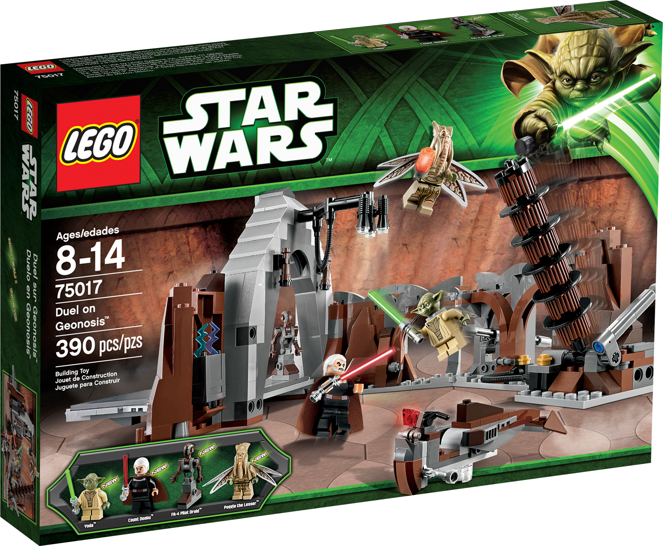 Defeat Count Dooku™ and recover the plans for the Death Star! Stop Count Dooku™ from leaving Geonosis™ with the plans for the Death Star! Use the Force to help Jedi Master Yoda™ jump into the air, dodge the Sith Lord’s Force Lightning attack and bring Dooku to justice. Don’t let him destroy the lair and escape on his speeder. Includes 4 minifigures with weapons: Count Dooku, Yoda, Poggle the Lesser and Dooku’s Pilot Droid™.• Includes 4 minifigures with weapons: Count Dooku™, Yoda™, Poggle the Lesser and Dooku’s Pilot Droid™• Lair features falling lamps, tower handle and hidden compartment• Also features Dooku’s speeder• Weapons include 2 Lightsabers• Accessories include Death Star plans decorated tile, walking stick and a Force Lightning element• Unleash Dooku’s Sith Force Lightning attack!• Pull the lever and topple the pillar• Hop on the speeder and outrun the Jedi!• Hide the Death Star plans in the hidden compartment• Collect the redesigned Yoda and Poggle the Lesser minifigures• Lair measures over 5" (15cm) high, 15" (40cm) wide and 6" (17cm) deep• Dooku’s speeder measures over 1" (4cm) high, 4" (12cm) long and 1" (4cm) wide