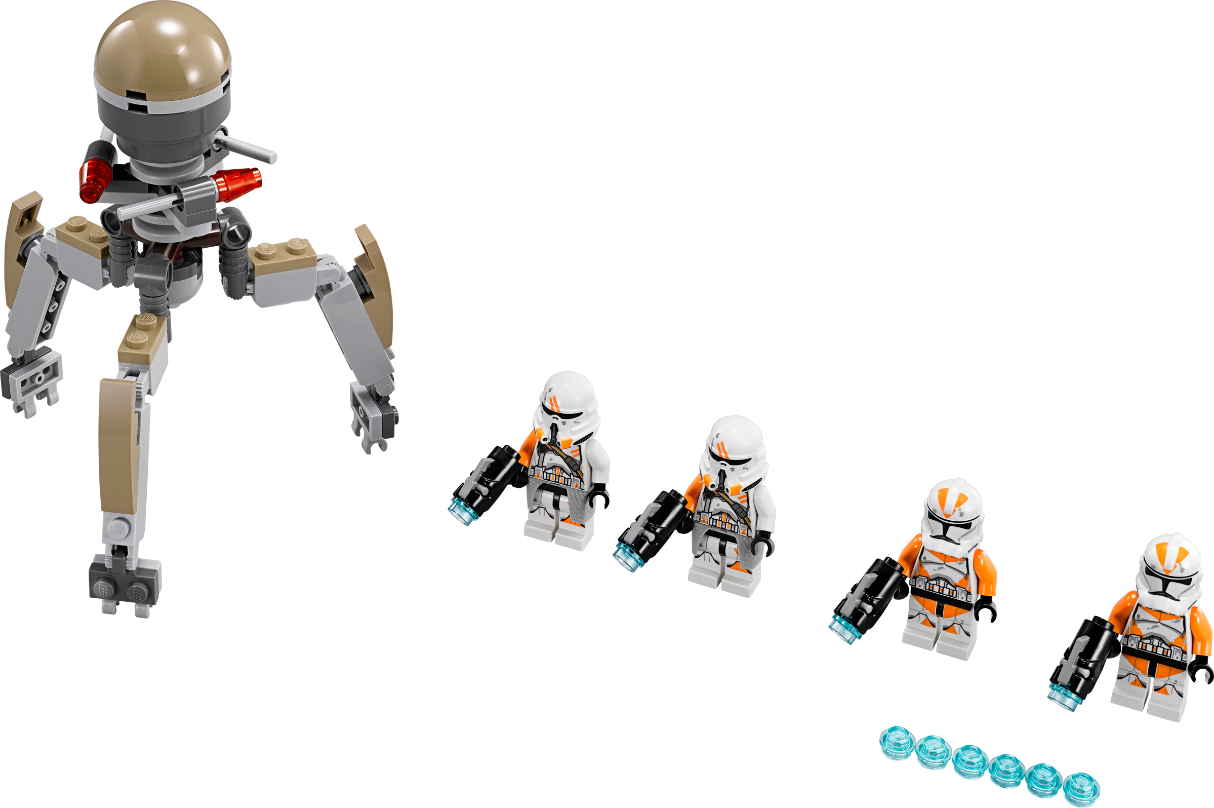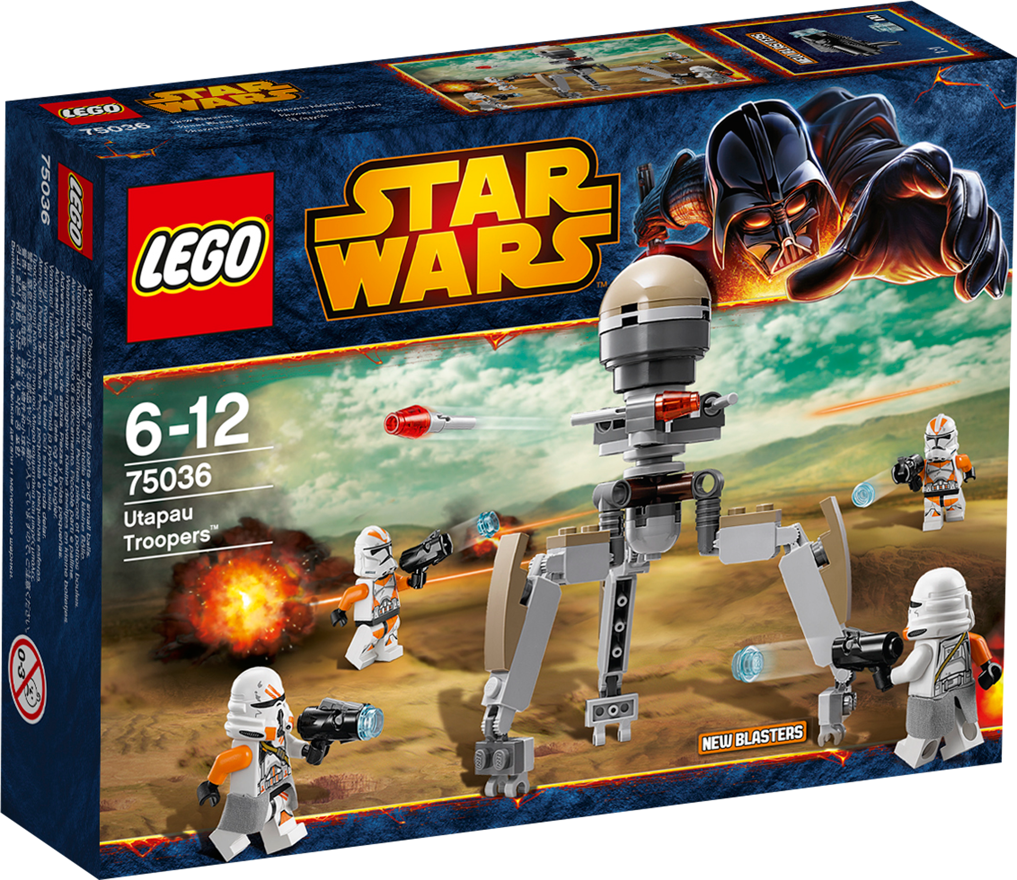 Defeat the Tri-Droid with the Utapau Troopers™ battle pack! Help the 212th Battalion Clone Troopers take on the Octuptarra Tri-Droid with the LEGO® Star Wars™ Utapau Troopers™ battle pack. But watch out! With a rotating head, poseable legs and 3 flick missiles, the dangerous Tri-Droid is more than a match for the Clone Troopers! Includes 4 minifigures with weapons: 2 212th Battalion Clone Troopers™ and 2 Airborne Clone Troopers™.Includes 4 minifigures with weapons: 2 212th Battalion Clone Troopers™ and 2 Airborne Clone Troopers™Features a Tri-Droid with a rotating head, poseable legs and 3 flick missilesIncludes 4 new blasters that really fireFeatures new Airborne Clone Trooper™ helmet design and body detailingTri-Droid (with legs folded) measures over 5” (14cm) high, 3” (8cm) long and 2” (7cm) wide