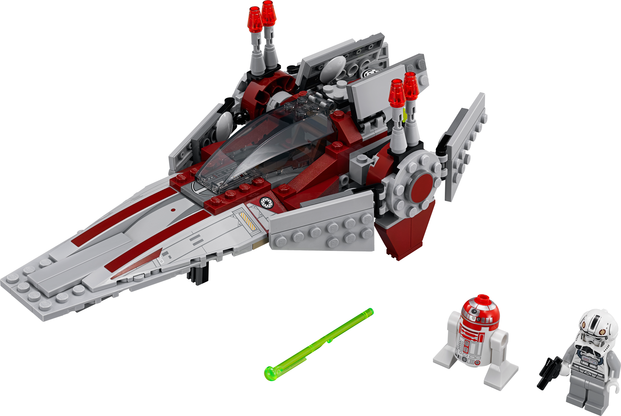 Launch a daring rescue with the agile V-Wing Starfighter™! Jump in the V-Wing Starfighter™ with opening cockpit, rotating wings for flying and landing modes, new dual spring-loaded shooters and Astromech Droid™. Then speed off to planet Mustafar and help return the injured Anakin Skywalker™ to the dark forces of the Sith. Includes a V-Wing Pilot™ with blaster pistol and an Astromech Droid.Includes V-Wing Pilot™ with blaster pistol and an Astromech Droid™Features opening cockpit, rotating wings for flying and landing modes, and new dual spring-loaded shootersIncludes a blaster pistolRotate the wings and prepare for landingLoad the missiles and fire the powerful new dual spring-loaded shootersRecreate exciting scenes from Star Wars: Episode III Revenge of the SithV-Wing measures over 5” (13cm) high, 8” (22cm) long and 4” (11cm) wide