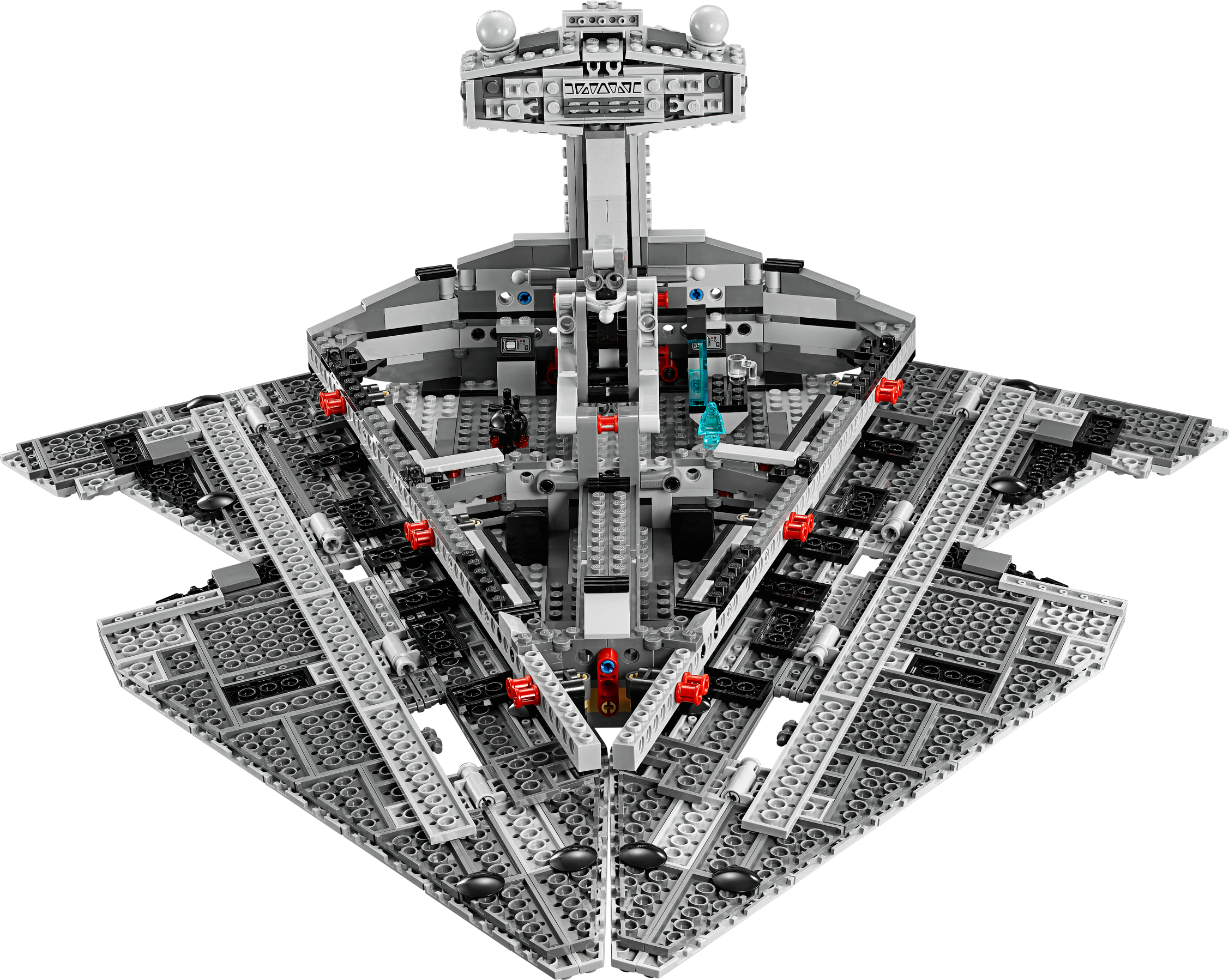Get inside one of the Imperial fleet’s most destructive vessels! Experience the power of the Empire! The Imperial Star Destroyer™ is the signature vessel of the Imperial fleet. Turn the rear handle to aim the 8 synchronized cannons and unleash the spring-loaded shooters mounted on the superstructure. Remove the top to reveal the stunningly detailed interior with never-before-seen Emperor Palpatine hologram, rotating chairs for the crew, weapons rack, bridge, control panel and more. Recreate scenes featuring the evil Sith Lord Darth Vader™ from the classic Star Wars movies with this iconic model and use the lifting handle for enhanced play and easy transportation.Includes 6 minifigures with assorted weapons: Darth Vader™, Imperial Officer, 2 Stormtroopers™, Imperial Crew, Imperial Navy Trooper™, plus 2 new, unique figures: Emperor Palpatine Hologram and a Mouse Droid™Features a lifting handle, removable top and fold-down sides for easy play, 8 synchronized turning cannons, 2 spring-loaded shooters, storage compartment for 2 spare missiles, 7 powerful blue engines, and a detailed interior including rotating Emperor Palpatine hologram, rotating chairs, turning weapon rack, bridge, blue screen and a control panelWeapons include 2 blaster rifles and 2 blastersTurn the handle to aim the 8 synchronized cannonsFire the spring-loaded shootersRotate the never-before-seen Emperor Palpatine hologramPlay out classic Star Wars scenes with the Dark Lord of the Sith, Darth Vader™!Measures over 7” (19cm) high, 19” (50cm) long and 12” (33cm) wide