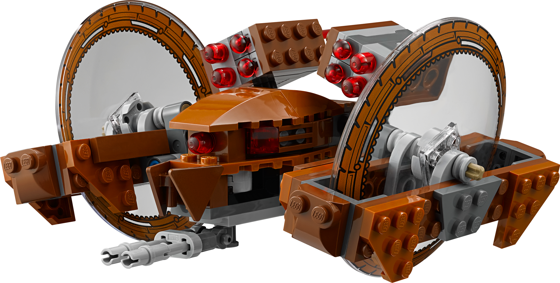 Call in mobile firepower with the amazing Hailfire Droid! Roll into battle against the clone army on Geonosis with the devastating LEGO® Star Wars Hailfire Droid! As featured in Star Wars: Episode II Attack of the Clones, this highly maneuverable Droid can speed across any terrain on its huge wheels to join the battle. As well as giant rotating wheels, this armored Droid features folding side pylons, an adjustable gun and 4 awesome spring-loaded shooters. Includes a Clone Trooper Lieutenant minifigure with a weapon and 2 Super Battle Droids. Includes a Clone Trooper Lieutenant minifigure with a weapon and 2 Super Battle Droids Features giant rotating wheels, folding side pylons, an adjustable gun and 4 spring-loaded shooters Also includes a blaster Unleash the 4 spring-loaded shooters Roll into battle and cause some havoc! Extend the pylons for attack mode Avoid the Super Battle Droids As featured in Star Wars: Episode II Attack of the Clones Hailfire Droid (in attack mode) measures over 3” (8cm) high, 5” (13cm) long and 5” (15cm) wide