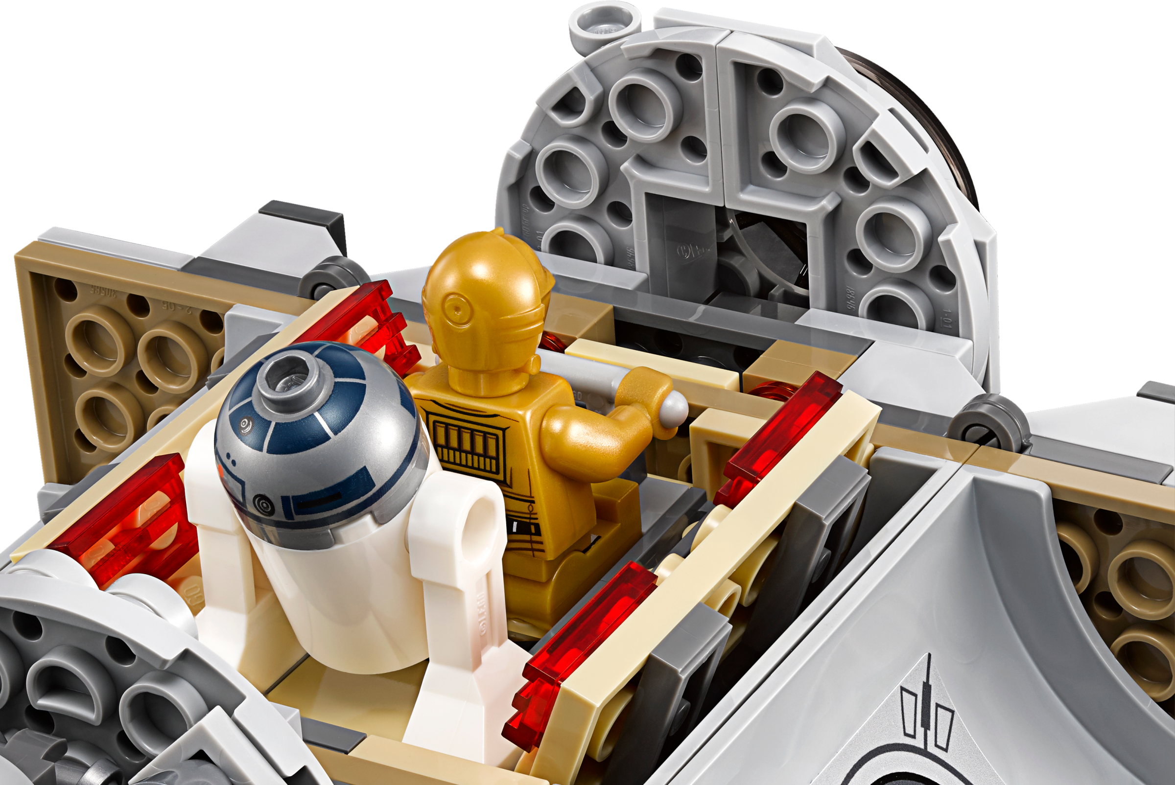 Help the droids escape with the Death Star plans! C-3PO and R2-D2 are in danger and they need your help to escape! Load them into the Droid Escape Pod, close the hatches and launch to safety. After landing on the nearest planet, can you keep them safe from the Jawas with their ion blasters? That’s for you to decide. Includes 3 minifigures: C-3PO and 2 Jawas, plus an R2-D2 Astromech Droid. Features opening hatches, large engines at the back and a detailed interior with space for 2 characters and a display showing the top-secret Death Star plans. Includes 2 Jawa ion blasters. Recreate the unforgettable opening scenes from Star Wars: Episode IV A New Hope. Measures over 2” (7cm) high, 5” (14cm) long and 2” (6cm) wide with hatches closed, and over 5” (13cm) wide when open.