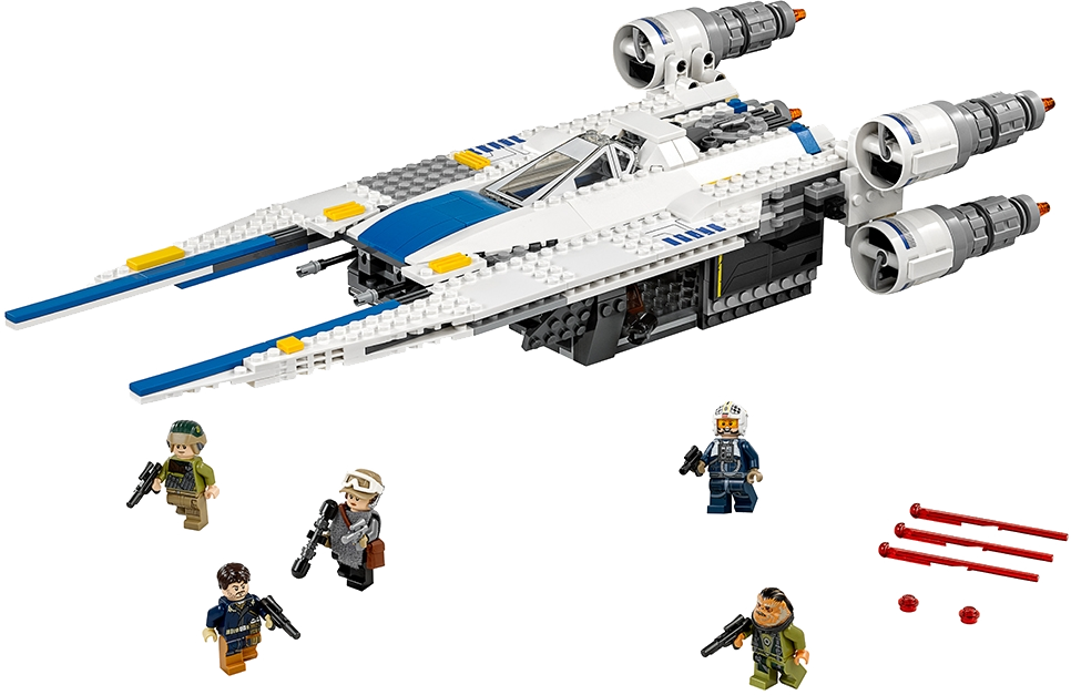 The amazing U-Wing Fighter has all the details you would expect from an authentic Star Wars model, including 4 big engines, an opening minifigure cockpit with transparent lower observation window, opening side doors with pull-out stud shooters, dual spring-loaded shooters at the front, rear storage hold and huge wings that sweep back to create an even bigger model. Includes 5 minifigures. Includes 5 minifigures: a U-wing Pilot, Bistan, Jyn Erso, Cassian Andor and a Rebel Trooper. Features 4 big engines, an opening minifigure cockpit with transparent lower observation window, opening side doors with pull-out stud shooters, front spring-loaded shooters, rear storage hold and huge sweep-back wings. Weapons include 3 blasters and 2 blaster pistols. Also includes extra ammo. Recreate fantastic scenes from the blockbuster movie, Star Wars: Rogue One. The perfect addition to any LEGO® Star Wars collection. This set offers an age-appropriate building experience for ages 8-14. Measures over 3” (10cm) high, 17” (44cm) long and 7” (20cm) wide with wings closed, and over 14” (38cm) long and 25” (64cm) wide with wings open.
