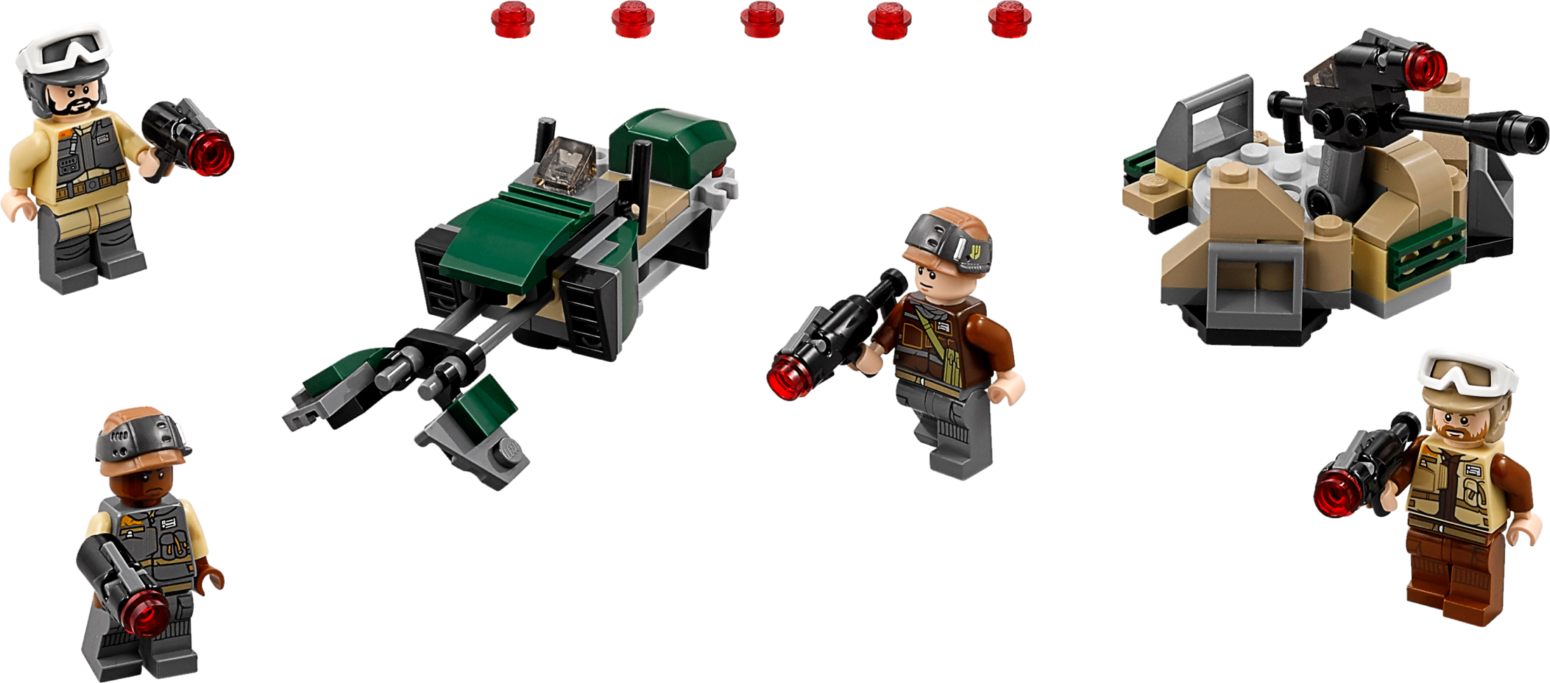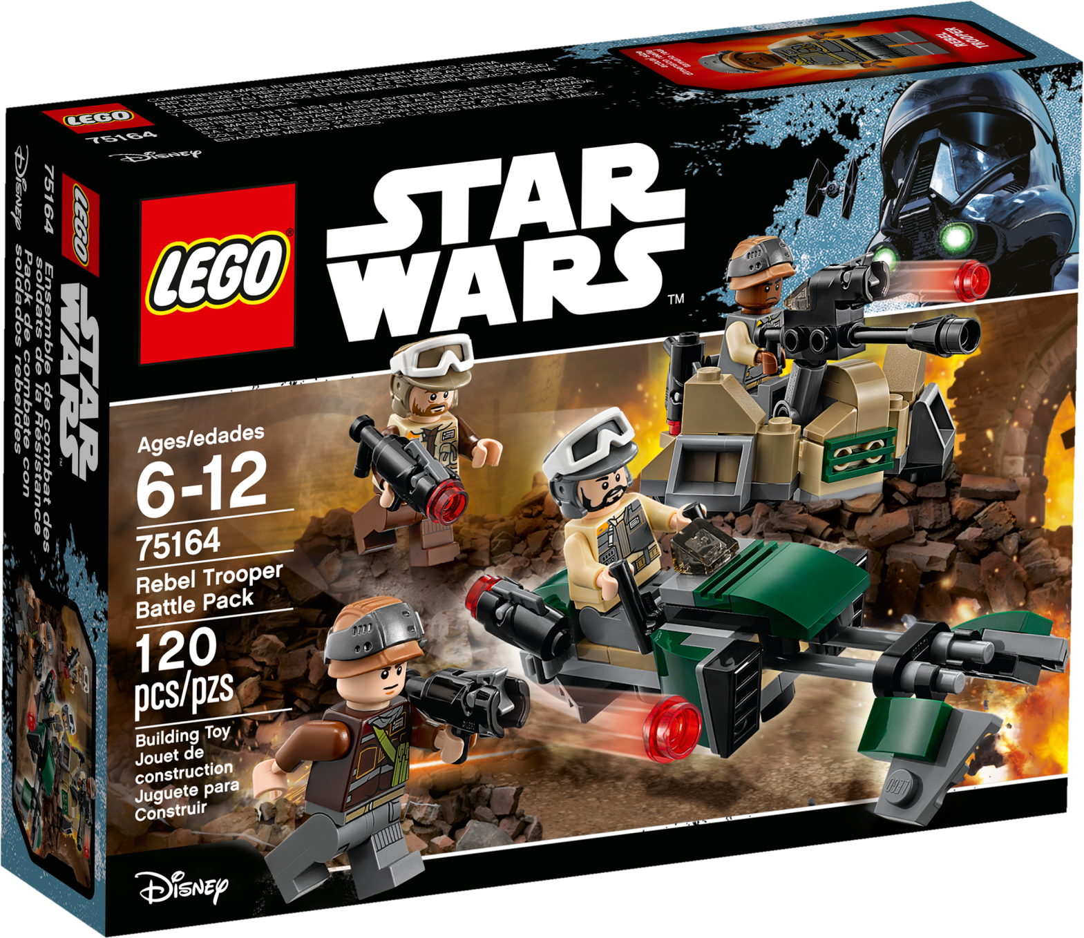 Expand your army with the Rebel Trooper Battle Pack. Featuring a speederbike with stud blaster storage clips and space for a minifigure, plus a trench section featuring a multidirectional laser cannon with stud shooter and extra ammo, this great set makes the perfect addition to any LEGO® Star Wars collection. Includes four minifigures each with a stud blaster. Includes four Rebel Trooper minifigures Features a speederbike with stud blaster storage clips and space for a minifigure, plus a trench section with a multidirectional cannon with stud shooter and extra ammo. Jump on the speederbike, grab your stud blasters and get ready for action! Man the stud-firing laser cannon and prepare for battle. Weapons include the Rebel Troopers' four stud blasters and extra ammo. This set offers an age-appropriate build and play experience for ages6-12. Play out action-packed scenes from the blockbuster movie Star Wars: Rogue One. Combine with the 75165 Imperial Trooper Battle Pack for epic Star Wars: Rogue One encounters. Speederbike measures over 1” (3cm) high, 4” (11cm) long and 1” (4cm) wide. Trench section measures over 1” (5cm) high, 3” (9cm) wide and 2” (7cm) deep.