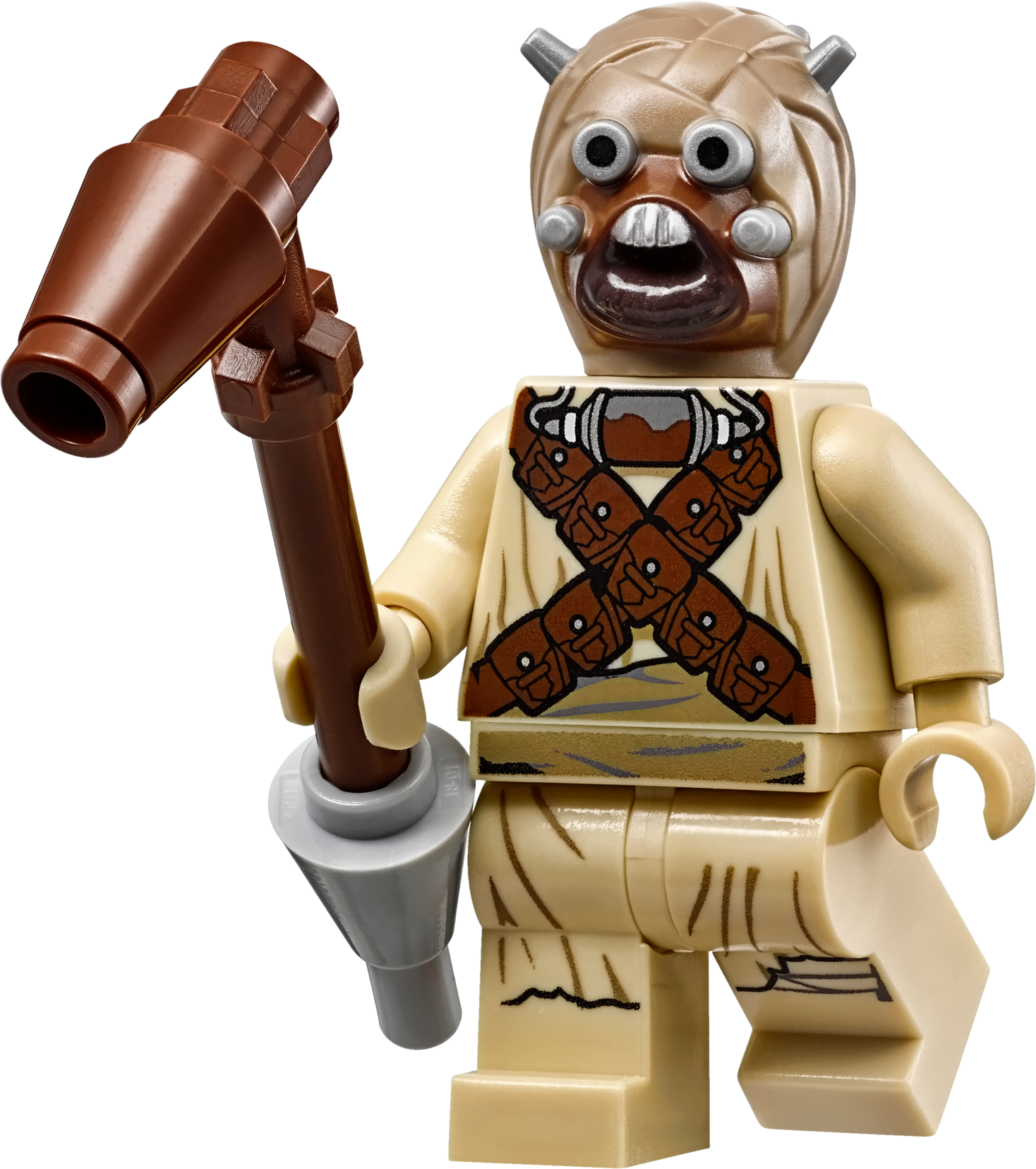 Weapons include Ben’s blue Lightsaber and the Tusken Raider's bantha stick.