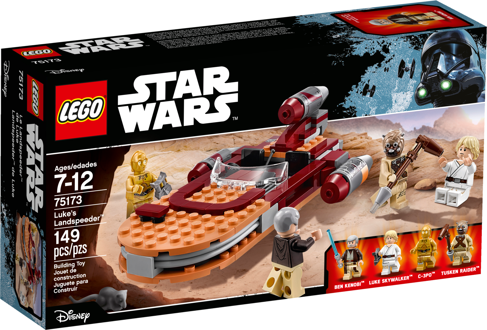 Includes four minifigures: Luke Skywalker, Ben Kenobi, C-3PO and a Tusken Raider, plus a womp rat figure.