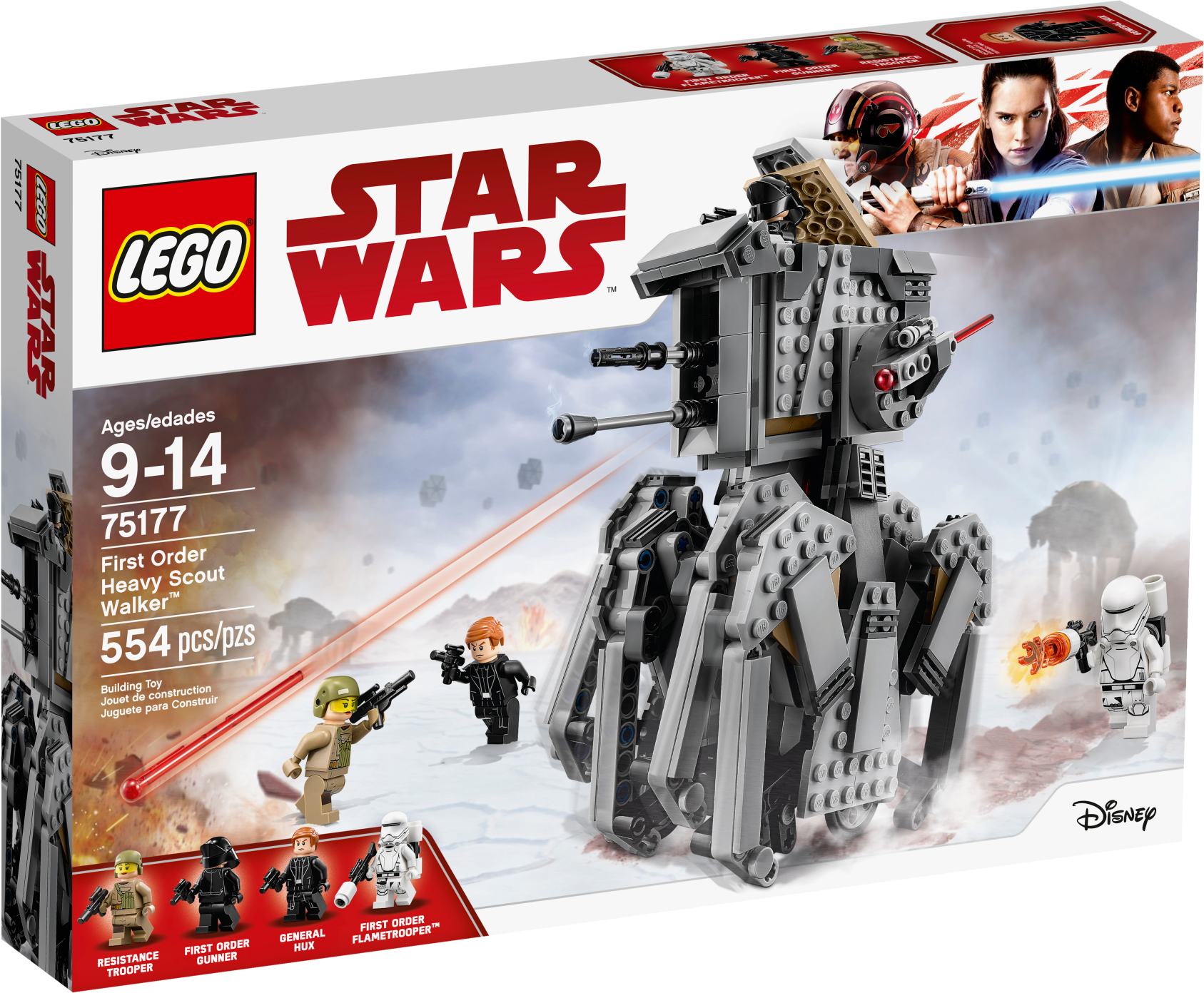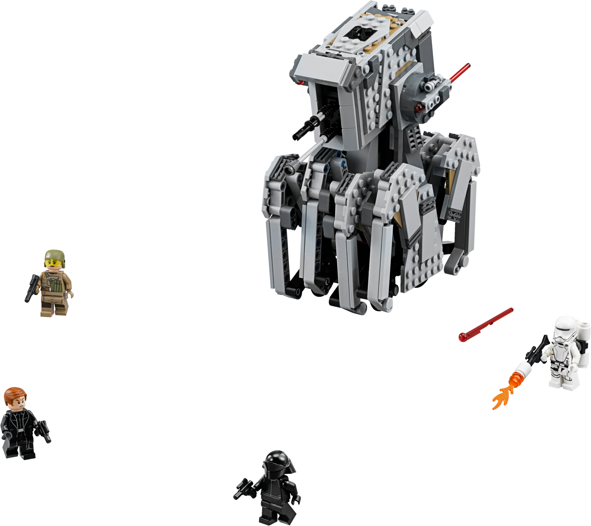 Send General Hux and his crew into battle in the armored First Order Heavy Scout Walker. This impressive LEGO® Star Wars version of the walker inspired by the blockbuster Star Wars Episode VIII movie features a 2-minifigure cockpit with opening top hatch, elevating spring-loaded shooters at both sides, elevating guns at the front, missile storage clips and hidden wheels that turn to make the legs ‘crawl’. This set also includes 4 minifigures. Includes 4 minifigures: General Hux, a First Order Gunner, Resistance Trooper and a First Order Flametrooper. Features a 2-minifigure cockpit with opening top hatch, elevating spring-loaded shooters at the side, missile storage clips, elevating front-mounted guns, hidden wheels and ‘crawling' legs. Push the walker and see the legs move. Weapons include 2 blaster pistols, a blaster and the Flametrooper's flamethrower. Measures over 7” (20cm) high, 6” (17cm) long and 3” (9cm) wide.