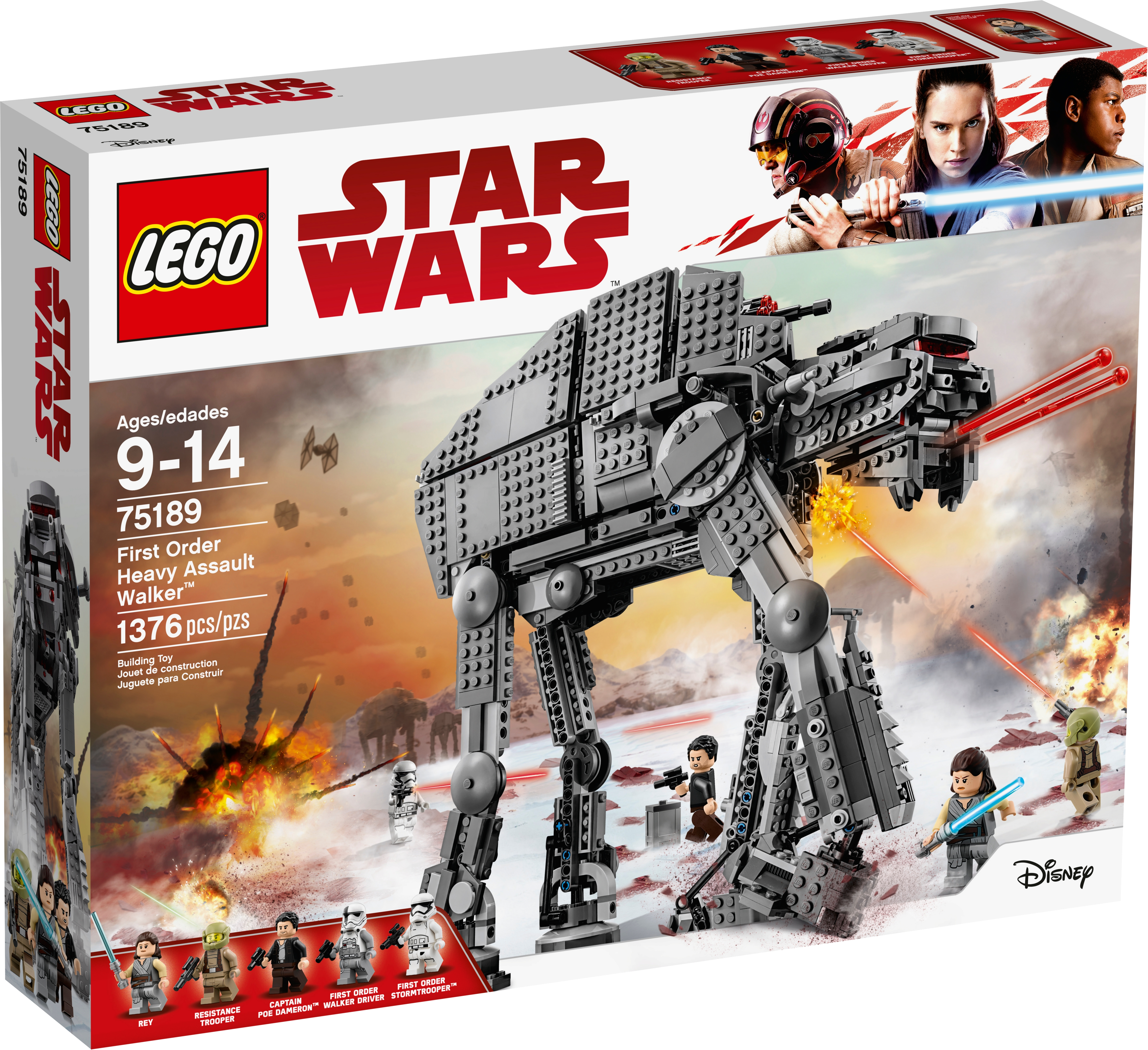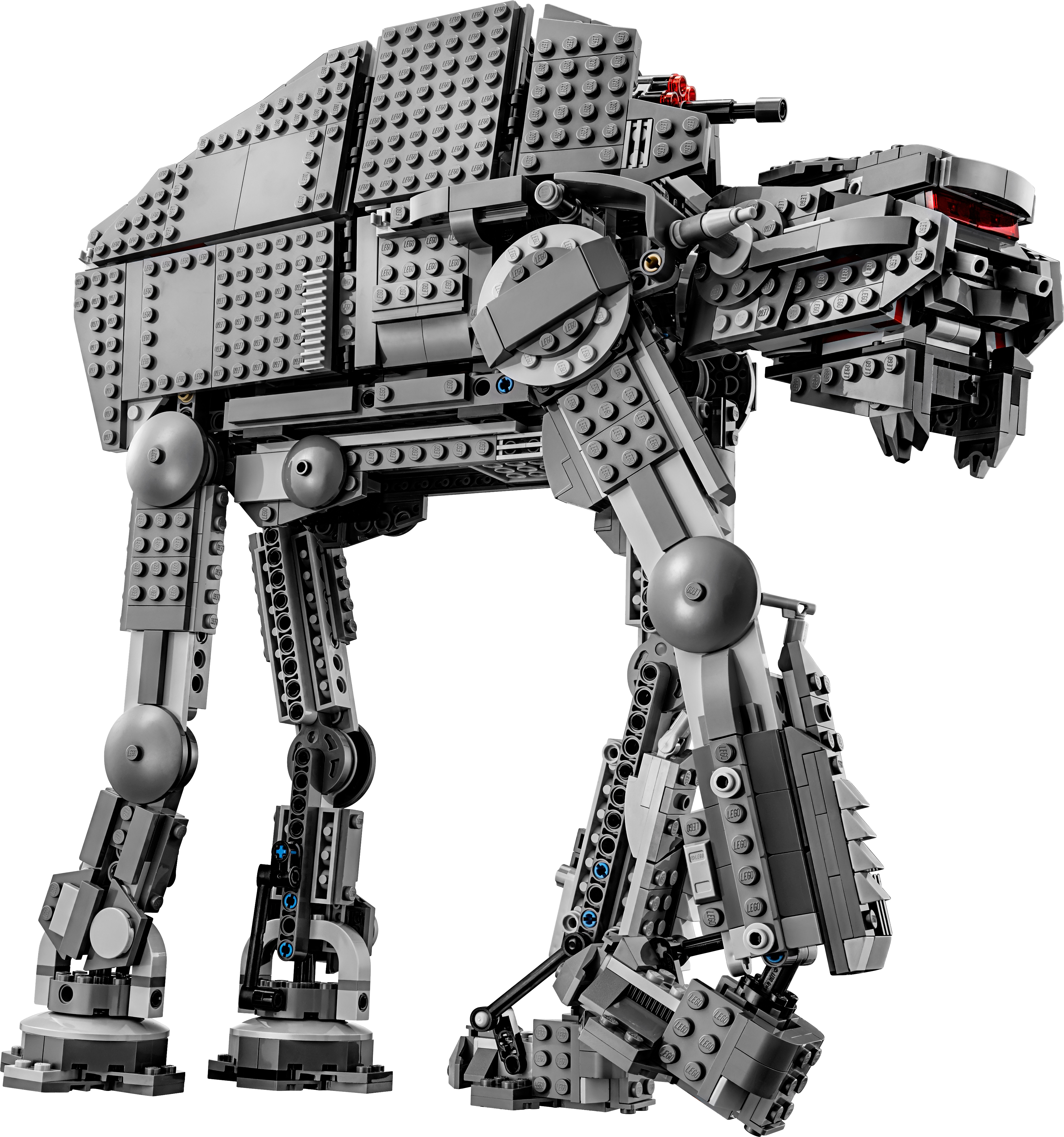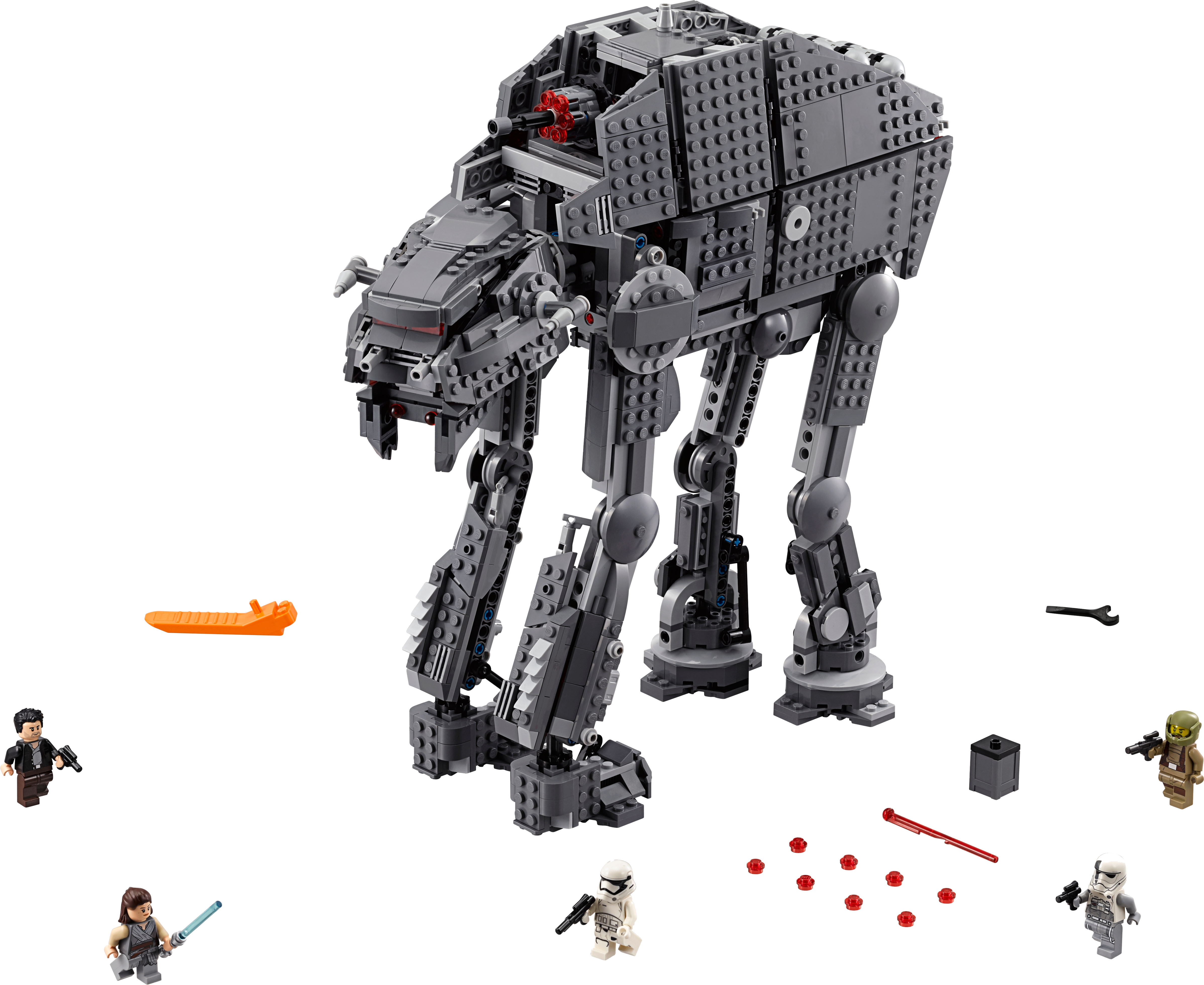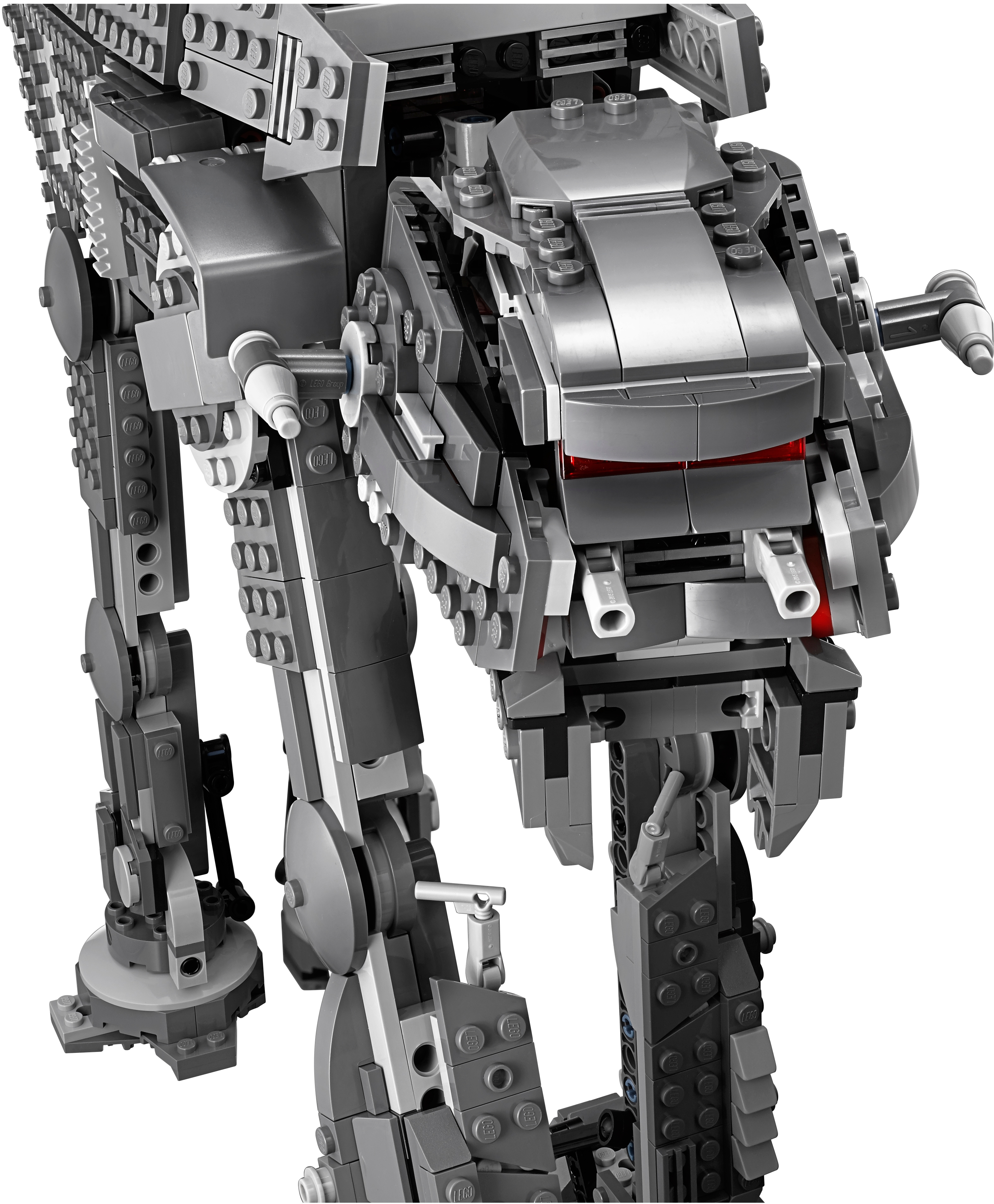 Add a fearsome walker to your LEGO® Star Wars First Order army with the Heavy Assault Walker. This awesome model, based on the walker from the blockbuster Star Wars: Episode VIII movie, features tough armor-plate detailing, posable legs, posable head with opening minifigure cockpit and spring-loaded shooters, an aimable rapid-fire stud shooter on top, and detachable canisters that can be released from the rear of the walker. There’s also a storage compartment at the side with extra stud ammo and an opening hold to the rear with space for a minifigure and extra missile ammo. This amazing set also includes 5 minifigures. Includes 5 minifigures: Captain Poe Dameron, Rey, a Resistance Trooper, First Order Walker Driver and a First Order Stormtrooper. Features posable legs, a posable head with opening minifigure cockpit and spring-loaded shooters, aimable rapid-fire stud shooter on top, detachable canisters at the rear and opening ammo stores at the side. Weapons include Rey's Lightsaber, 2 blasters and a blaster pistol. Turn the handle to aim the top-mounted rapid-fire stud shooter. Measures over 13” (35cm) high, 13” (35cm) long and 4” (12cm) wide.