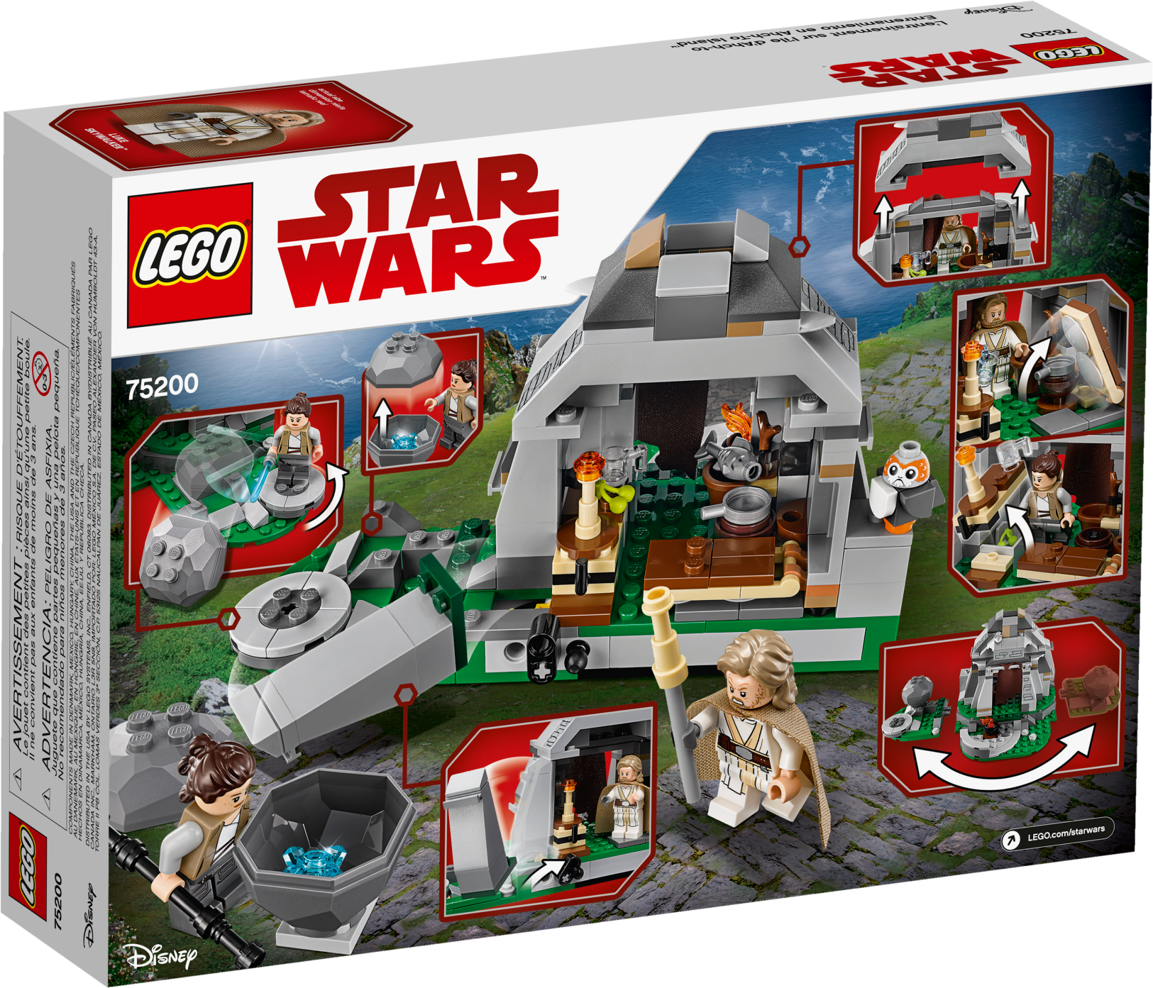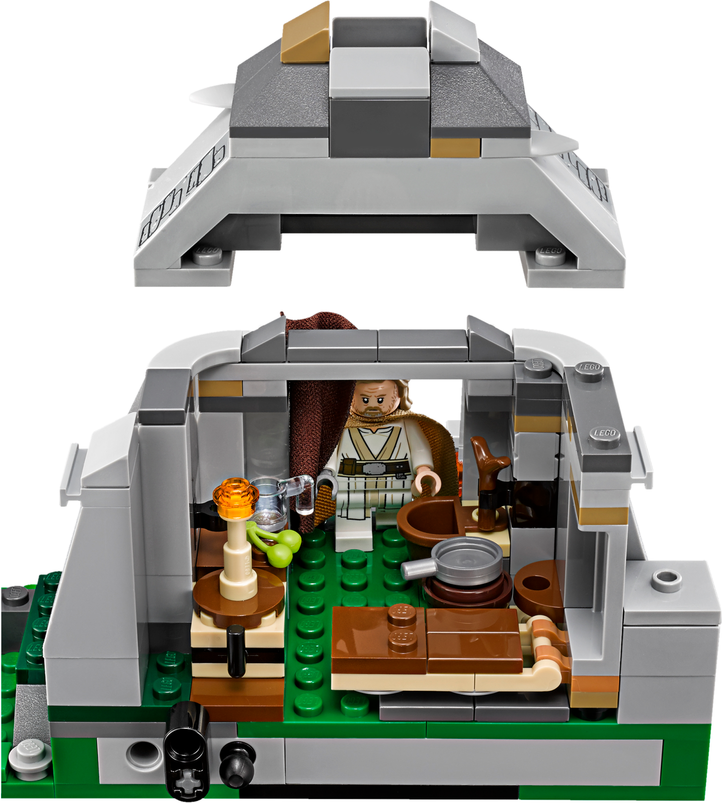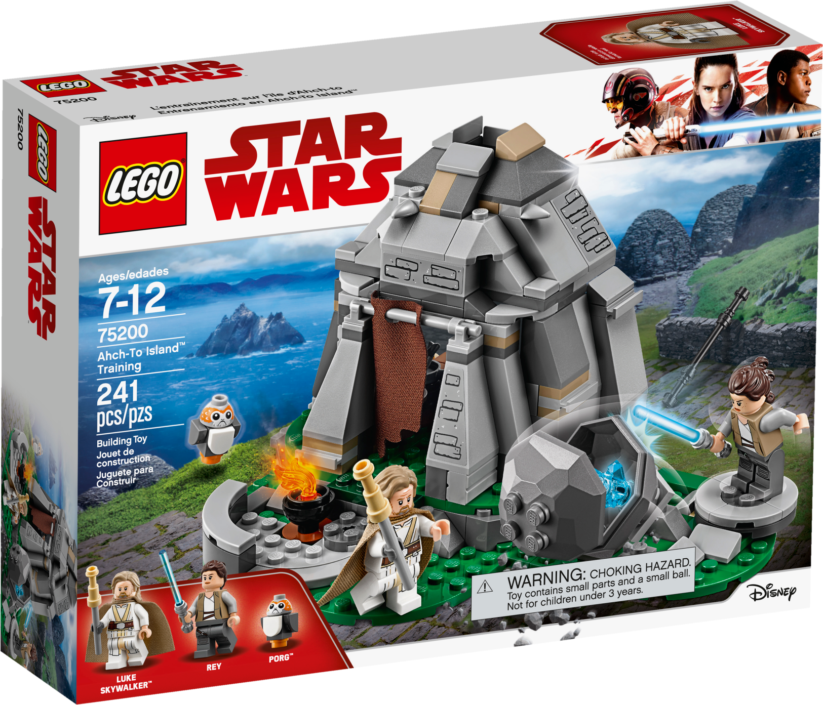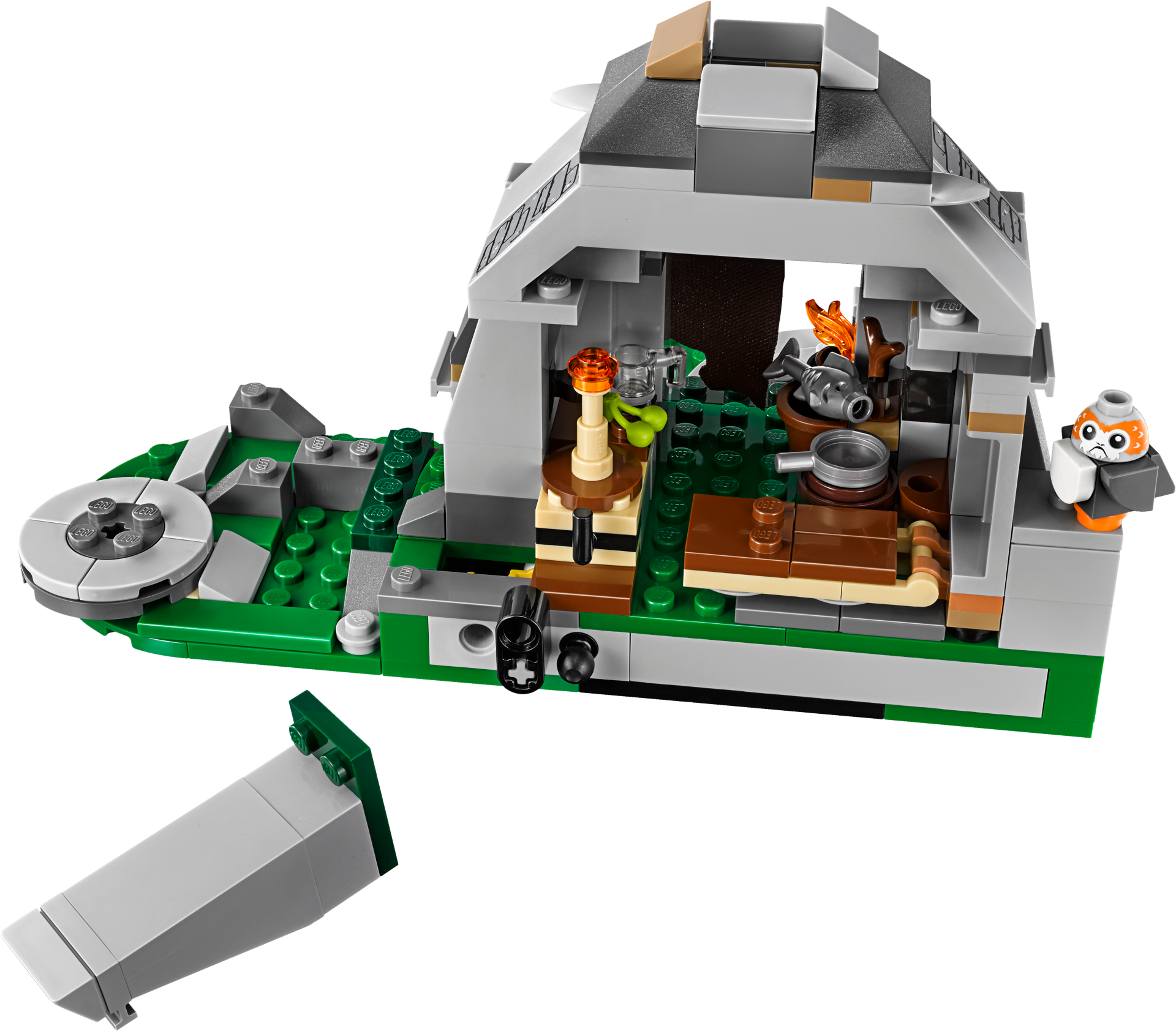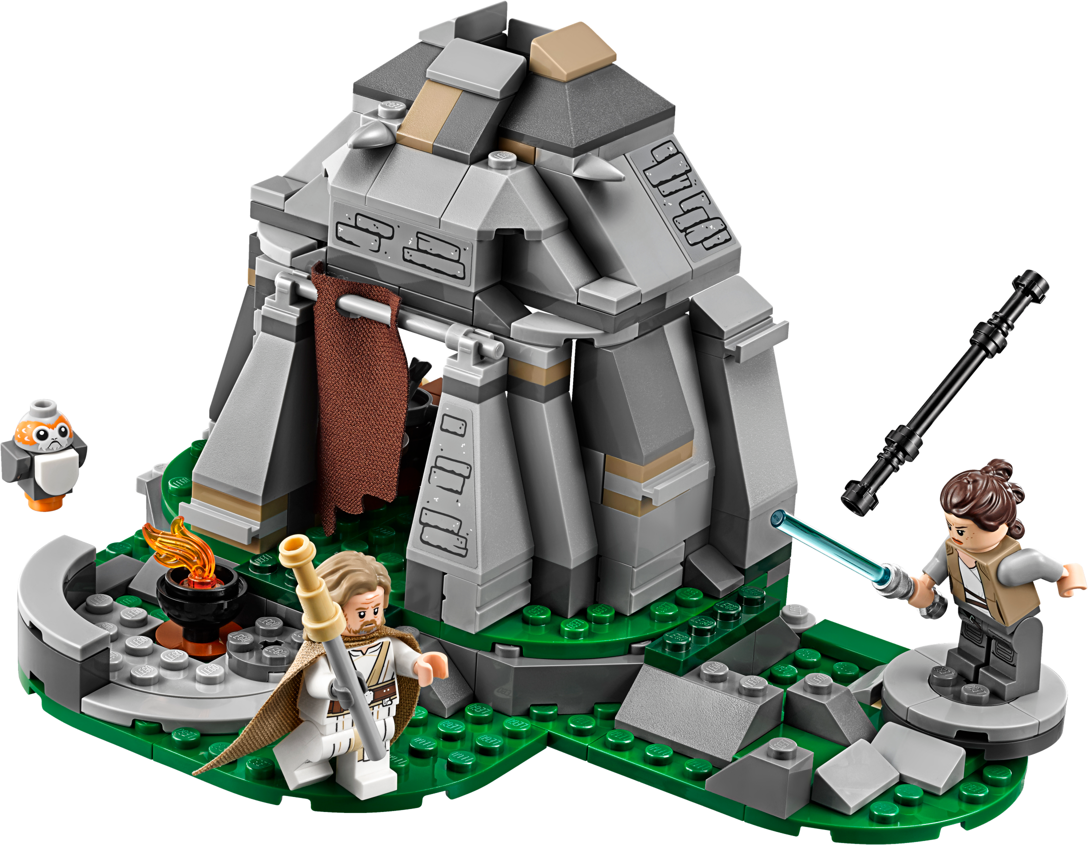 Join Master Luke as he trains Rey at his mountainside dwelling. This LEGO® Star Wars toy features a hut with detailed interior, removable roof section for easy play, small bonfire build and rotating training function with an opening boulder with knockaway feature. With 2 minifigures and a Porg figure, this LEGO brick version of Luke's dwelling from Star Wars: The Last Jedi will immerse any Star Wars fan in a galaxy of Jedi adventures. Includes Luke Skywalker and Rey minifigures, plus a Porg figure. Features a buildable hut with removable roof section for easy access to the interior, which includes a foldaway bed and small kitchen, plus a fabric doorway, perch for the Porg, a small bonfire build and a training function with opening boulder. Weapons include Luke's staff and Rey's Lightsaber and training stick. Kitchenware elements also included. Recreate your own action-packed scenes from the blockbuster Star Wars: The Last Jedi movie. This LEGO® Star Wars toy is suitable for ages 7-12. Hut measures over 4” (11cm) high, 4” (11cm) wide and 6” (17cm) deep.