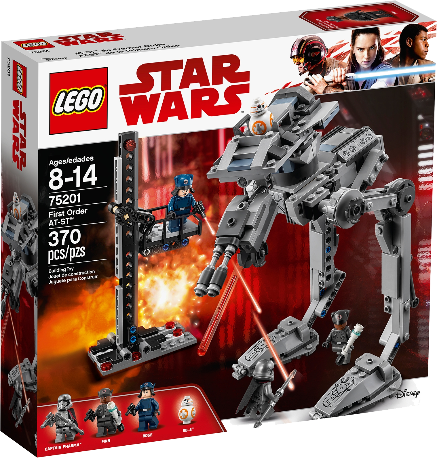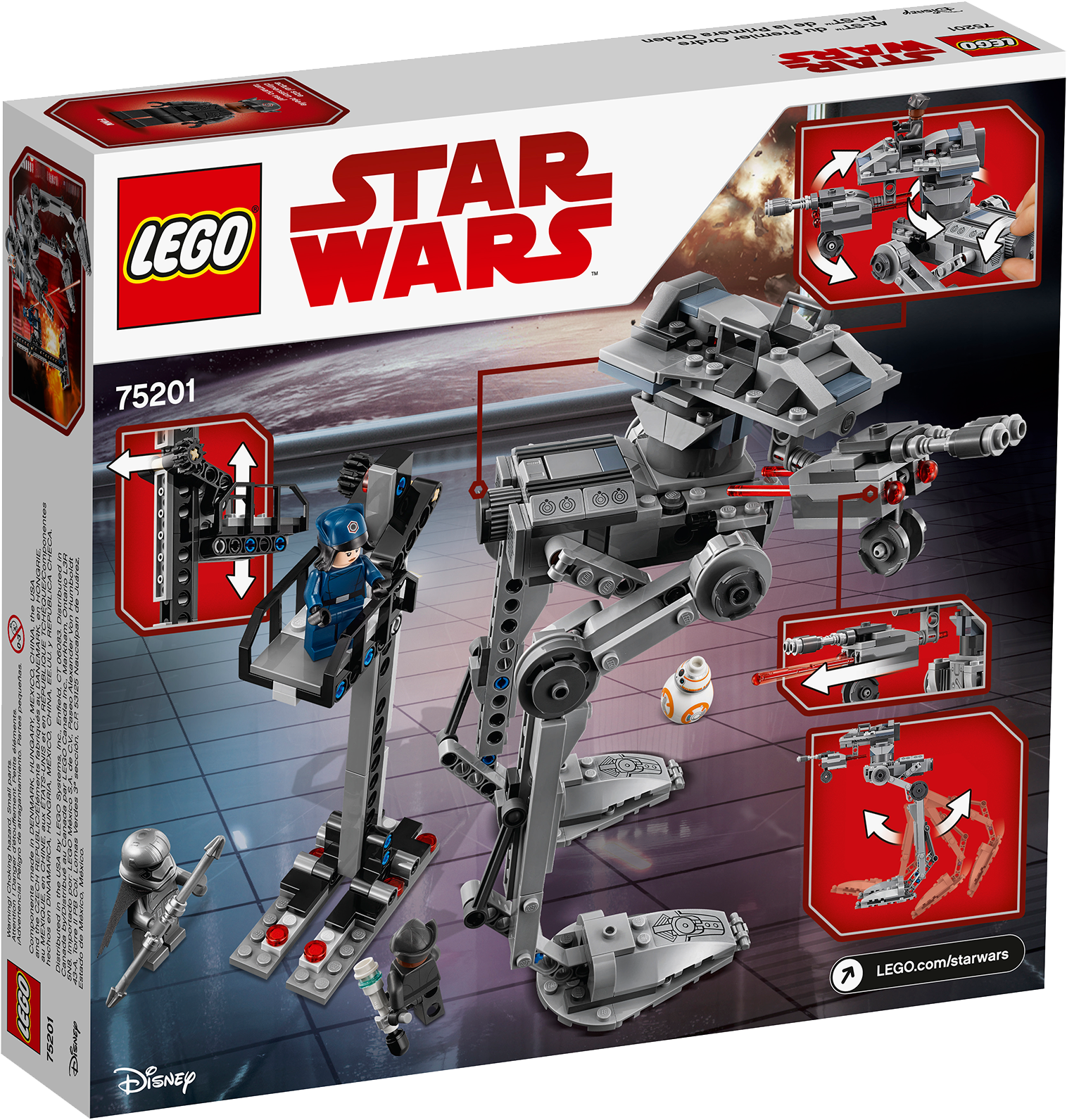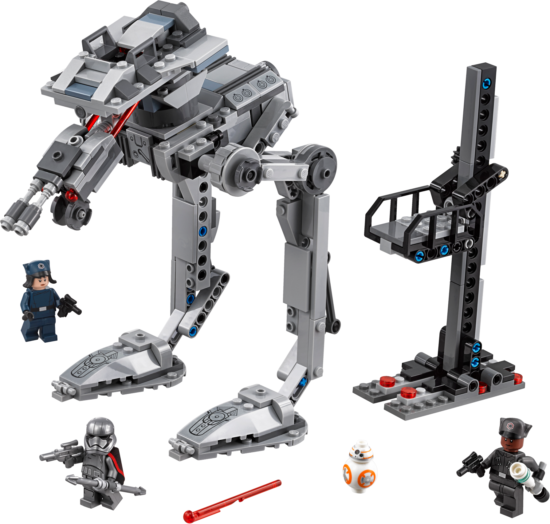 Play out a daring LEGO® Star Wars mission to make off with the partially constructed First Order AT-ST walker. This exciting LEGO Star Wars toy features an under-construction walker with posable legs, a wheel at the back for rotating the turret, and dual spring-loaded shooters for intense action play. The set also includes a buildable hangar lift, so your Resistance fighter can enjoy recreating exciting scenes with Finn, Rose, BB-8 and Captain Phasma from the blockbuster Star Wars: The Last Jedi movie.Includes 3 minifigures: Finn and Rose in First Order disguise and Captain Phasma, plus a BB-8 figure.Features a partially constructed First Order AT-ST with posable legs, rotating turret function and 2 spring-loaded shooters.Also includes a buildable hangar lift with space for a minifigure.Weapons include Finn’s blaster pistol and baton, Rose’s blaster pistol and Captain Phasma’s blaster and spear.Use the lift to help the heroes board the walker.Recreate your own scenes from the blockbuster Star Wars: The Last Jedi movie.This LEGO® Star Wars toy is suitable for ages 8-14.AT-ST measures over 8” (22cm) high, 7” (20cm) long and 5” (13cm) wide.Hangar lift measures over 6” (17cm) high, 1” (4cm) wide and 3” (8cm) deep.