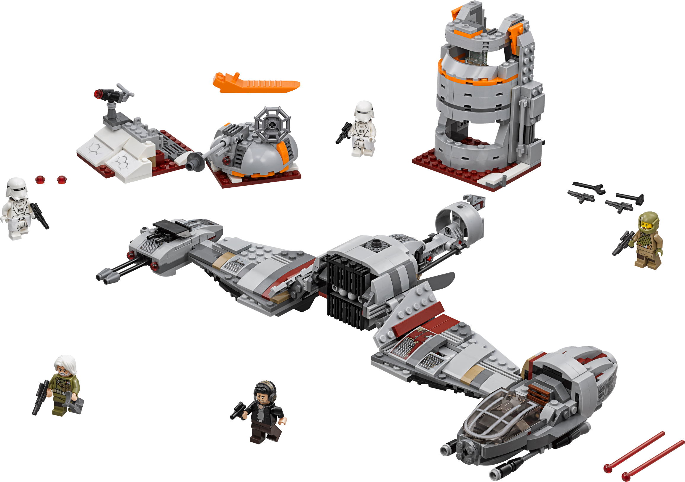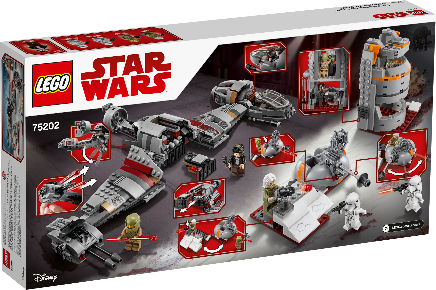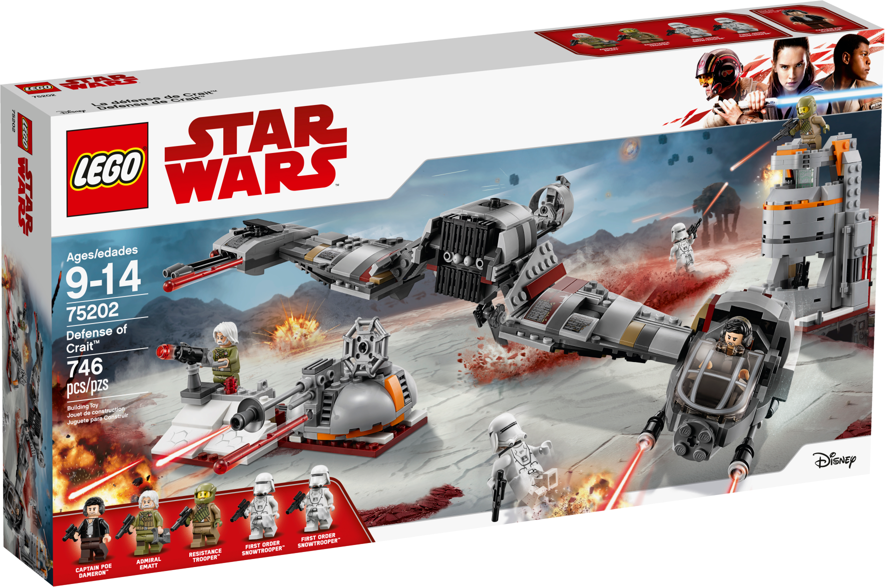 This exciting Defense of Crait LEGO® Star Wars toy has everything a Resistance warrior needs to play out the epic final battle from Star Wars: The Last Jedi. The set features a highly detailed Resistance Ski Speeder with spring-loaded shooters, removable engine section, minifigure cockpit and a lowering stabilizer. There's also a command tower with stud shooter on top and assorted weapons and tool elements, as well as a foldout trench section with rotating laser cannon and spring-loaded shooter, plus a gun emplacement with a stud shooter. Includes 5 minifigures. Includes 5 minifigures: Captain Poe Dameron, Admiral Ematt, a Resistance Trooper and 2 First Order Snowtroopers. Features a Resistance Ski Speeder, command tower and a foldout trench section. Ski Speeder features 2 spring-loaded shooters, removable engine section, minifigure cockpit and a lowering stabilizer. Trench section features a rotating laser cannon with spring-loaded shooter and a gun emplacement with stud shooter. 3-level command tower features storage for the included weapons and tool elements. Weapons include a blaster pistol and 6 blasters. Also includes Admiral Ematt’s electrobinoculars. Recreate your own epic scenes from Star Wars: The Last Jedi. This LEGO® Star Wars toy is suitable for ages 9-14. Ski Speeder measures over 4” (12cm) high, 8” (22cm) long and 14” (38cm) wide. Command tower including trench section measures over 4” (12cm) high, 8” (21cm) wide and 3” (9cm) deep.