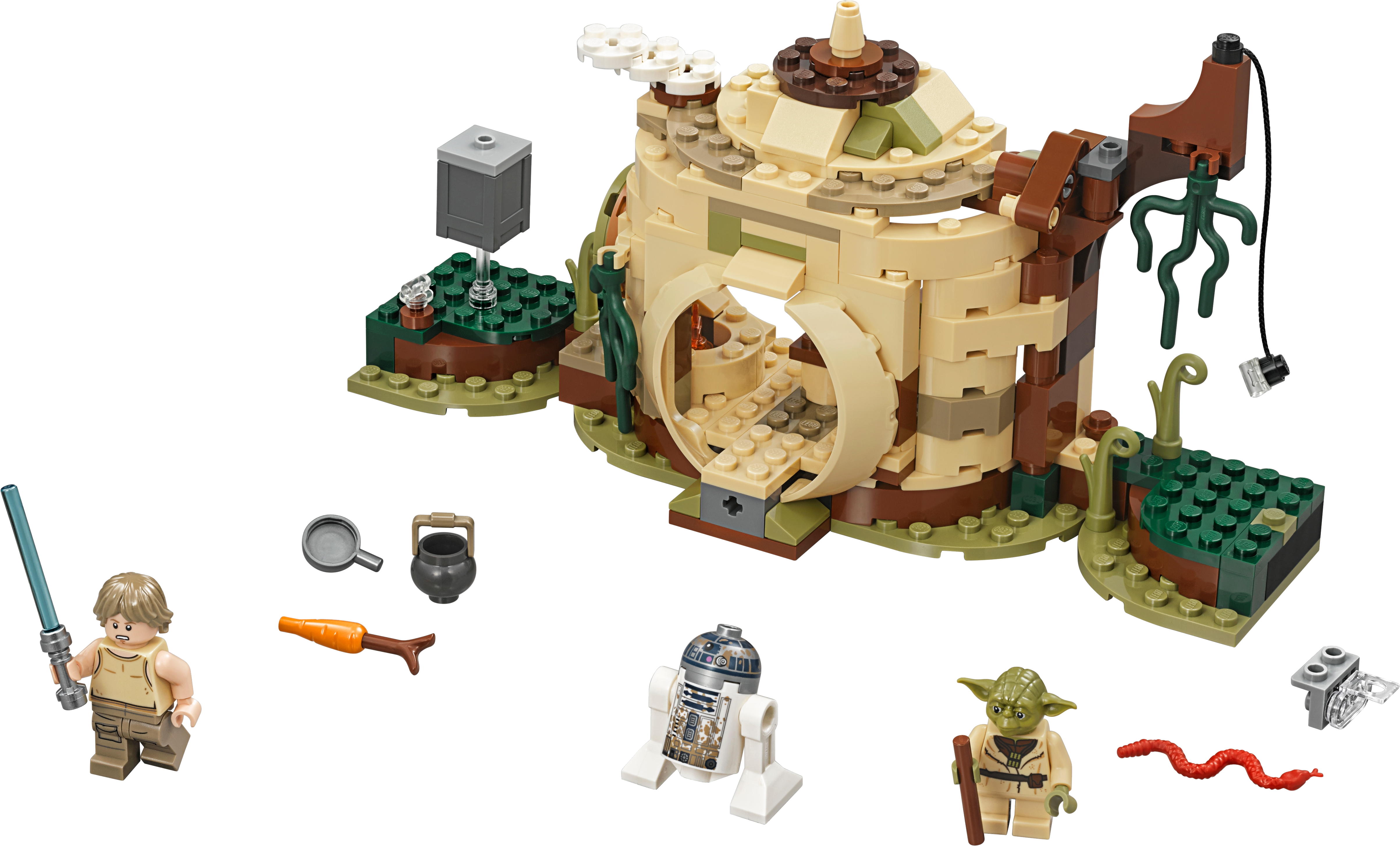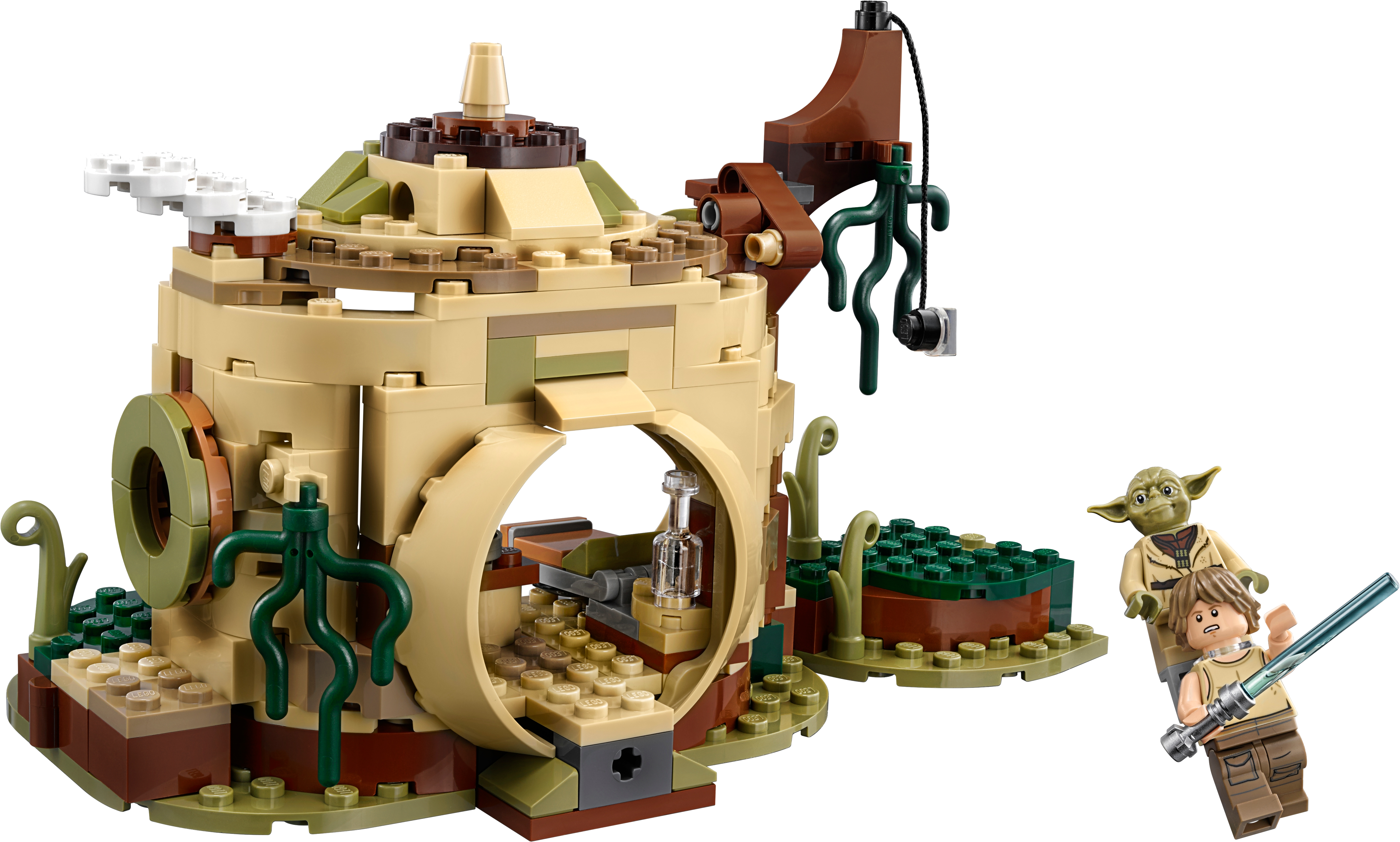 Reenact an iconic LEGO® Star Wars training scene at Yoda’s Hut on Dagobah. This feature-packed set includes Yoda’s swamp home with foldout training sections, from where Luke can balance boxes and stand on one arm to demonstrate his fledgling Jedi powers. There's also a Force jump function that can be attached to the front or back of the model. Jump Luke from the roof and swing from the ‘vine' with Yoda on his back. Inside, there's a folding bed, fireplace, a selection of food and furnishing elements, plus a secret compartment under the floor. There’s even a window at the side so R2-D2 can peer in! This feature-laden Star Wars toy includes 2 minifigures. Includes Yoda and Luke Skywalker minifigures plus an R2-D2 figure. Features foldout training sections, a detachable Force jump function, rooftop ‘vine’ swing function and a detailed interior including folding bed, fireplace, food and furnishing elements, and a secret underfloor compartment. Carry Yoda on Luke's back as he trains. Balance boxes, stand on one arm, pull a cool Force jump and swing from the ‘vine' like a true Jedi! Weapons include Yoda's staff and Luke's Lightsaber. Accessory elements include a carrot, frying pan, bottle and a snake. This LEGO® Star Wars toy is suitable for ages 7-12. Measures over 4” (11cm) high, 9” (25cm) long and 4” (11cm) wide.
