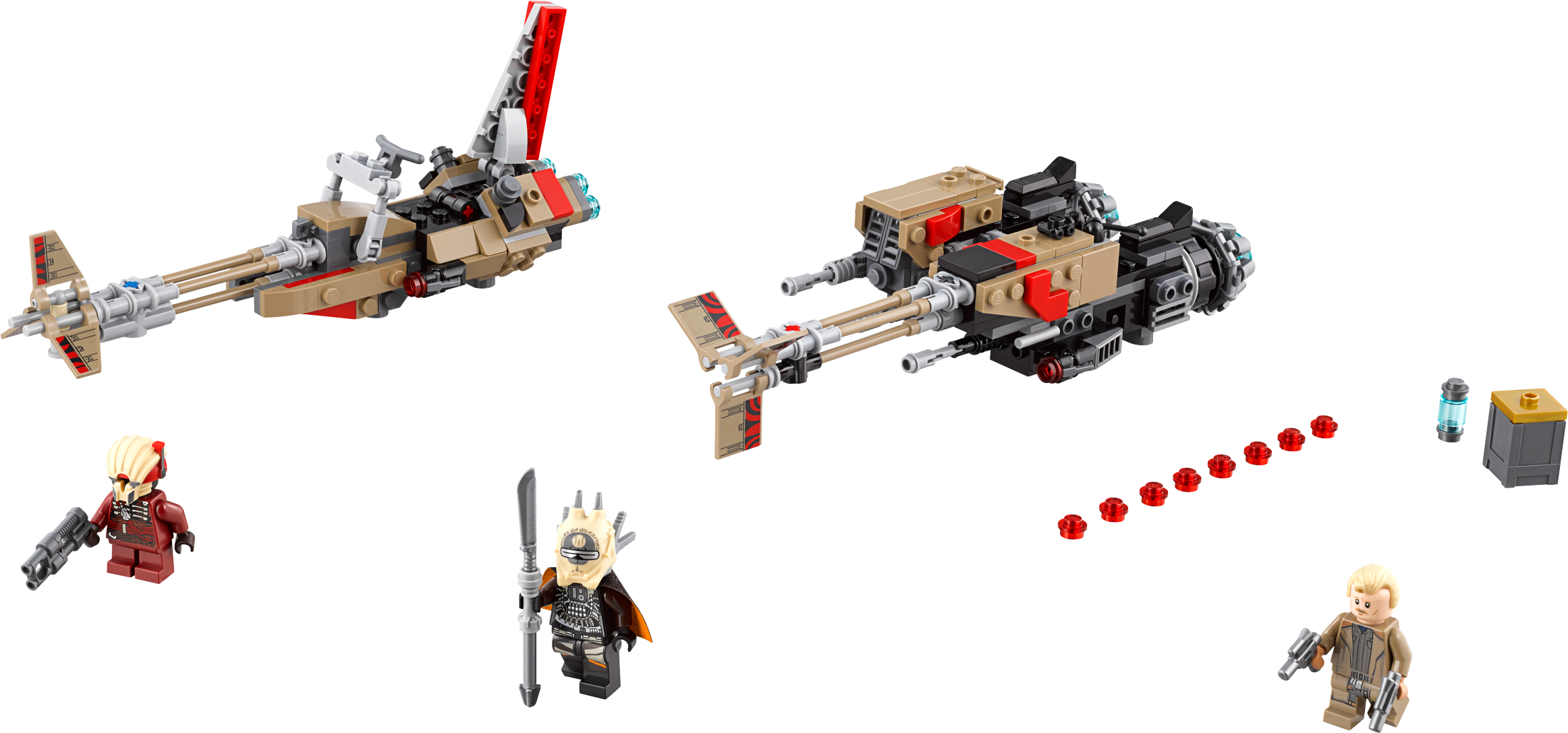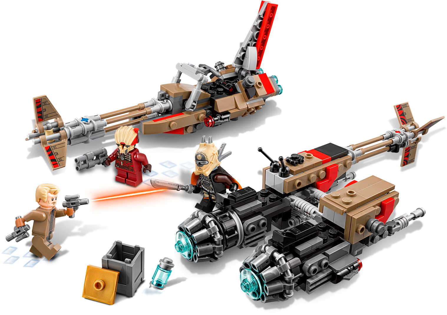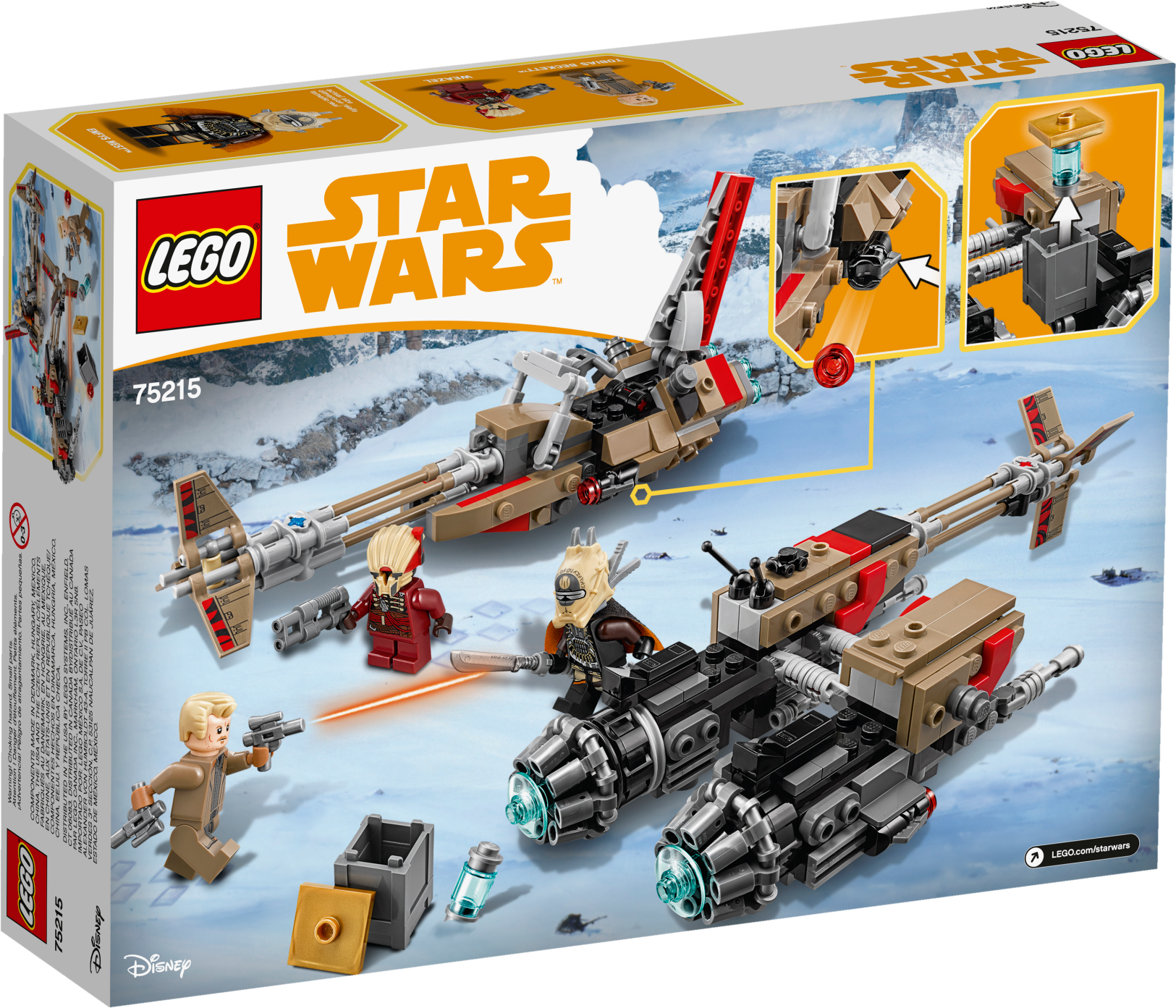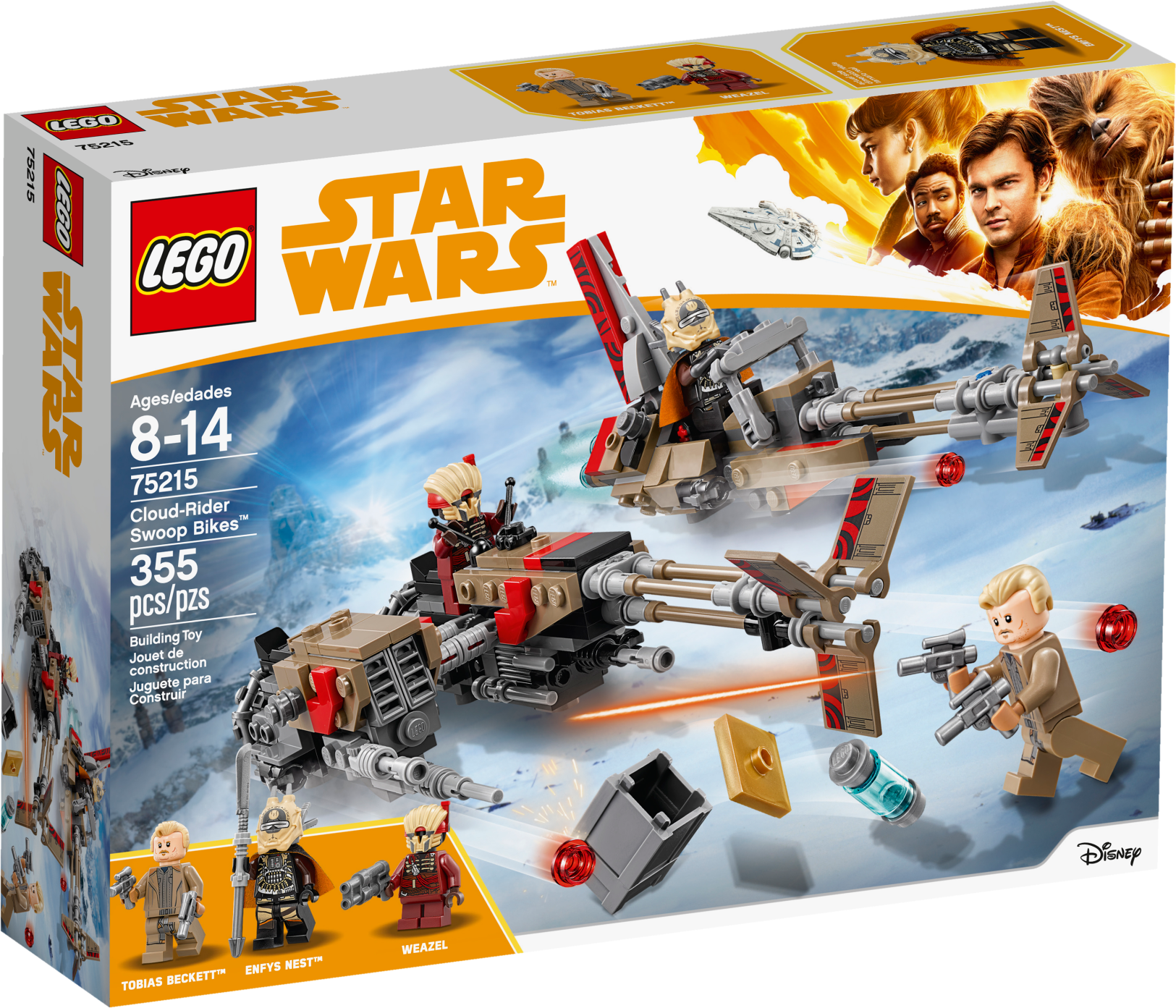 Lead a high-speed chase for the coaxium with this LEGO® Star Wars 75215 Cloud-Rider Swoop Bikes set. Featuring LEGO brick versions of Enfys Nest and Weazel’s speeders from Solo: A Star Wars Story, each is equipped with an open minifigure cockpit and 2 stud shooters that are perfect for playing out action-packed LEGO minifigure battles! Includes 3 minifigures: Tobias Beckett, Enfys Nest and Weazel. Features 2 sleek swoop bike speeders with open minifigure cockpits and stud shooters. One also has a sidecar and space to store the included box of coaxium. Weapons include Beckett's 2 blaster pistols, Enfys Nest's weapon and Weazel's blaster. Recreate amazing adventure scenes from Solo: A Star Wars Story. Combine with the 75217 Imperial Conveyex Transport and 75219 Imperial AT-Hauler for the ultimate high-speed train heist! Swoop bike with sidecar measures over 1” (5cm) high, 8” (21cm) long and 3” (9cm) wide. Swoop bike without sidecar measures over 3” (9cm) high, 7” (19cm) long and 1” (5cm) wide.