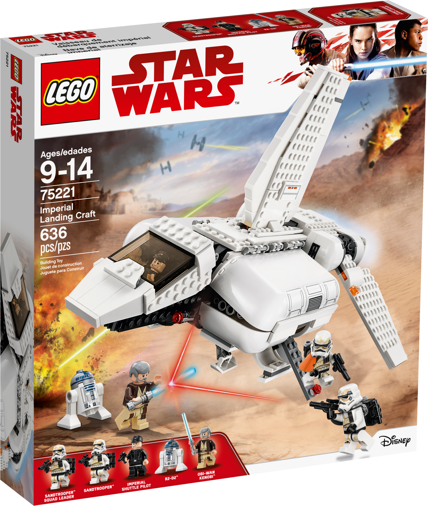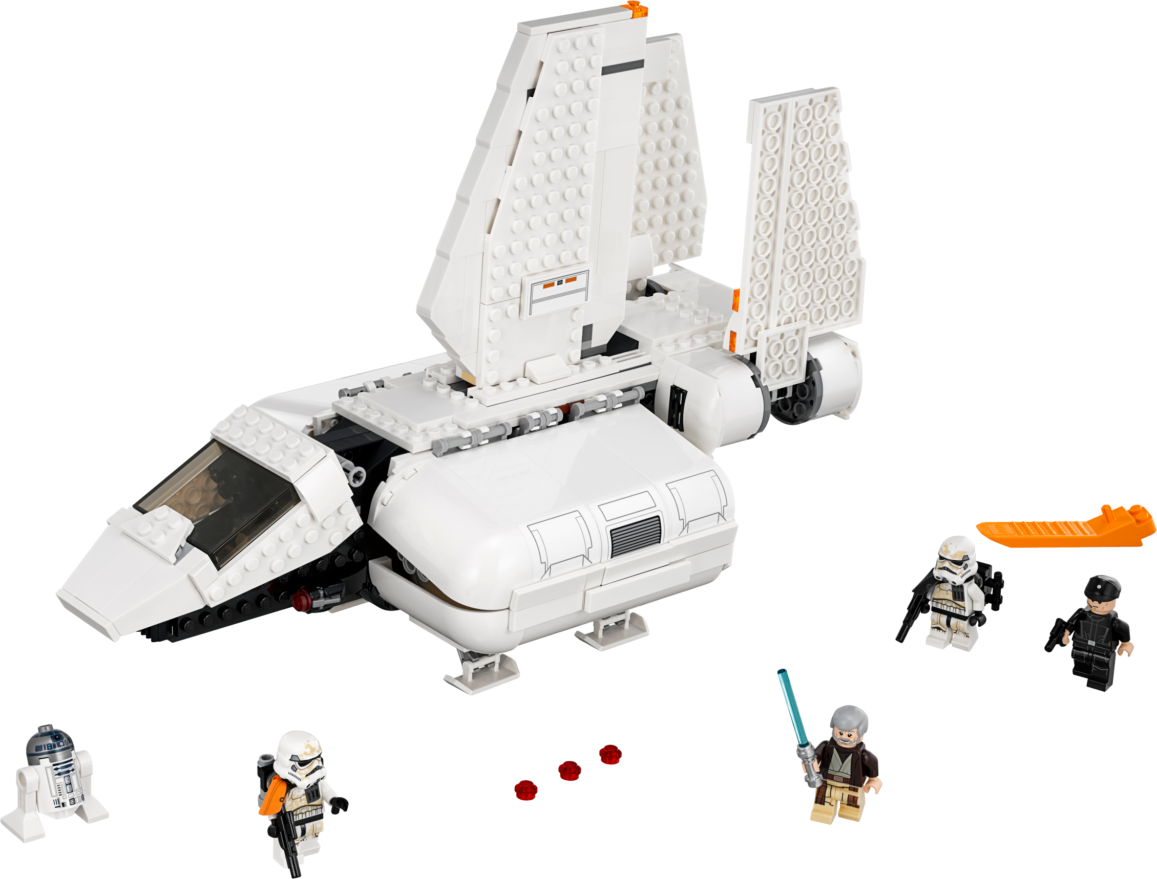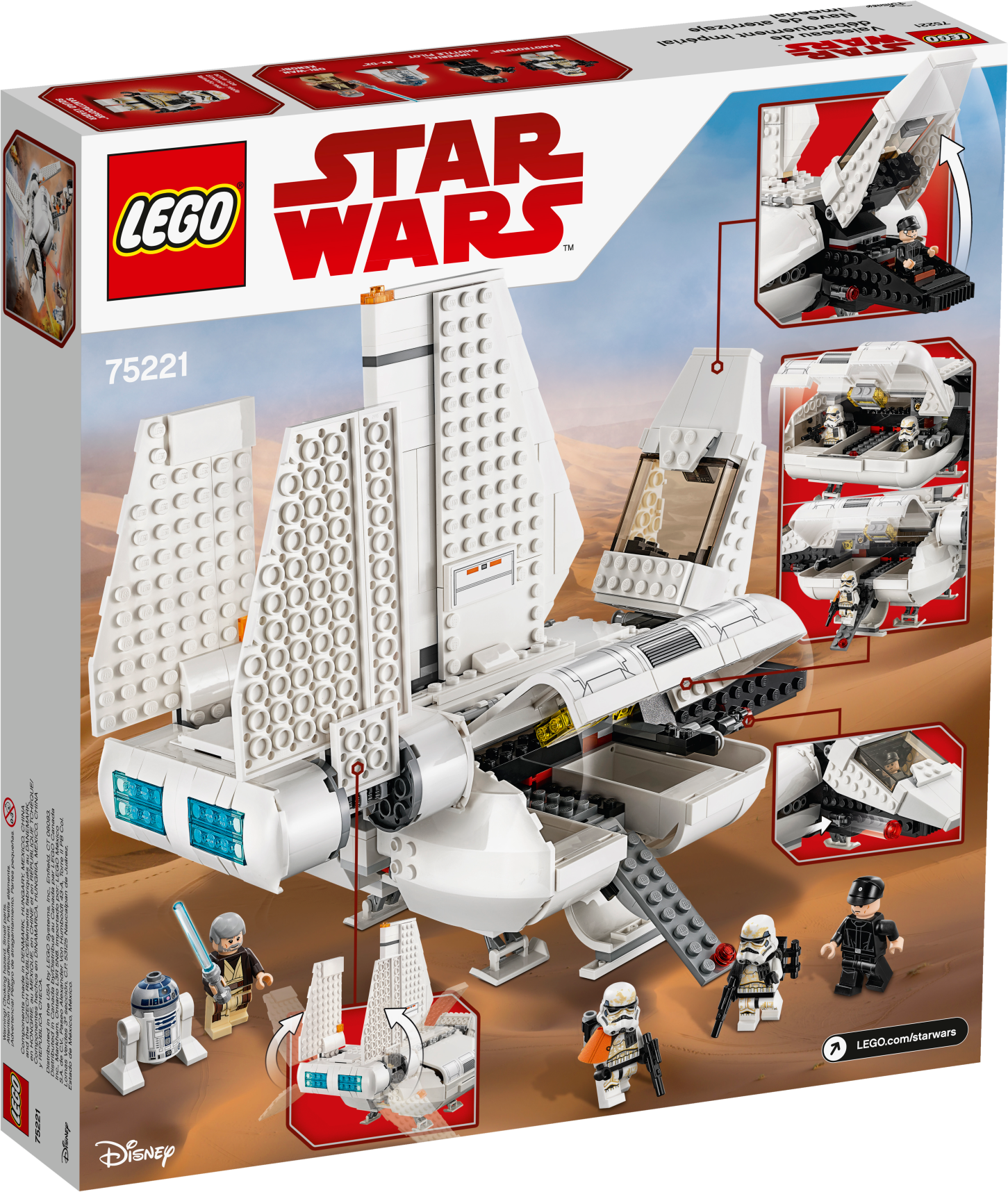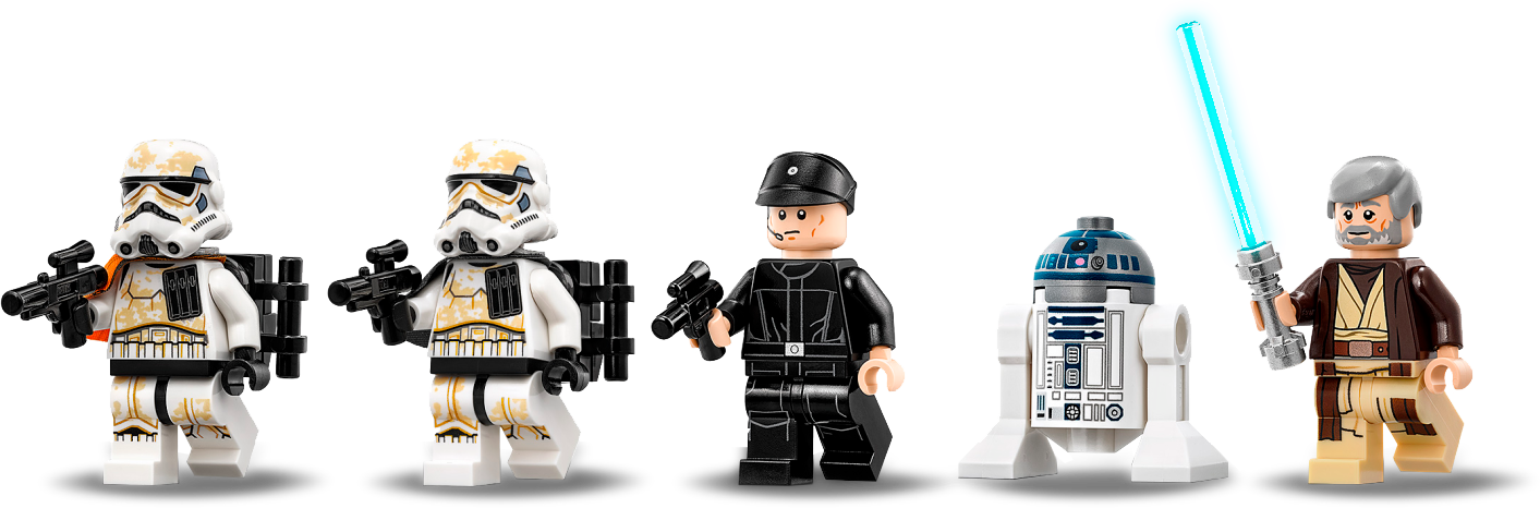Play out galactic adventures with the LEGO® Star Wars 75221 Imperial Landing Craft. As seen in Star Wars: A New Hope, this fun model has folding wings for flight/landing modes, stud shooters, landing gear, an opening minifigure cockpit and opening top panels with a slide-out access ramp. And with lots of space inside to sit or stand Imperial troops, any Imperial leader will have endless fun shuttling them wherever they're needed in the galaxy! This set includes 4 LEGO minifigures and an R2-D2 droid. Includes 4 minifigures: Obi-Wan Kenobi, an Imperial Shuttle Pilot, Sandtrooper and a Sandtrooper Squad Leader, plus R2-D2! Imperial Landing Craft features folding wings for flight/landing modes, 2 stud shooters, landing gear, an opening minifigure cockpit and opening top panels with a slide-out access ramp, plus lots of space inside to sit or stand your minifigures. Weapons include a blaster pistol, 2 blasters and Obi-Wan's Lightsaber. Load up the troopers and fly them across the galaxy, wherever they’re needed! Combines with the 75205 Mos Eisley Cantina set for action-packed Tatooine adventures. Measures over 9” (23cm) high, 12” (32cm) long and 6” (17cm) wide.