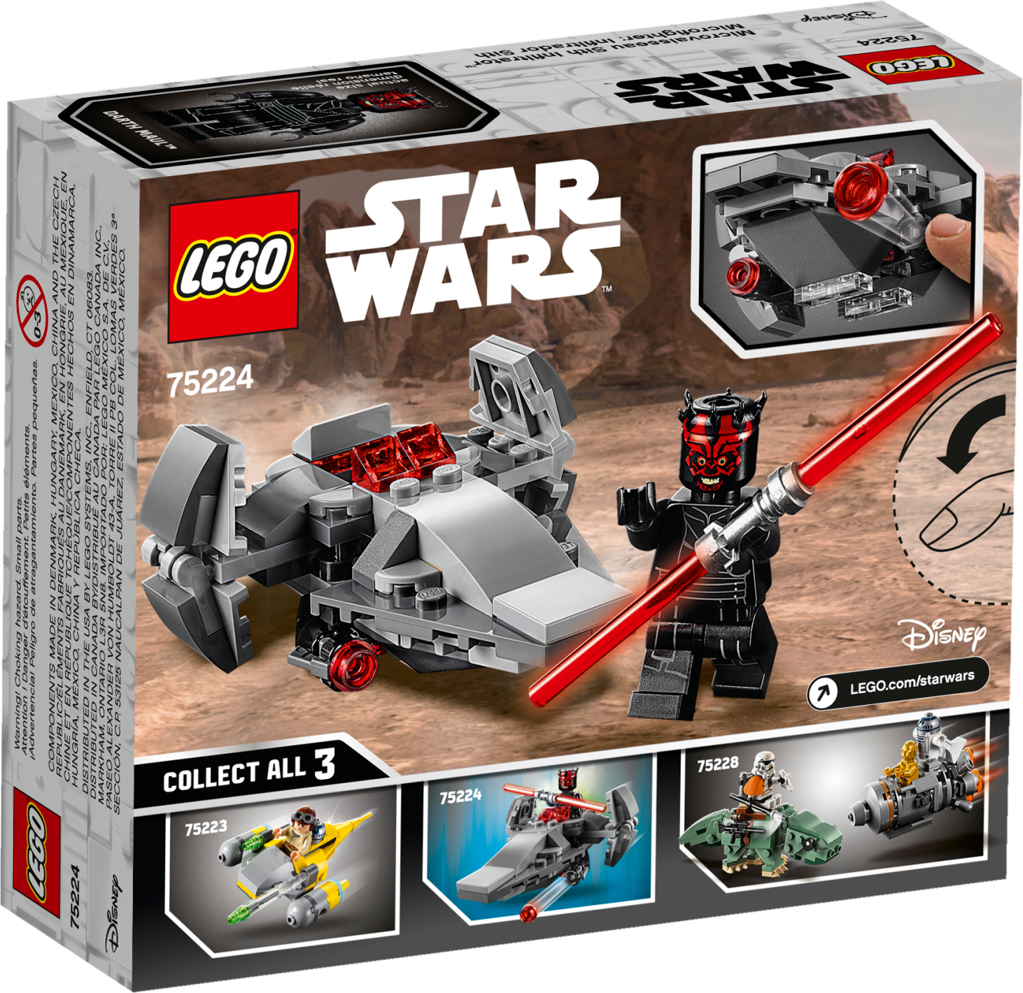 Give the gift of endless fun with the LEGO® Star Wars™ 75224 Sith Infiltrator Microfighter. This Series 6 building toy version of Darth Maul’s spacecraft features stud shooters and space for the Sith Lord minifigure on top. The set also comes with a double-bladed Lightsaber for even more LEGO Star Wars creative play. Includes a Darth Maul LEGO® Star Wars™ minifigure. Building toy features 2 stud shooters and space for Darth Maul on top. Also includes Darth Maul’s double-bladed Lightsaber. Battle the 75223 Naboo Starfighter Microfighter for control of the LEGO® Star Wars™ galaxy! Play out exciting scenes from the Star Wars™ blockbuster movies or make up your own! LEGO® Star Wars™ ship measures over 1” (4cm) high, 3” (9cm) long and 2” (7cm) wide.
