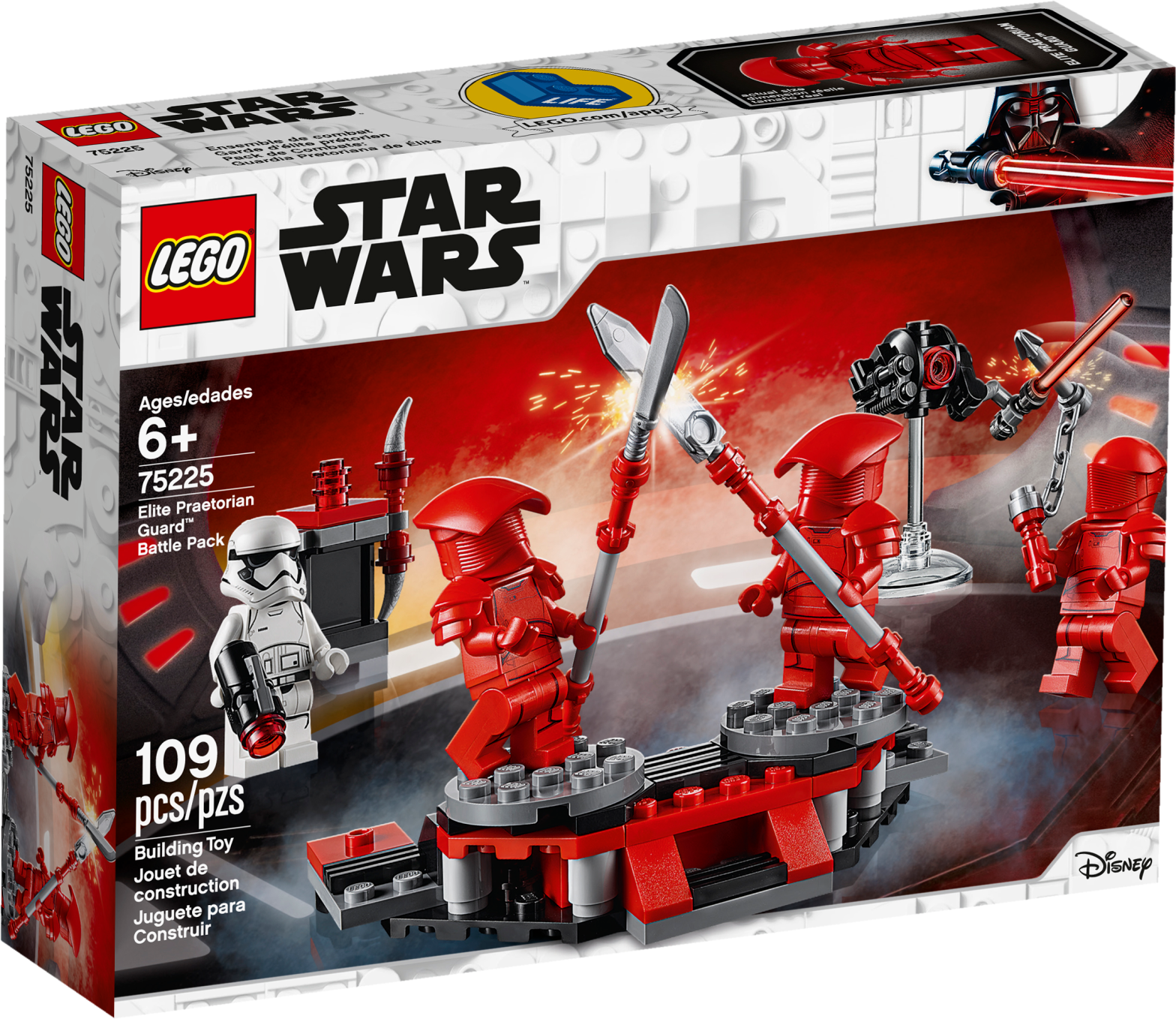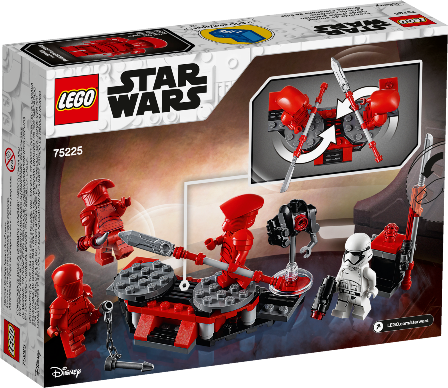 Let any LEGO® builder play out fun-filled training drills with the LEGO Star Wars™ 75225 Elite Praetorian Guard Battle Pack. This starter pack set features a training platform with spinning turntables for 2 minifigures to stand on to replicate intense training duels. There's also a weapon rack with detachable weapons, a training droid for even more creative play, 3 Elite Praetorian Guards and a First Order Stormtrooper. Includes 4 LEGO® Star Wars™ minifigures: 3 Elite Praetorian Guards and a First Order Stormtrooper, plus a training droid LEGO figure. LEGO® Star Wars™ building toy features a training platform with 2 spinning turntables, plus a weapon rack. Weapons include a Vibro-axe, Electro-staff, Twin Vibro Blades and a stud blaster for the Stormtrooper. Spin the turntables and engage in exciting combat training! Two of the guards also feature a new-for-January-2019 helmet. Train for amazing action scenes from Star Wars™: The Last Jedi! Training platform measures over 4” (11cm) wide and 2” (7cm) deep.