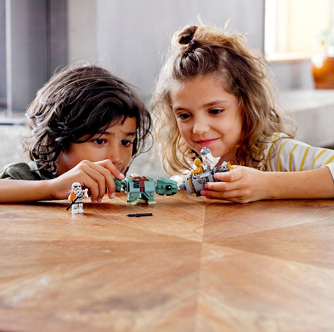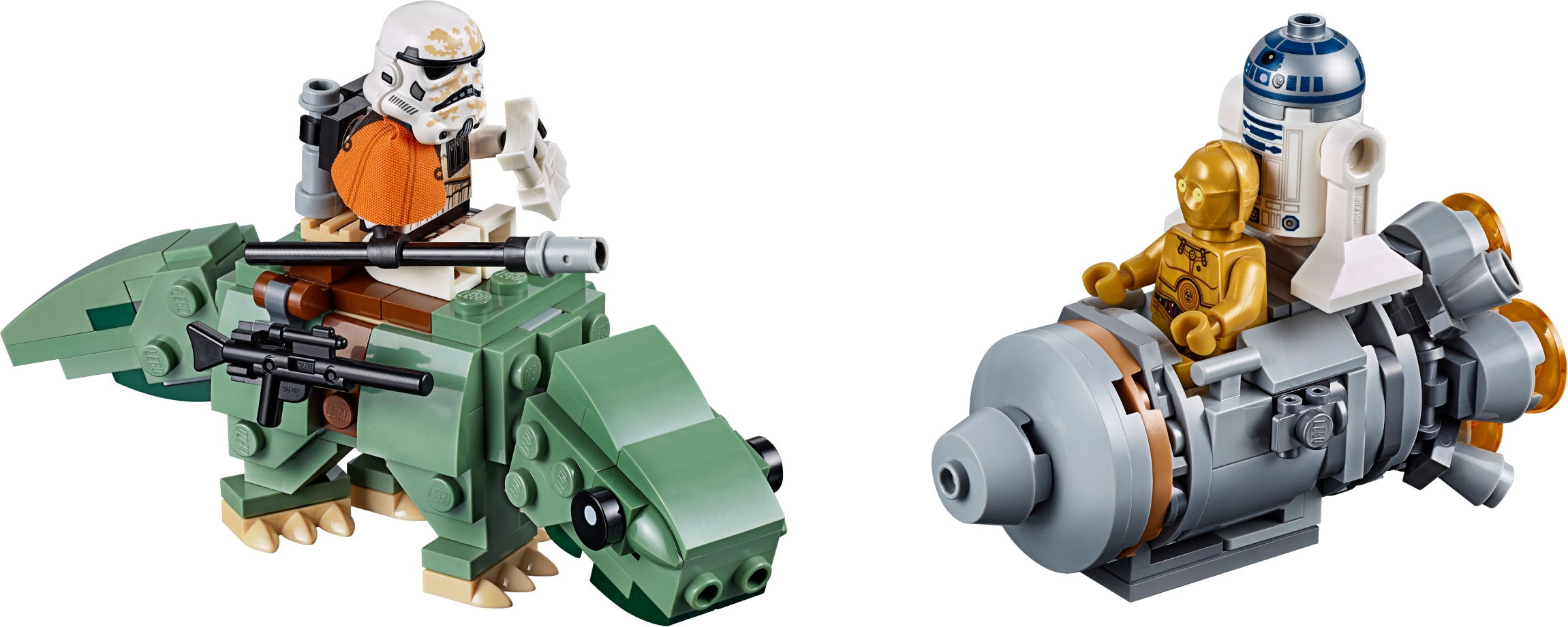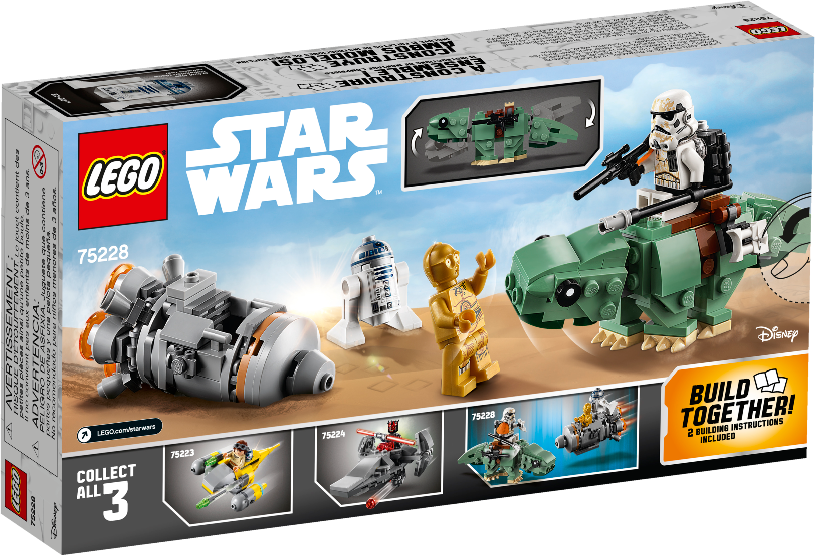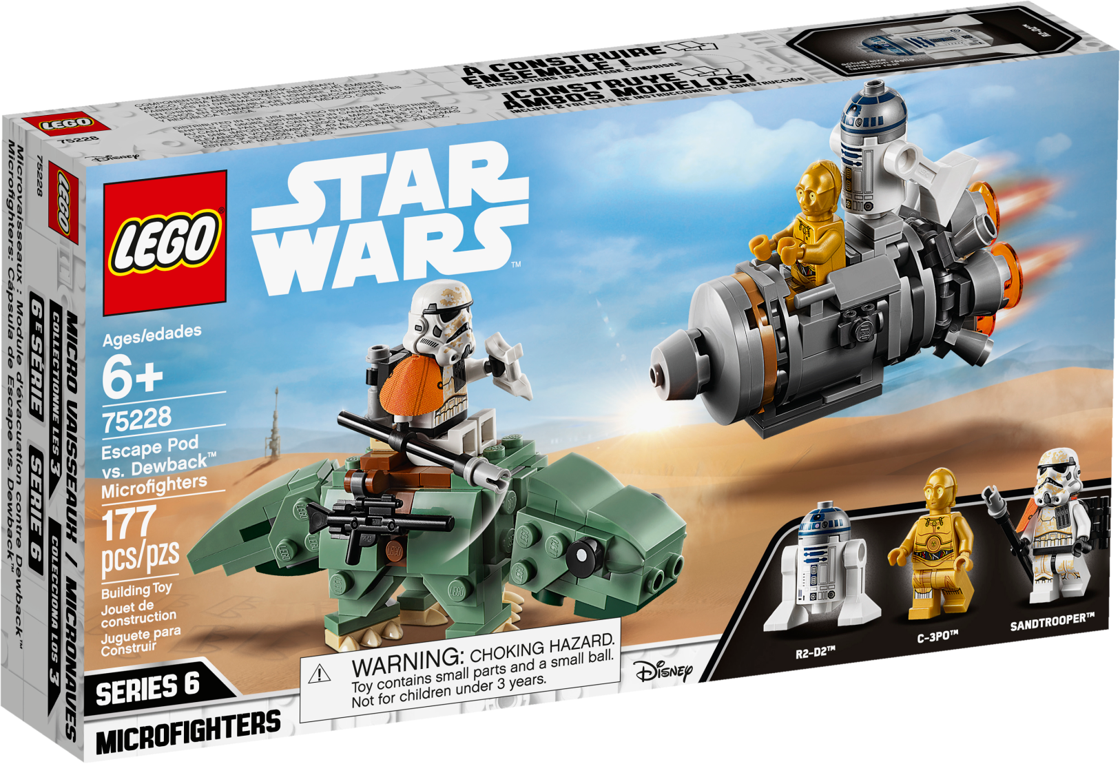 Play out epic LEGO® brick adventures with the LEGO Star Wars™ 75228 Escape Pod vs. Dewback Microfighters dual pack building toy. This set features an escape pod with big engine detailing and space for the C-3PO and R2-D2 building toy LEGO figures, while the buildable Dewback creature has a posable head and tail, clips for attaching weapons and space on top to sit the Sandtrooper. And with separate building instructions for each model, Star Wars fans will love sharing the building experience with their friends and family. Includes 2 LEGO® Star Wars™ minifigures: C-3PO and a Sandtrooper, plus an R2-D2 Star Wars droid figure. Features a Dewback creature with posable head and tail, weapon attachment points and space to sit the Sandtrooper on top. Also features an escape pod with big engine detailing and space for C-3PO and R2-D2. Accessory elements include the Sandtrooper's electrobinoculars, shock lance and blaster rifle. Share the joy of building with friends and family using the separate building instructions for each building toy. Role-play exciting Tatooine planet scenes from Star Wars™: A New Hope. Combines with the 75223 Naboo Starfighter Microfighter and 75224 Sith Infiltrator Microfighter LEGO® Star Wars™ construction toys for even more creative play. Dewback measures over 1” (4cm) high, 4” (12cm) long and 1” (5cm) wide. Escape pod measures over 1” (4cm) high, 3” (8cm) long and 1” (4cm) wide.
