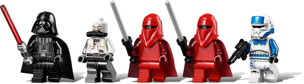 Includes 5 minifigures: Darth Vader, Darth Vader (bacta tank), 2 Royal Guards and an Imperial Transport Pilot.