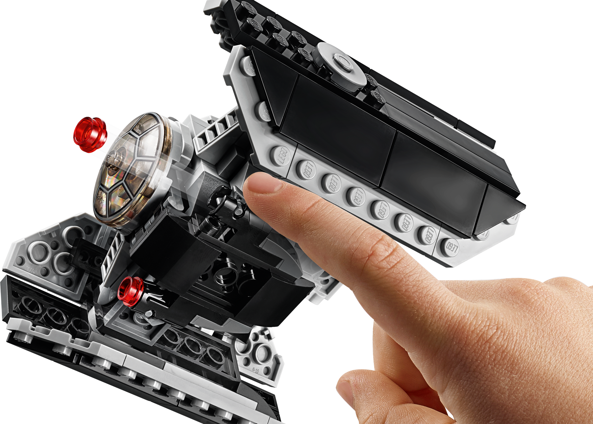 TIE Advanced Fighter features 2 stud shooters and an opening minifigure cockpit.