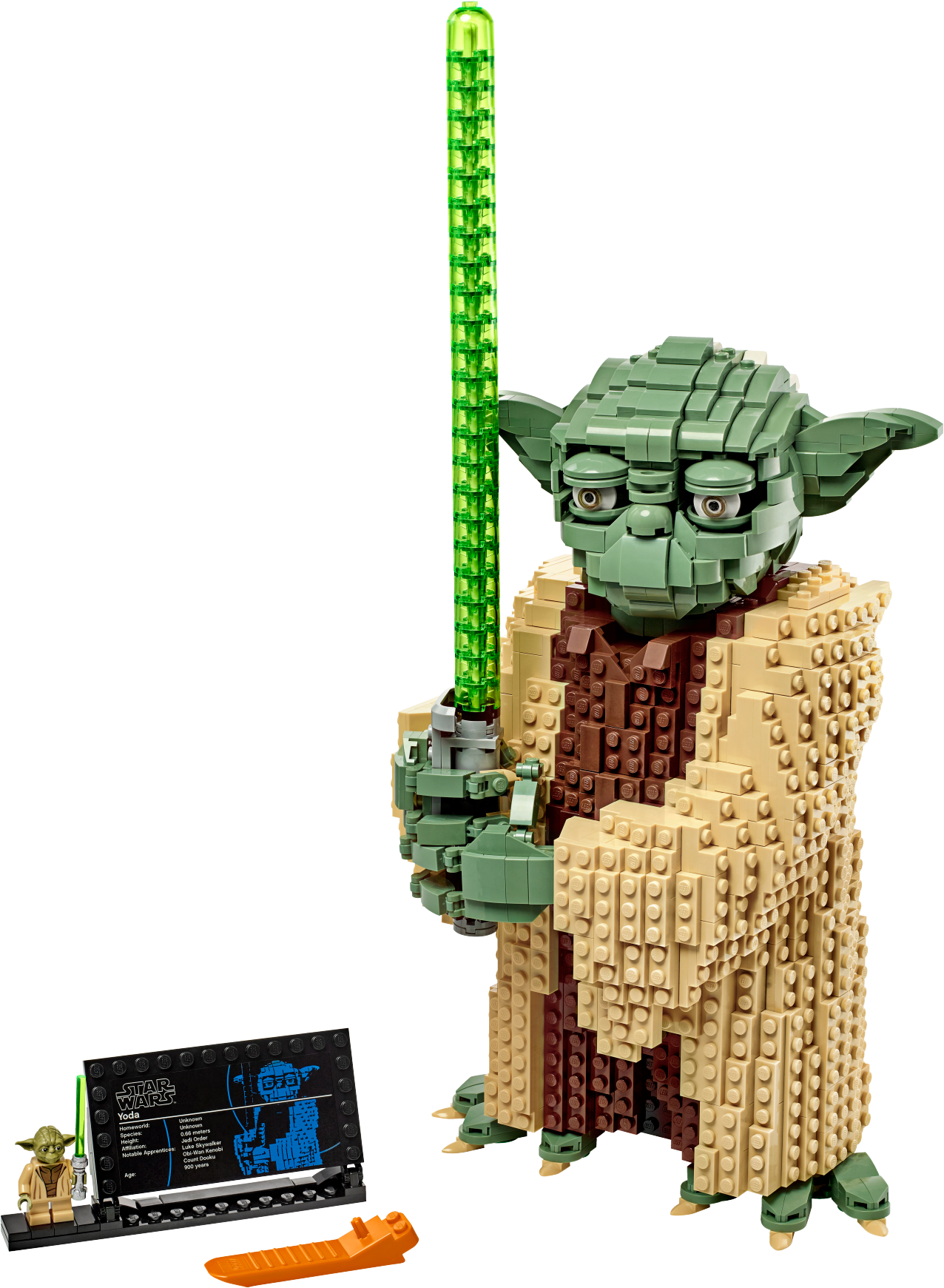 Add to any fan’s collection with two Yoda LEGO® Star Wars™ characters in one set! This intricately detailed 75255 display model of powerful Jedi Master Yoda is based on the character from Star Wars: Attack of the Clones, and includes a posable head and eyebrows, moving fingers and toes, and Yoda's signature green Lightsaber. This characterful LEGO Star Wars figure also includes a fact plaque with details about Yoda and a stand to mount the included Yoda minifigure with Lightsaber, making for an ideal Star Wars collectible for any fan. Features intricate detailing, posable head and eyebrows, movable fingers and toes, Yoda’s green Lightsaber, as well as a fact plaque with details about the Jedi master and a stand for the included Yoda minifigure and Lightsaber. This Star Wars: Attack of the Clones collectible makes a great birthday gift, Christmas present or just a Star Wars™ present for any occasion. Collect two Yoda LEGO® Star Wars™ characters in one set! LEGO® Star Wars™ Yoda figure with Lightsaber stands over 16” (41cm) tall.