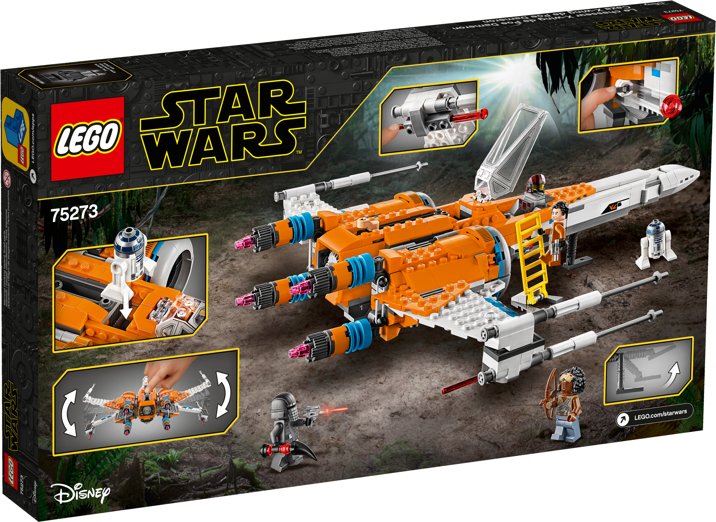 Let your youngster feel like Resistance hero Poe Dameron with this X-wing fighter (75273)! Fans will love the sleek new-for-January-2020 design, just like the X-wing in Star Wars: The Rise of Skywalker. It’s got loads of play-inspiring features – adjustable wings for cruise and attack modes, shooting functions, retractable landing gear and more!Resistance vs. First Order battles!This cool starfighter comes with 3 minifigures – Poe Dameron, Knight of Ren, Jannah – with weapons, plus R2-D2 to inspire Resistance vs. First Order role-play. An epic gift idea for any young Star Wars™ fan, this construction playset is great for solo or group play and add the 75272 Sith TIE Fighter for even more action.Star Wars action in LEGO style!The LEGO Group has been creating brick-built versions of iconic Star Wars starfighters, vehicles, locations and characters since 1999. It's become a hugely successful theme with a fantastic variety of sets to thrill fans of all ages – so join in the fun! Kids can role-play as Resistance hero Poe Dameron and fly into battle with this new-for-January-2020 LEGO® Star Wars™ version of the classic X-wing starfighter (75273) from Star Wars: The Rise of Skywalker. Loads of play-inspiring features including an opening minifigure cockpit, space for R2-D2, adjustable wings for cruise and attack mode, stud and spring-loaded shooters and retractable landing gear. Includes an R2-D2 LEGO® droid plus 3 Star Wars™ character toy minifigures – Poe Dameron, Knight of Ren and Jannah – with new-for-January-2020 features, plus blaster pistols, a bowcaster and other weapons for battles. This 761-piece LEGO® Star Wars™ set makes a great gift idea and offers a fun, rewarding building challenge for boys and girls aged 9+. Add the Sith TIE Fighter (75273) for epic First Order vs. Resistance battles. The X-wing fighter building toy measures over 3” (8cm) high, 14” (37cm) long and 12” (32cm) wide so it makes an eye-catching centerpiece to show off to friends when it’s not being flown on Resistance missions! This collectible X-wing LEGO® set is powered by creative kids’ free-thinking – no batteries required – so the action adventures never stop! Is your youngster new to LEGO® sets? Don’t worry. This X-wing building toy comes with easy-to-follow, printed instructions so they can open the box, start building straightaway… and feel Jedi-level awesome! LEGO® Star Wars™ construction toys are great for kids (and adult fans) to build and display, recreate scenes from the memorable Star Wars saga and create their own unique stories. Ever since 1958, LEGO® bricks have met the highest industry standards, which ensures they are consistent and that they connect and pull apart easily every time – no need to use the Force! LEGO® bricks and pieces are tested in almost every way imaginable to make sure that every building set meets the highest safety standards here on planet earth (and in galaxies far, far away!).